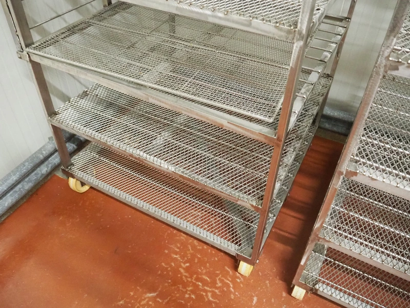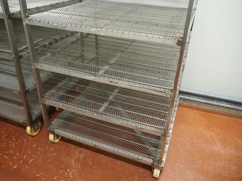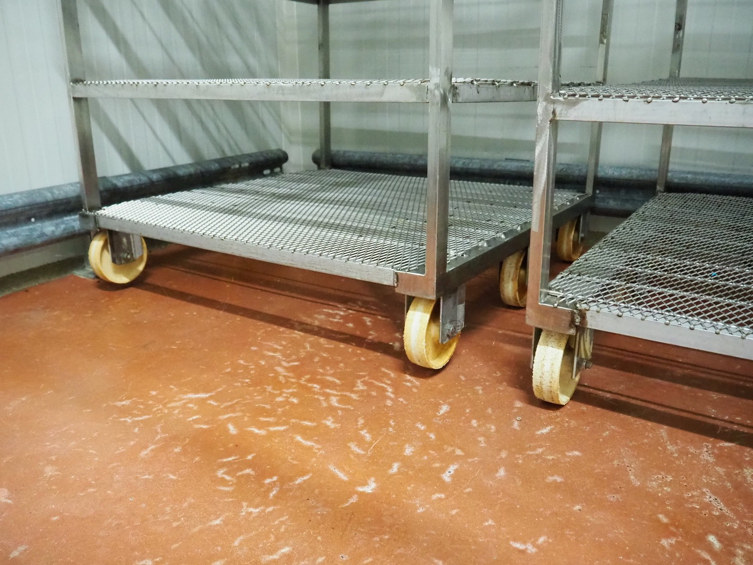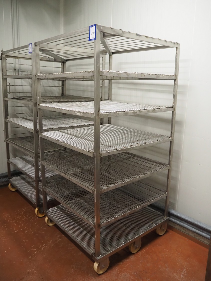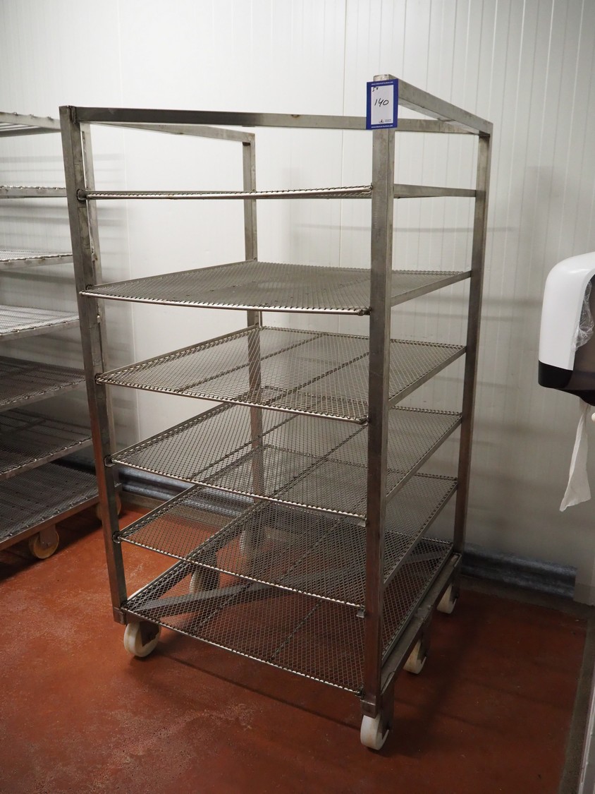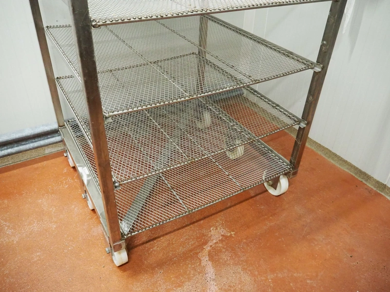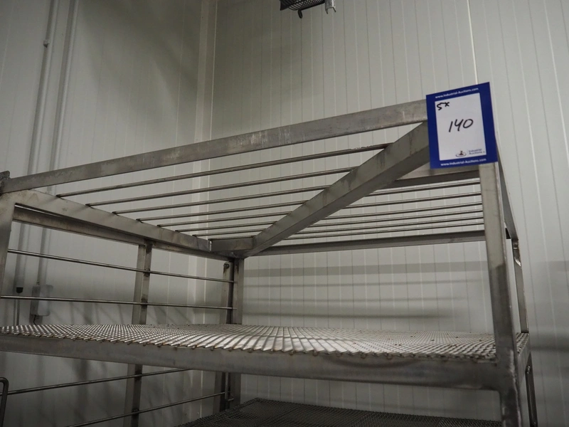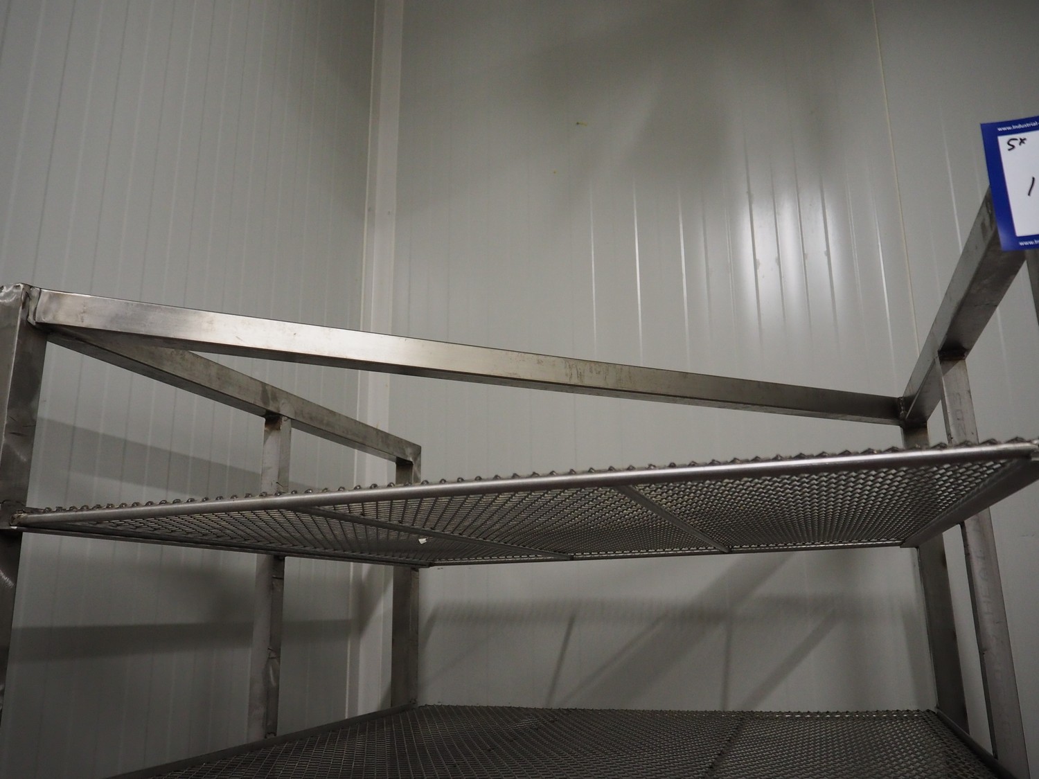 5 s/s cooking trolleys, 6 floors, dimensions floors: (6x) 1000 mm x 900 mm, total dimensions: (3x) 1010 mm x 1000 mm x 1900 mm and (2x) 1000 mm x 980 mm x 2000 mm.