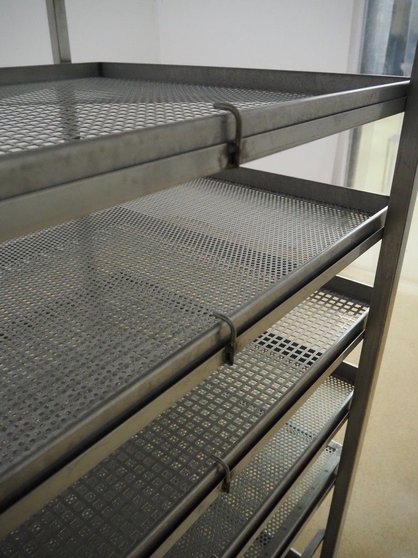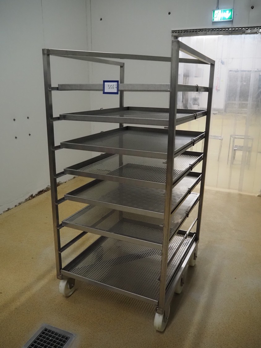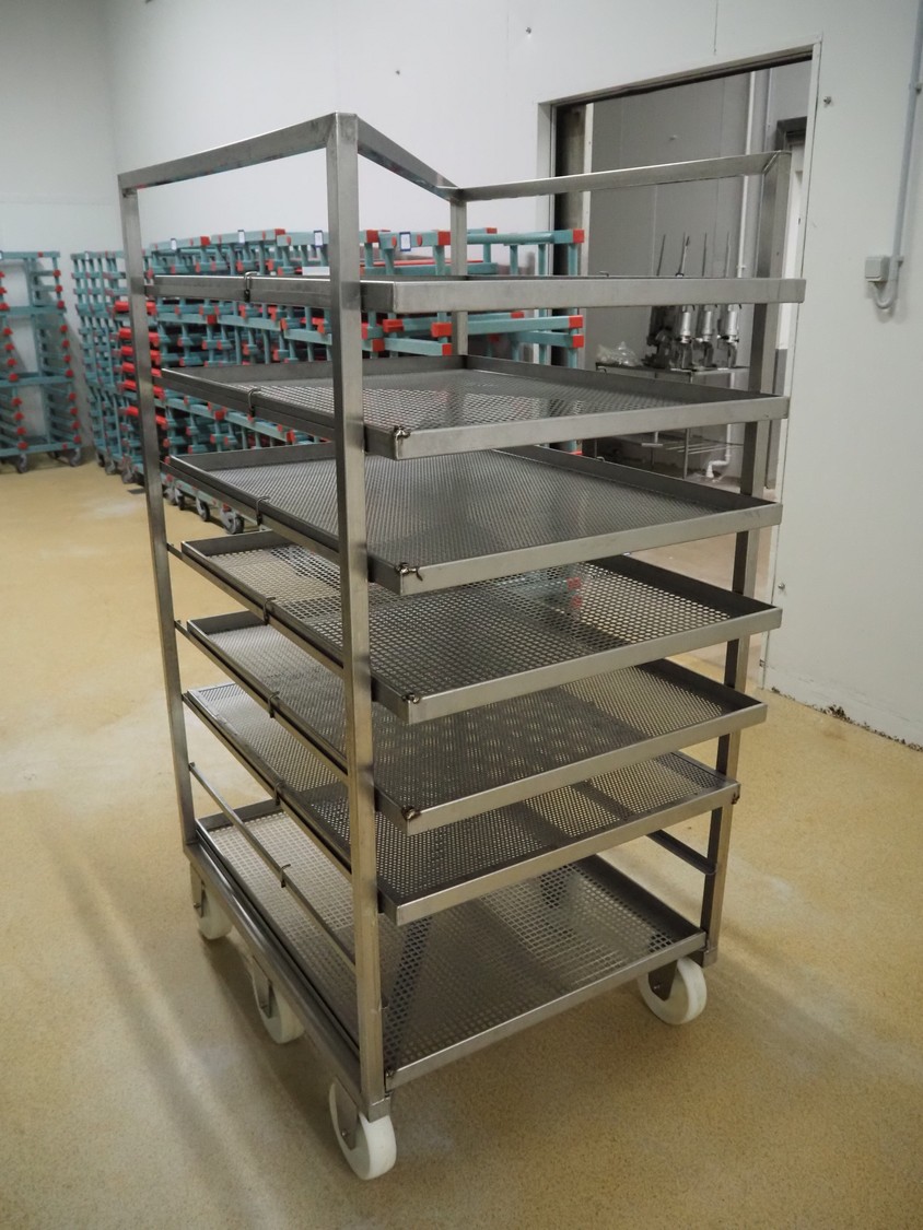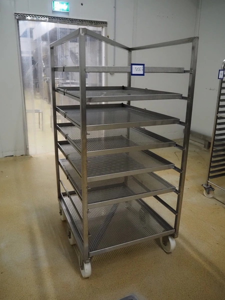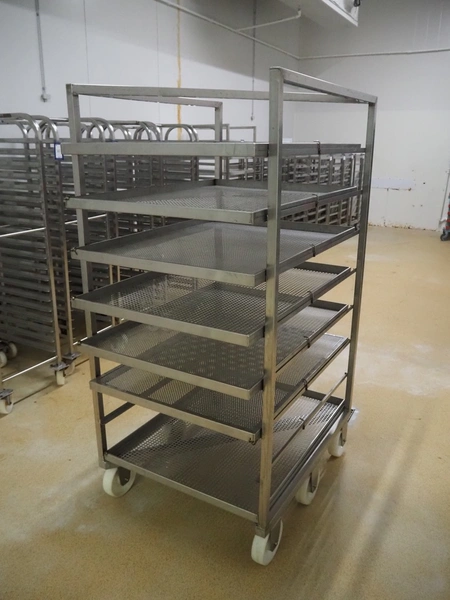 S/s cooking trolley, 8 floors, dimensions floors: (8x) 980 mm x 740 mm, distance between floors: 140 mm, total dimensions: 980 mm x 800 mm x 1730 mm.