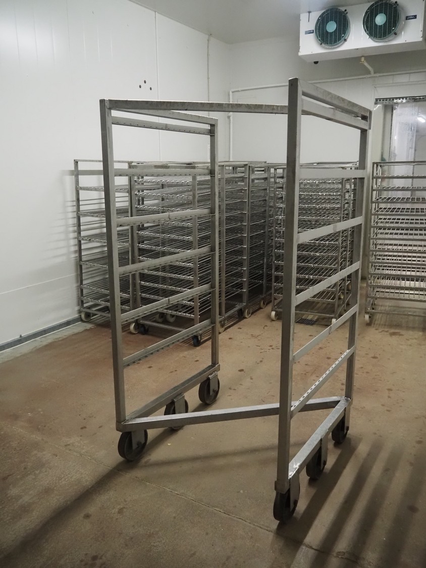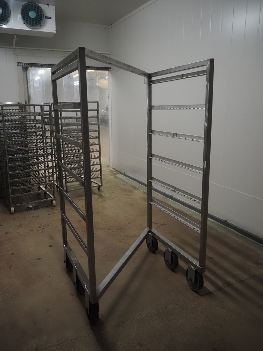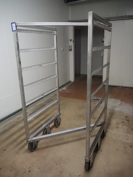 S/s smoke trolley, 6 floors, dimensions floors: (6x) 980 mm x 910 mm, total dimensions: 1000 mm x 1000 mm x 1910 mm.