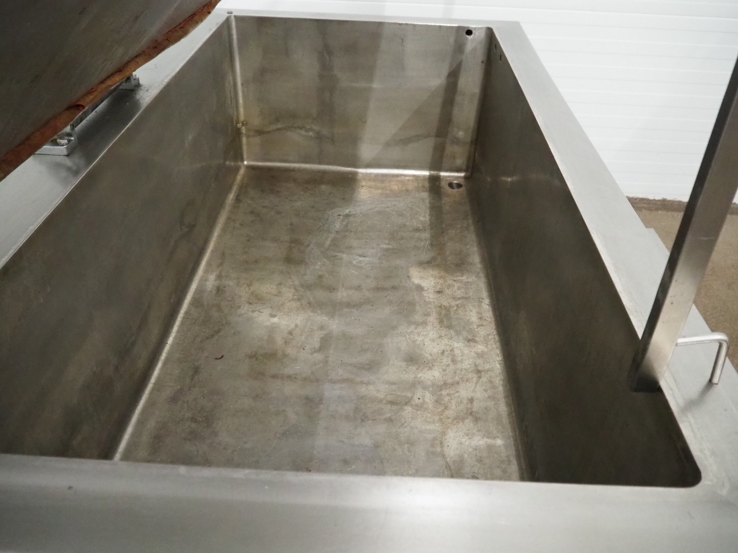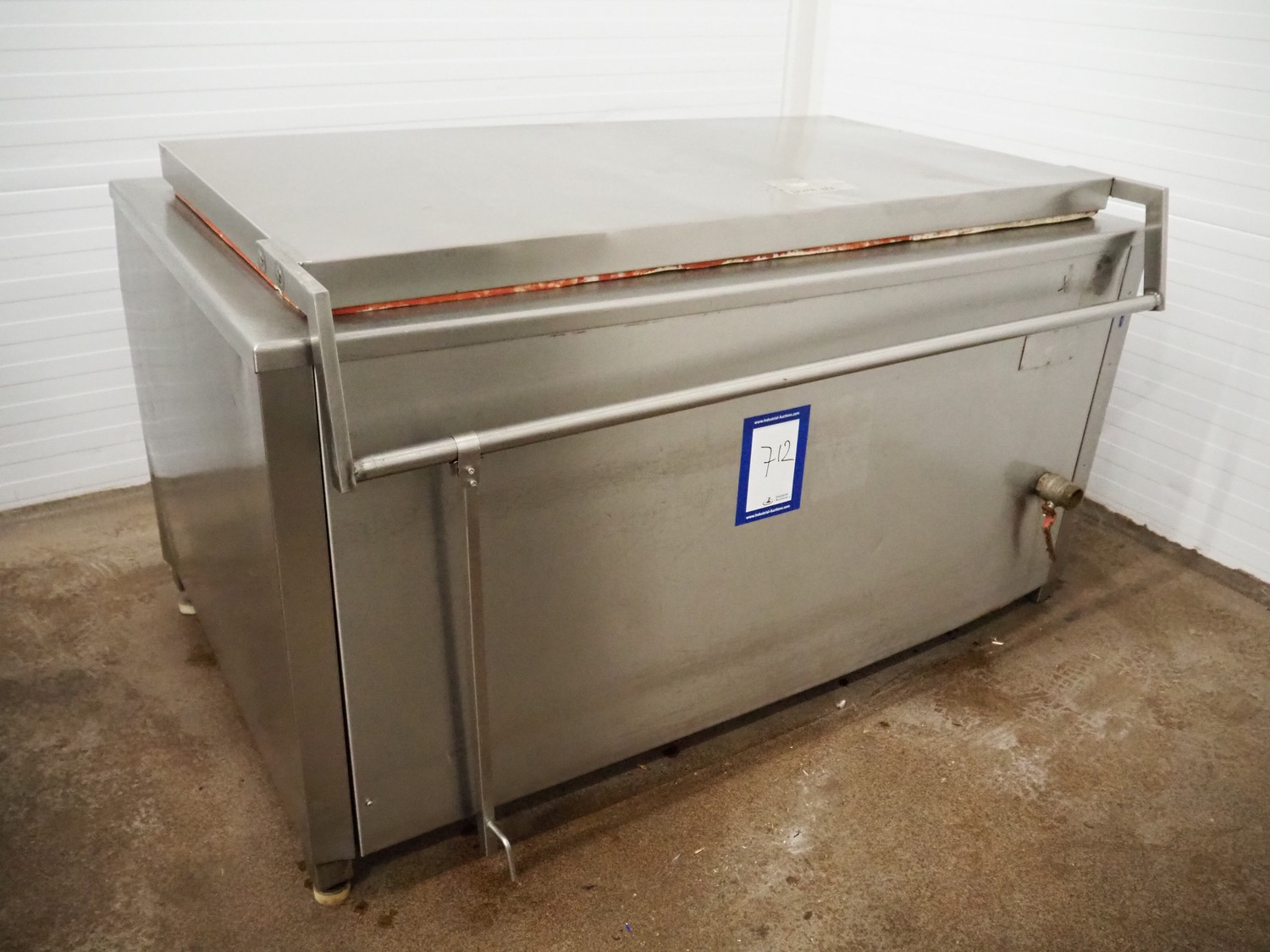 S/s cooking vessel, inside dimensions: 1600 mm x 800 mm x 500 mm, total dimensions: 1800 mm x 1130 mm x 1000 mm.