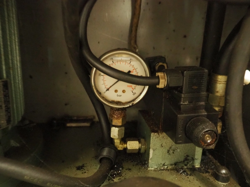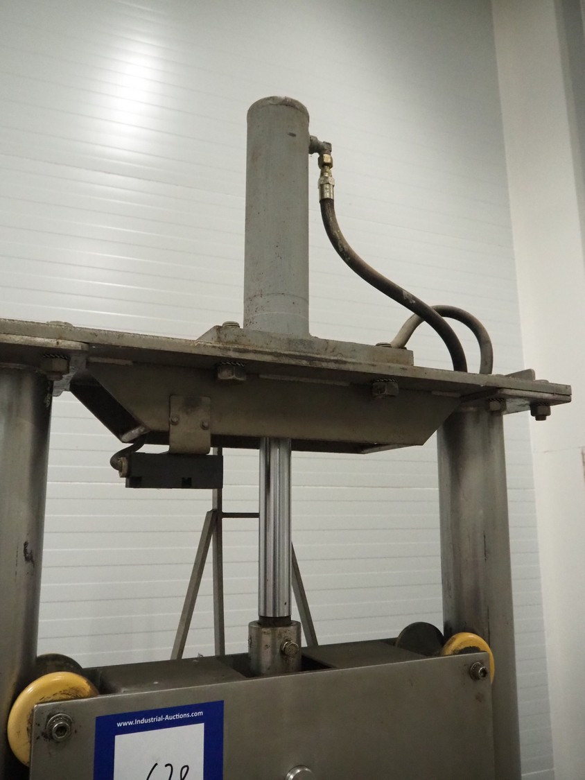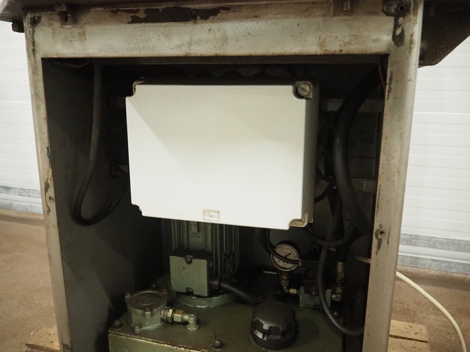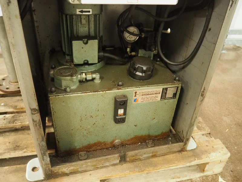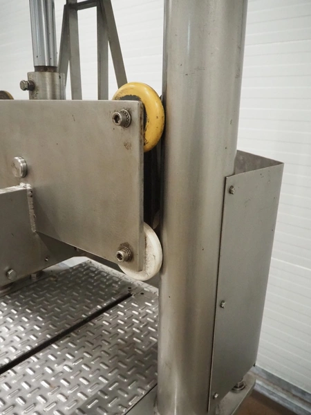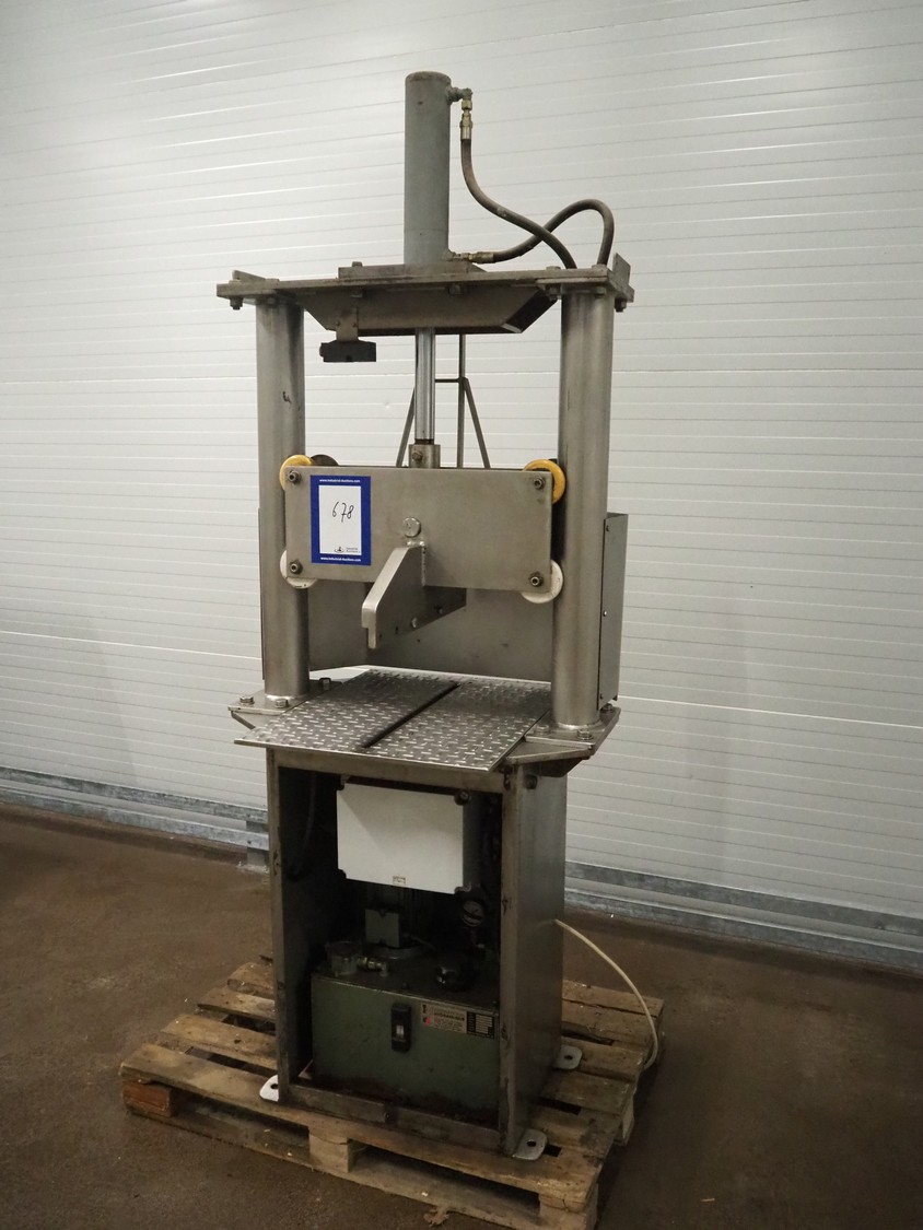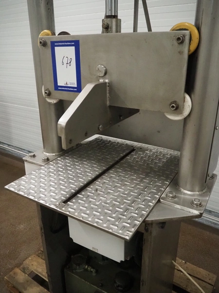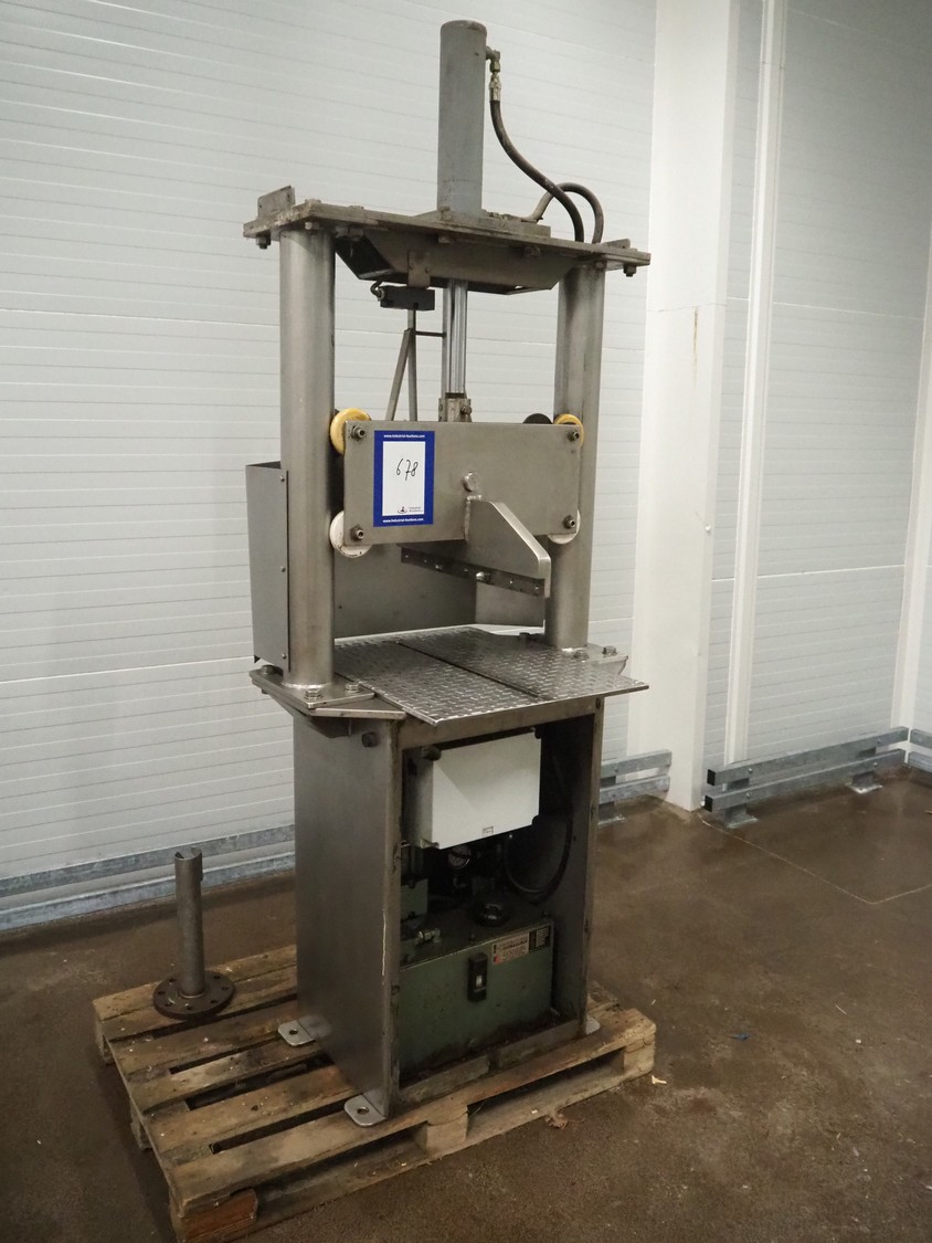 Guillotine, working width: 550 mm, clearance: 540 mm x 500 mm, total dimensions: 850 mm x 750 mm x 2350 mm. Missing knife and cover.