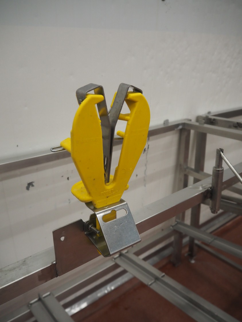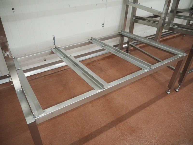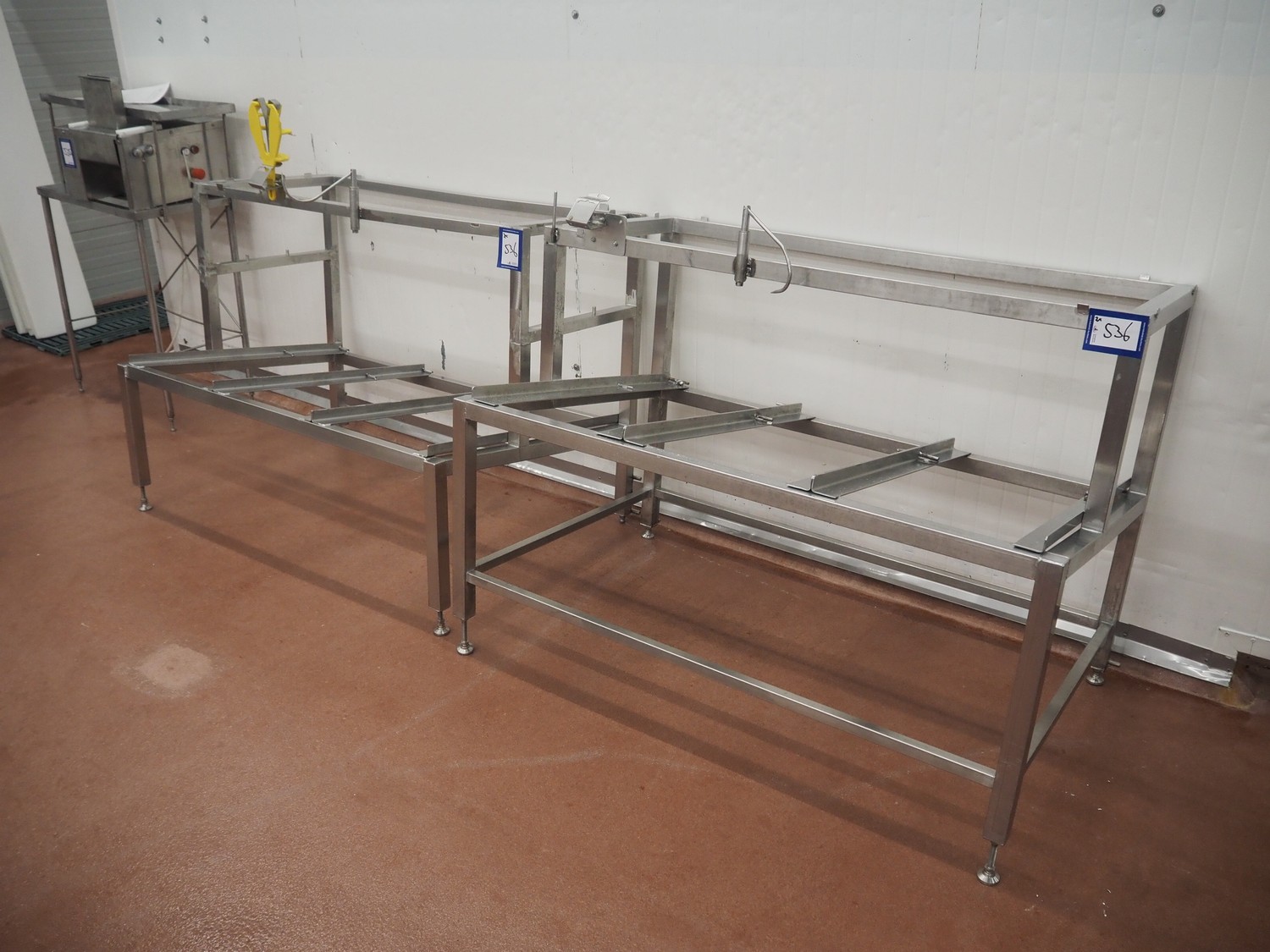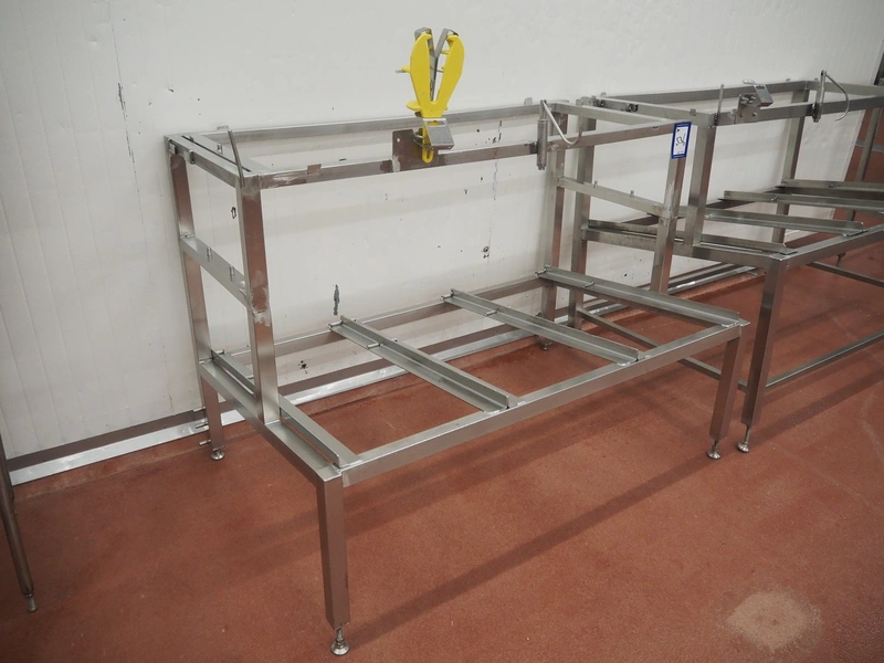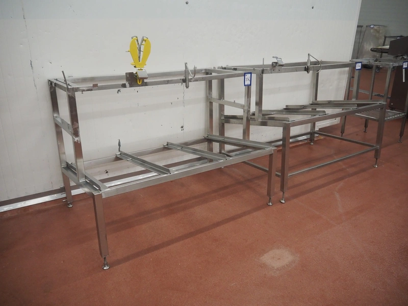 2 s/s frames for deboning table, dimensions: (2x) 1340 mm x 850 mm x 1250 mm.