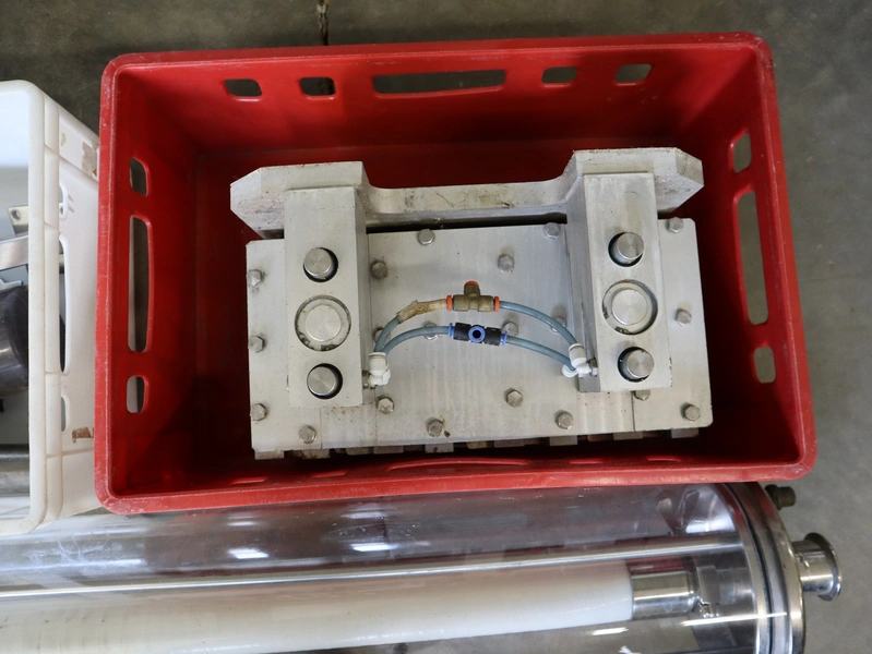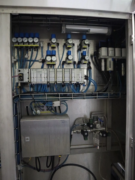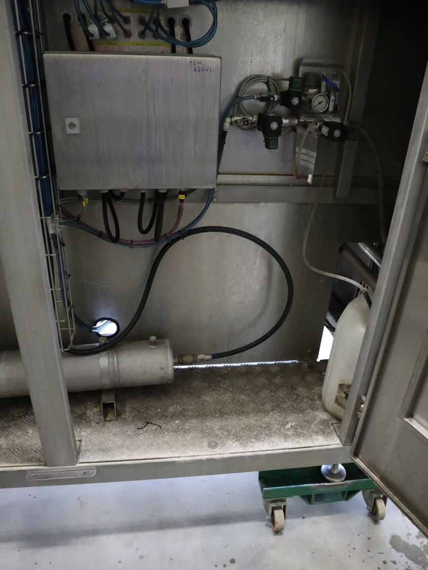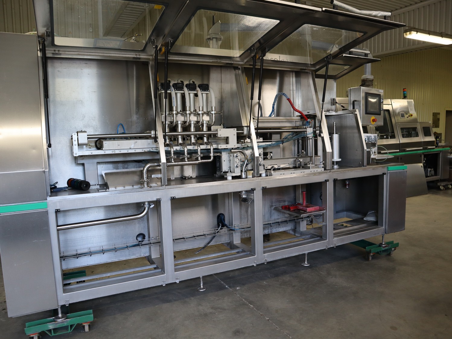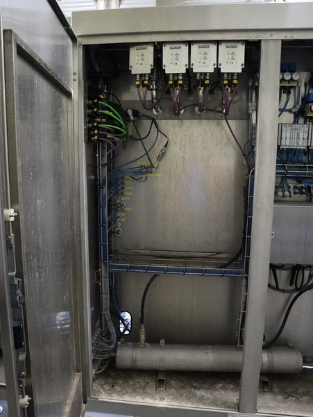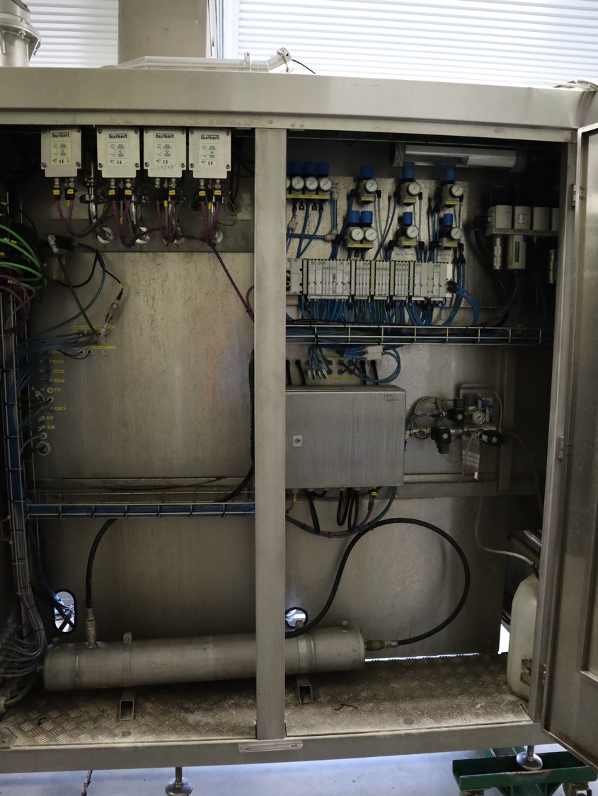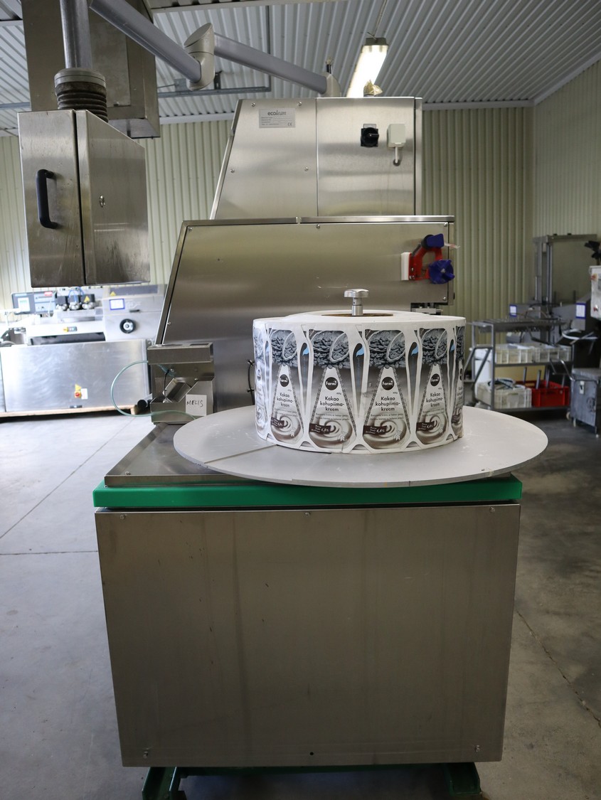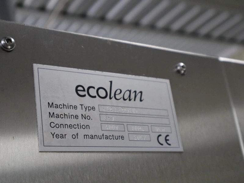 Ecolean filling machine for liquid food products, type: EL2 A-216301, machine number: 350, year of construction: 2008, 3x400 V, 50 Hz, 3 kW, dimensions: 4300 mm x 1400 mm x 2700 mm.