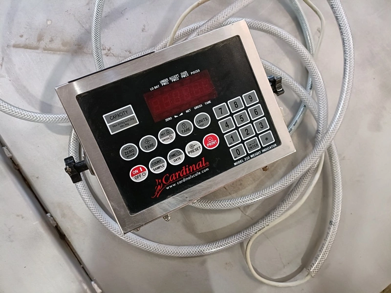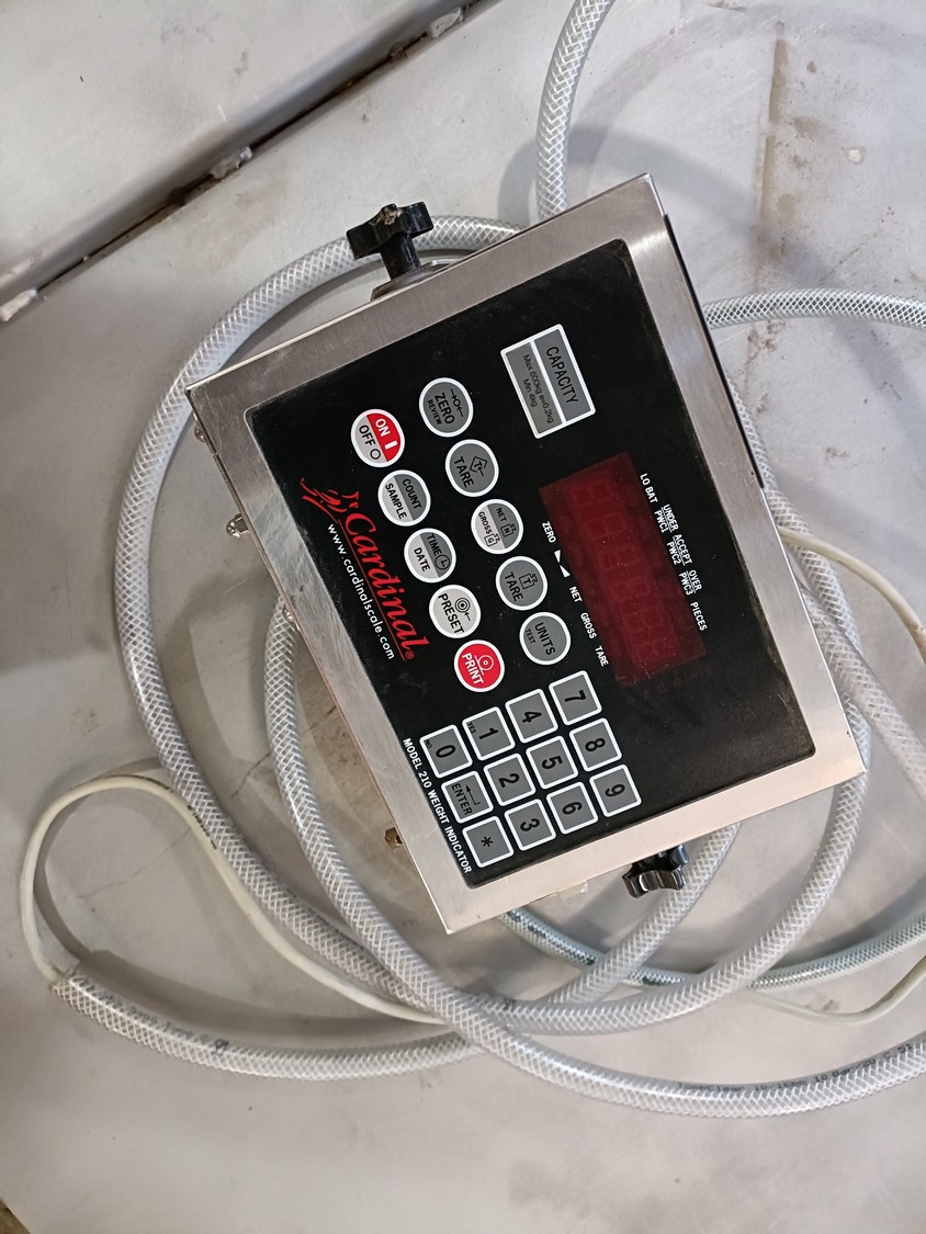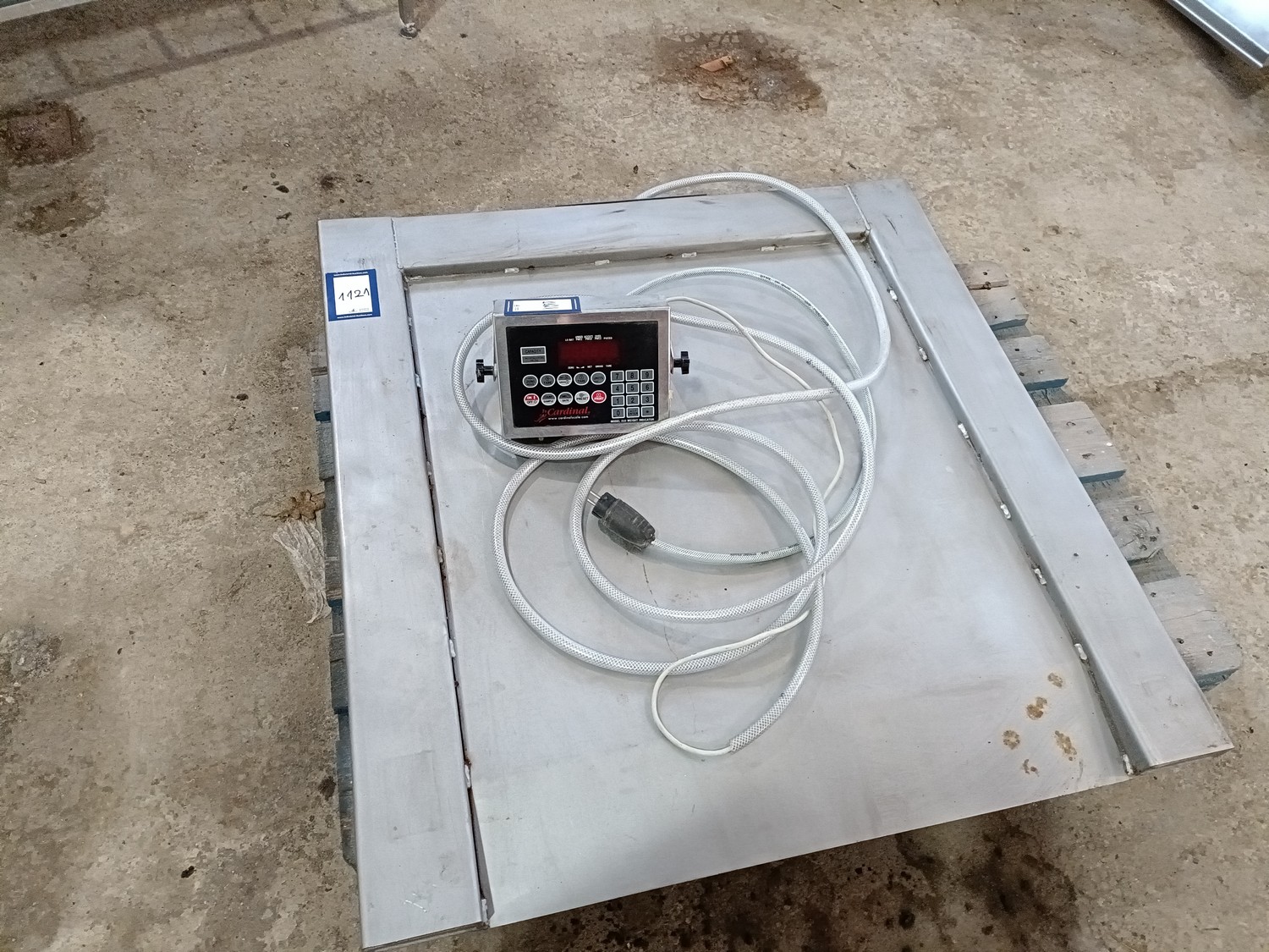 S/s floor weighing scale, 240 V, maximum weight: 600 kg, minimum weight: 4 kg, e= 0.2 kg, dimensions: 1070 mm x 1040 mm. Including Cardinal Scales indicator.