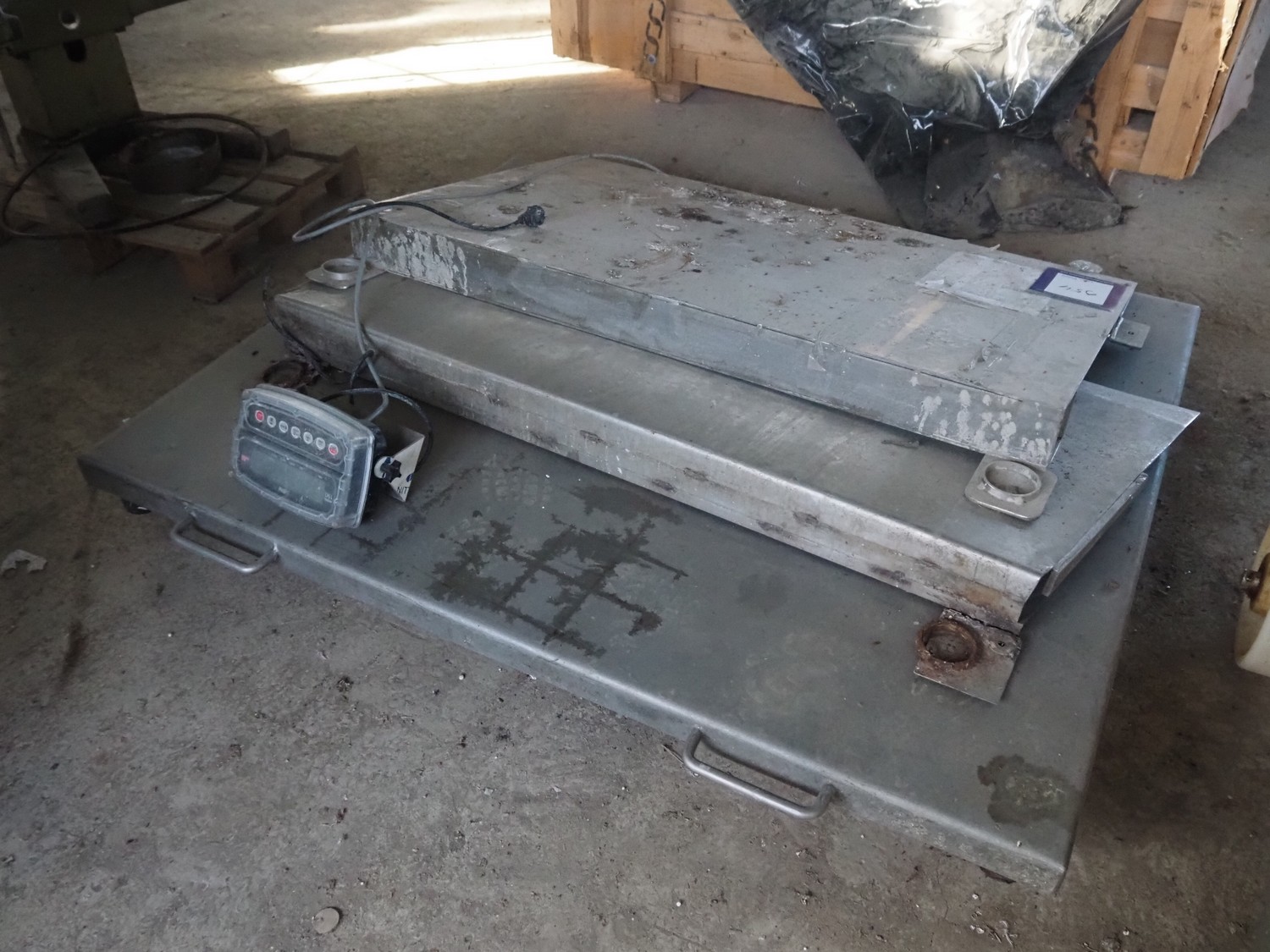 S/s floor weighing scale with Cardinal Scale indicator, dimensions scale: 1500 mm x 1500 mm.