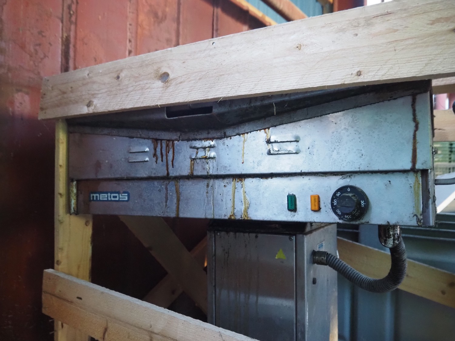 Wooden crate with Metos grill pan, dimensions crate: 840 mm x 830 mm x 920 mm.