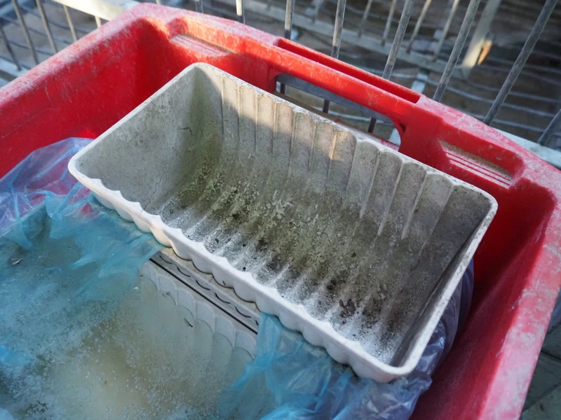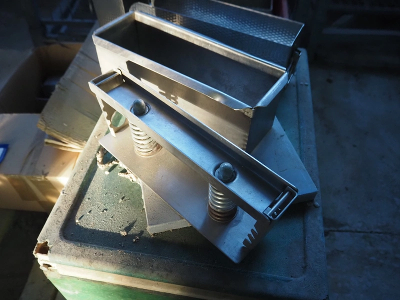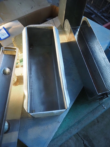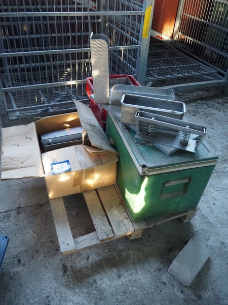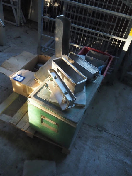 Pallet with various ham moulds, dimensions moulds: 250 mm x 130 mm x 110 mm, 300 mm x 95 mm x 110 mm and 340 mm x 85 mm x 90 mm.