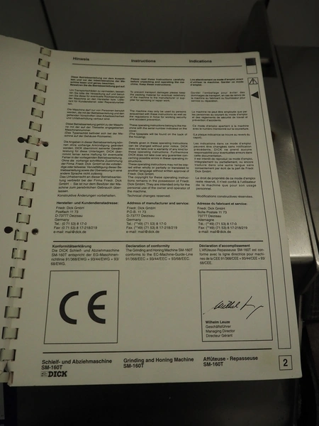 Dick knife sharpener, model: SM-160T, number: 000040, year of construction: 1999, 400 V, 3 Ph, 50/60 Hz, dimensions: 570 mm x 520 mm x 320 mm.