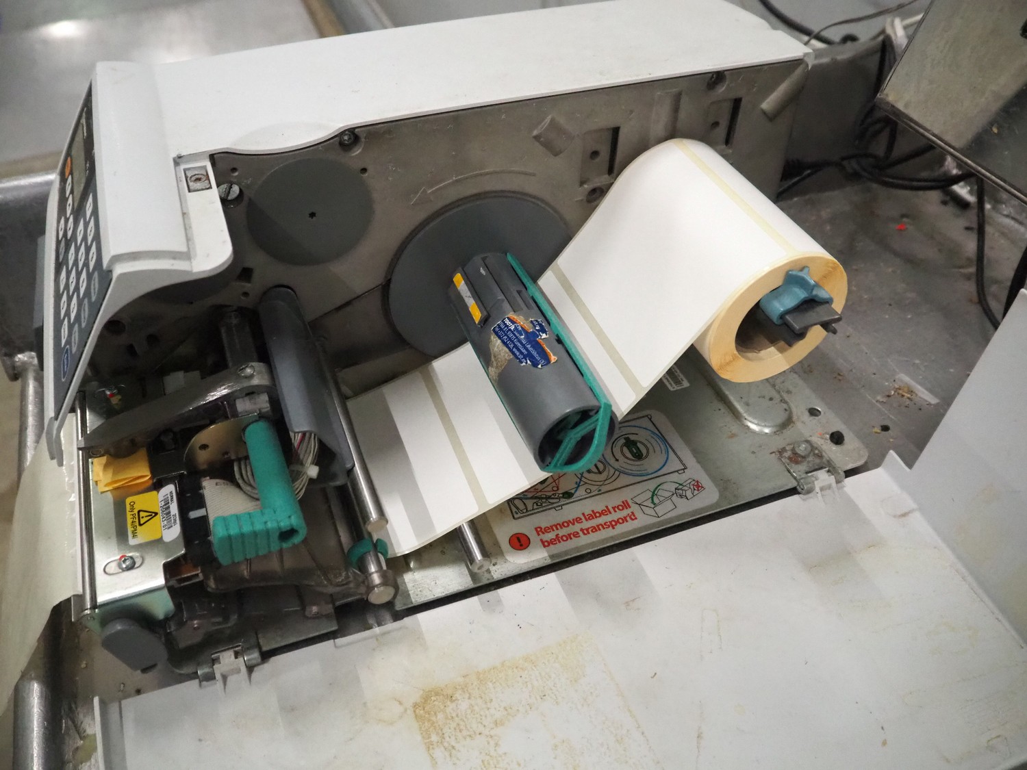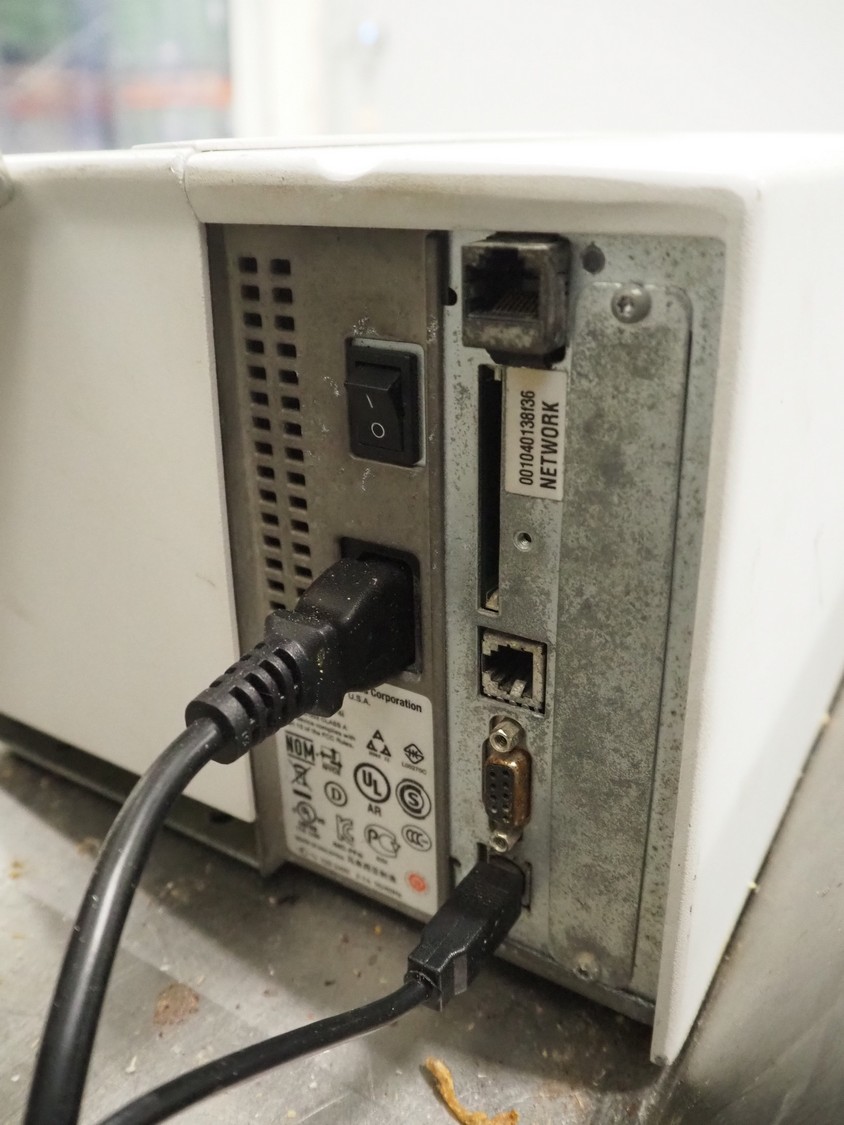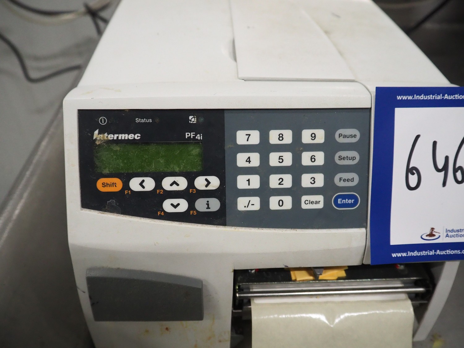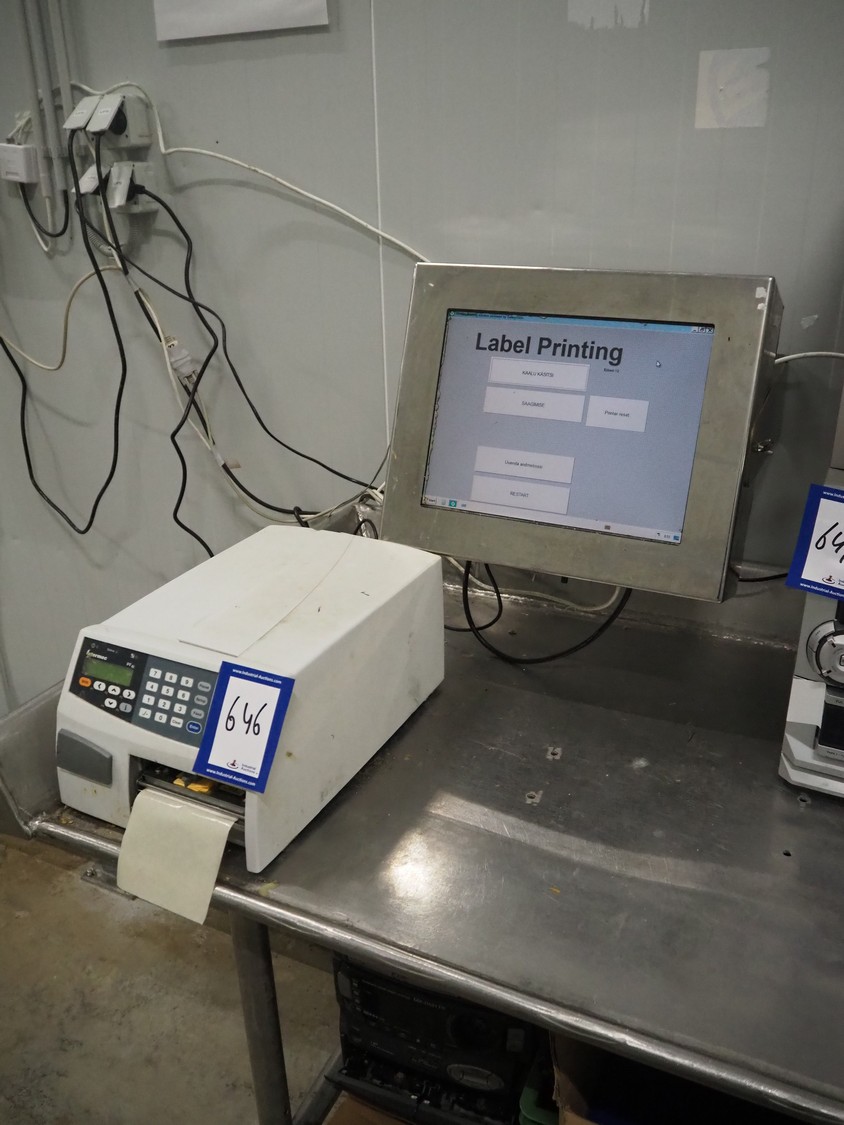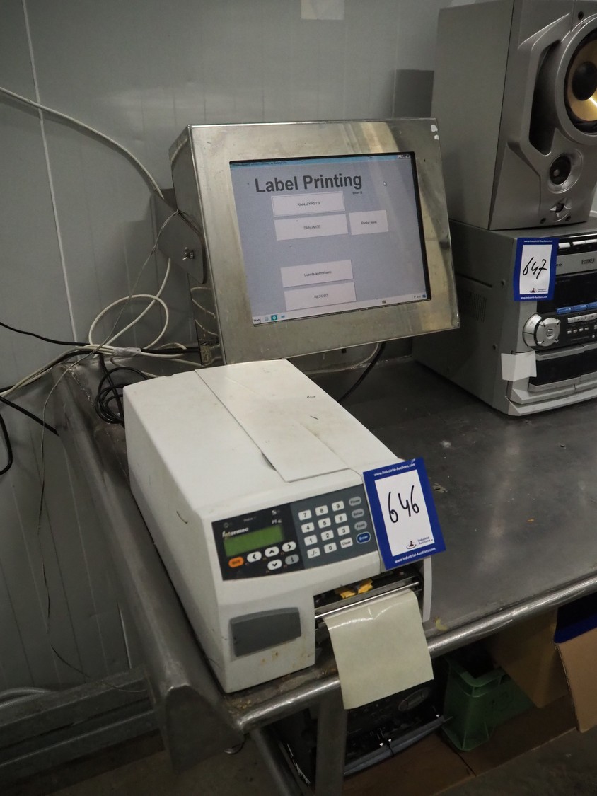 Intermec label printer, model: PF4i, dimensions: 430 mm x 400 mm x 170 mm, with s/s control panel, dimensions: 400 mm x 290 mm x 340 mm.