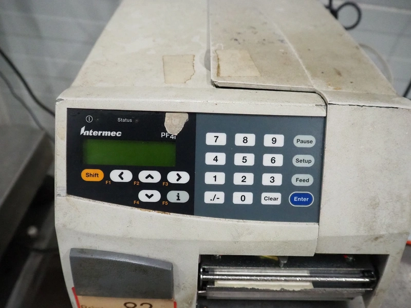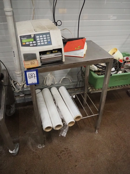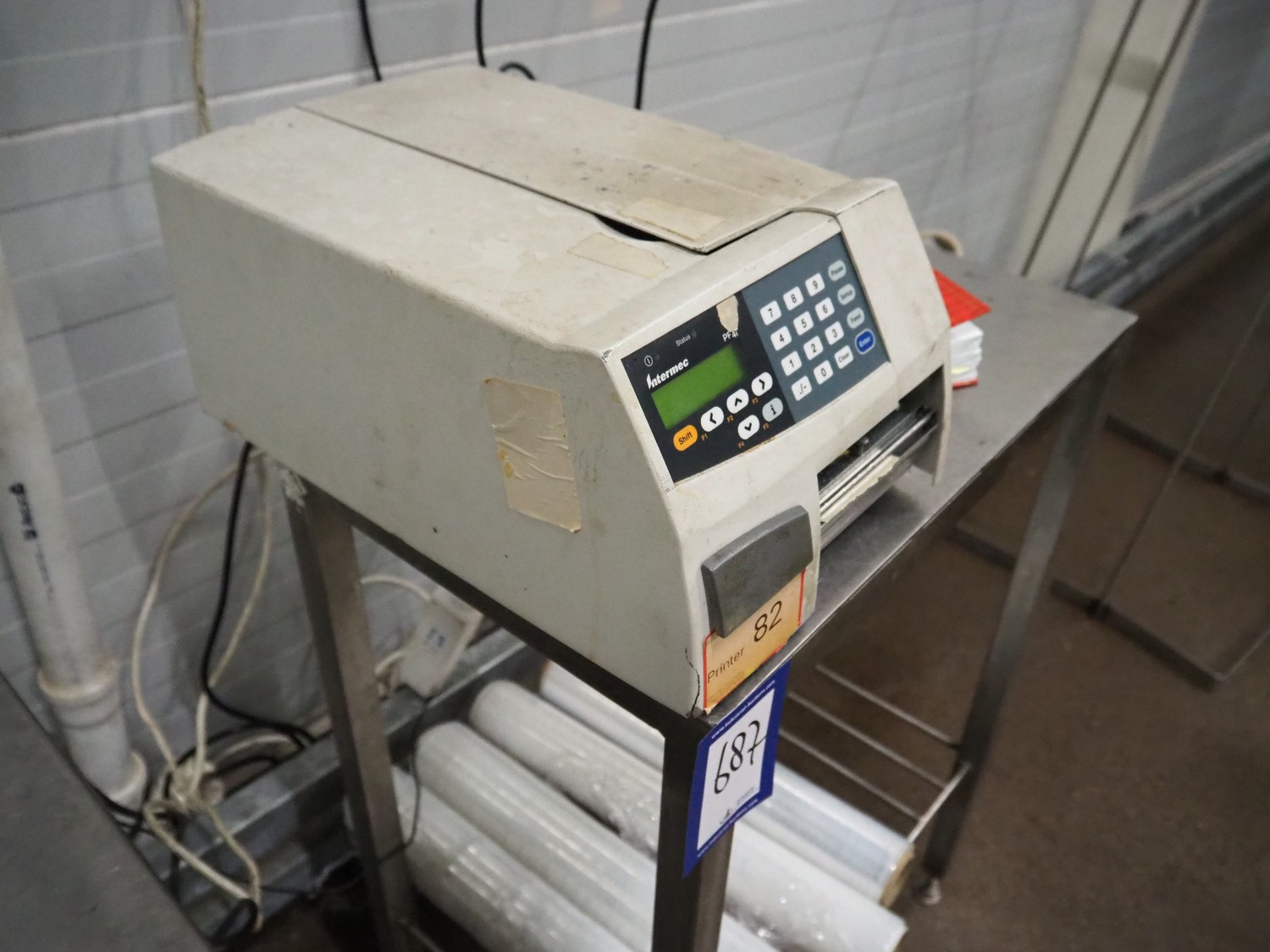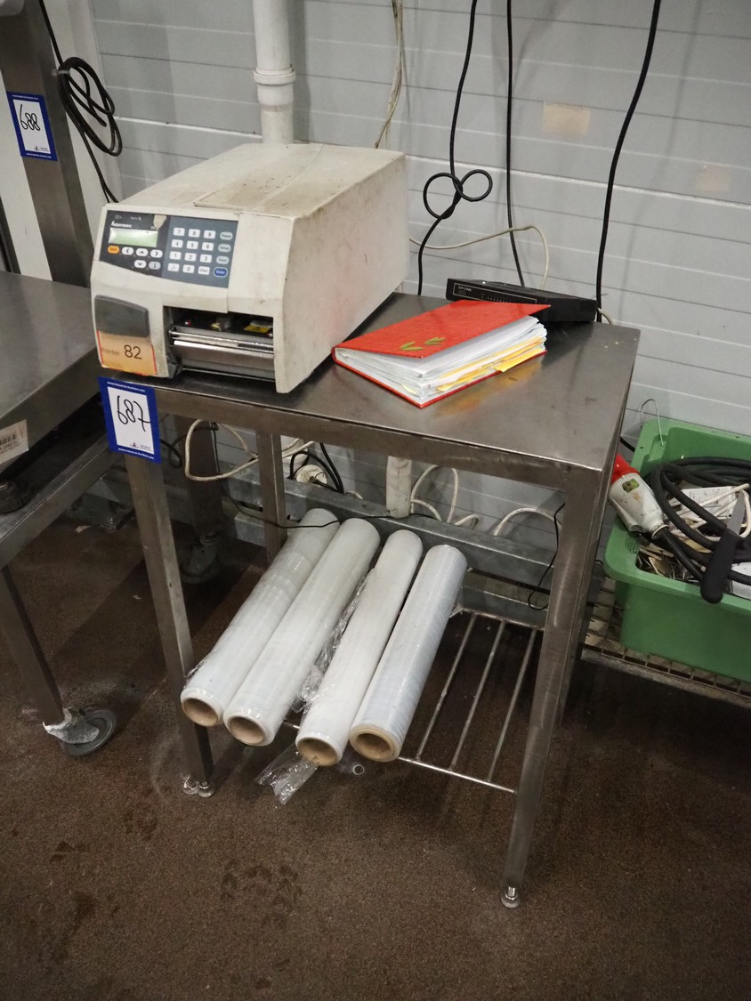 S/s table with Intermec label printer, model: PF4i, total dimensions: 550 mm x 350 mm x 780 mm.