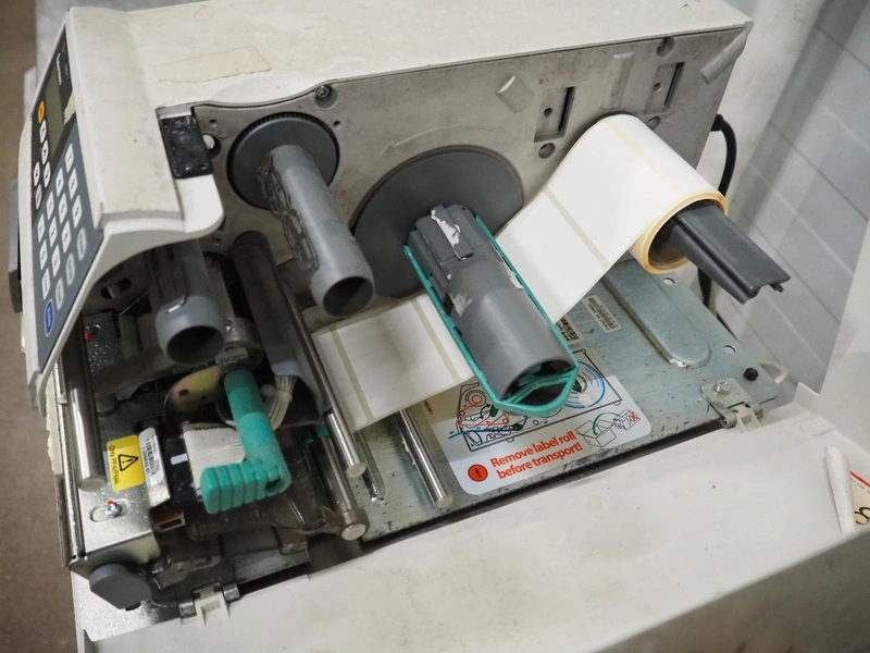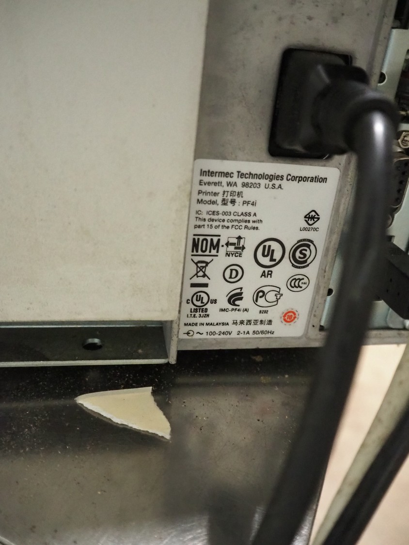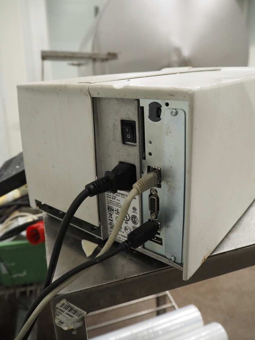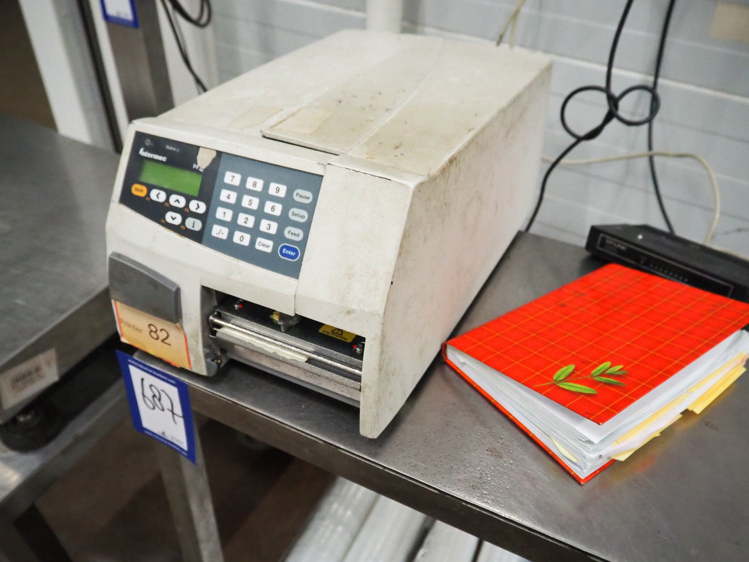 S/s table with Intermec label printer, model: PF4i, total dimensions: 550 mm x 350 mm x 780 mm.