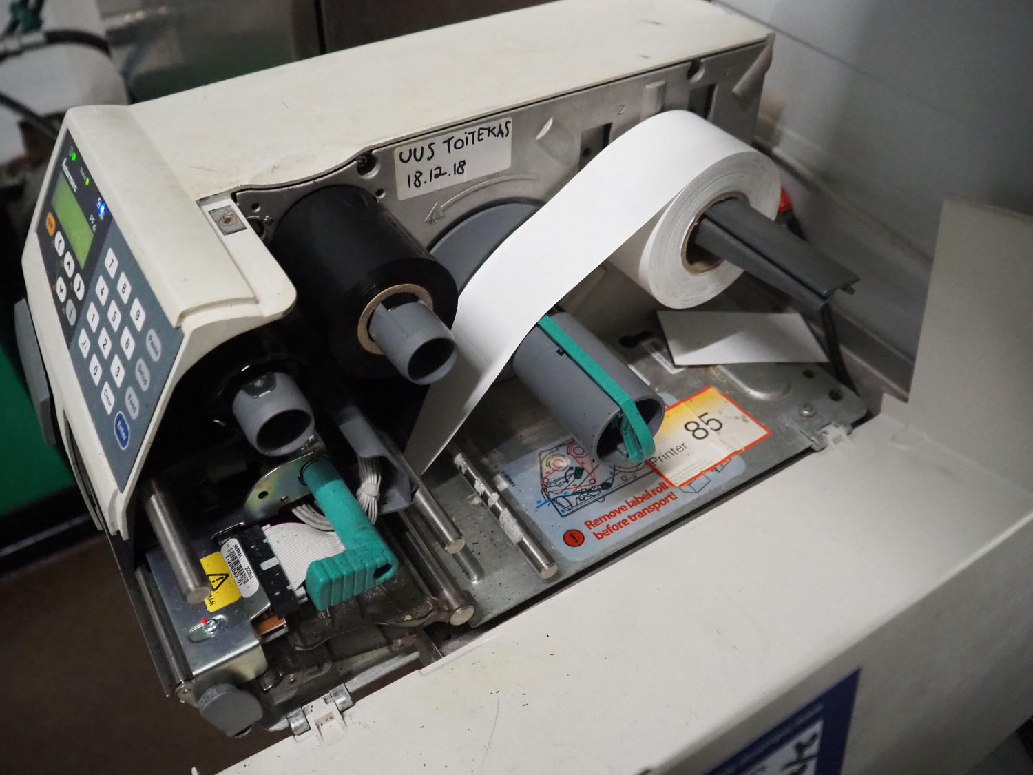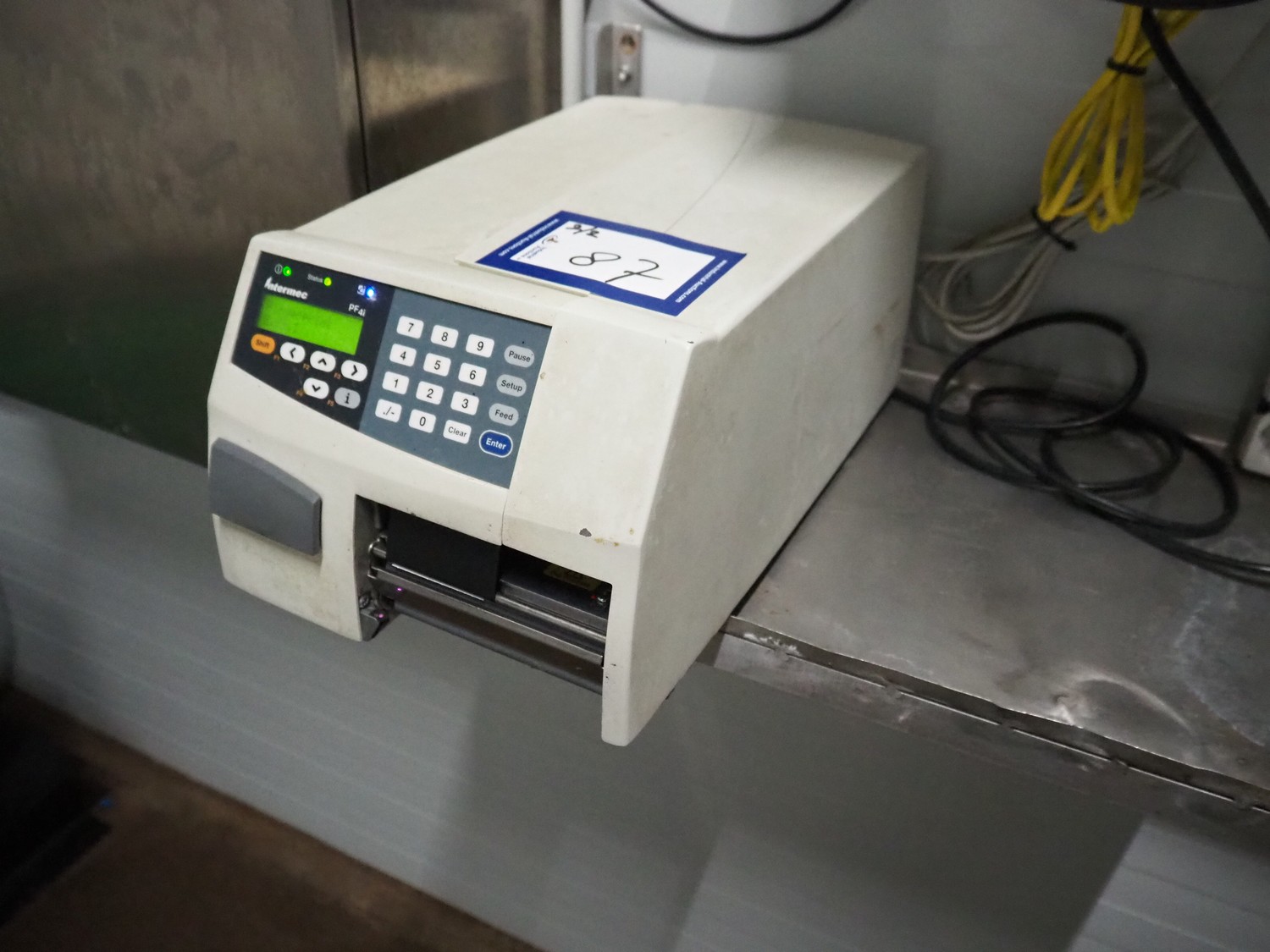 Intermec label printer with s/s control panel, model: PF41, dimensions Intermec: 400 mm x 230 mm x 190 mm, dimensions control panel: 410 mm x 280 mm x 340 mm.