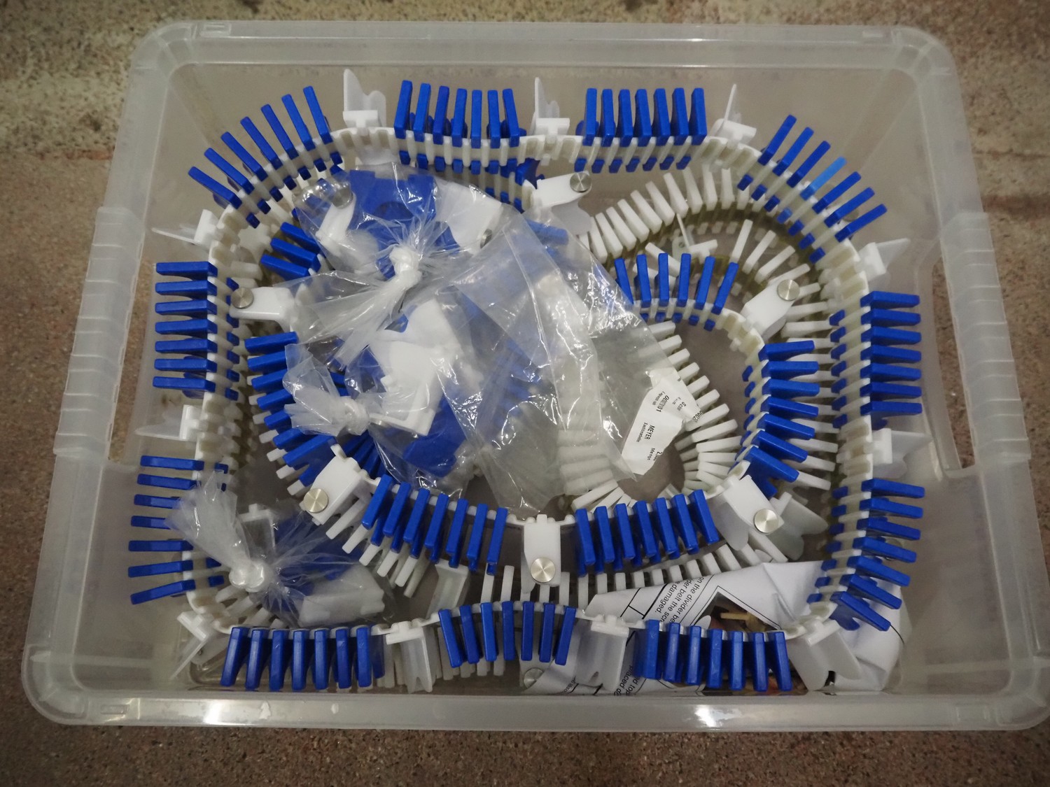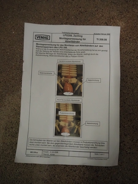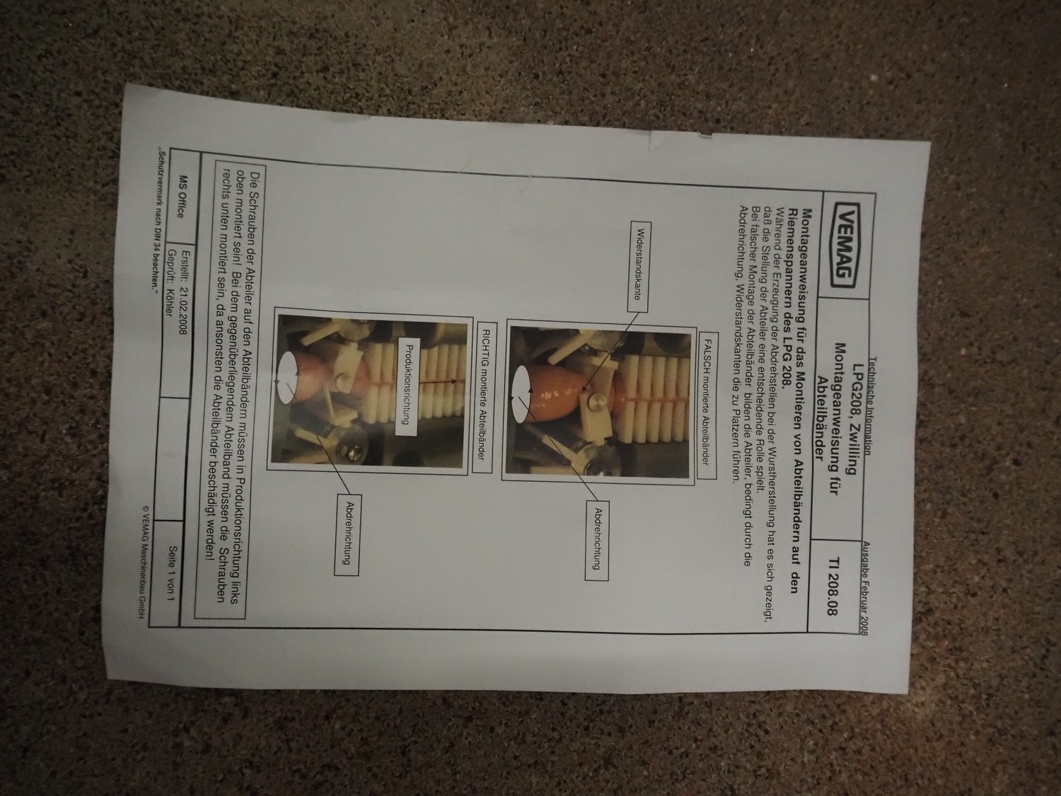 Plastic crate with 4 dividing belts for Vemag Maschinenbau GmbH high speed length portioning machine, model: LPG 208.