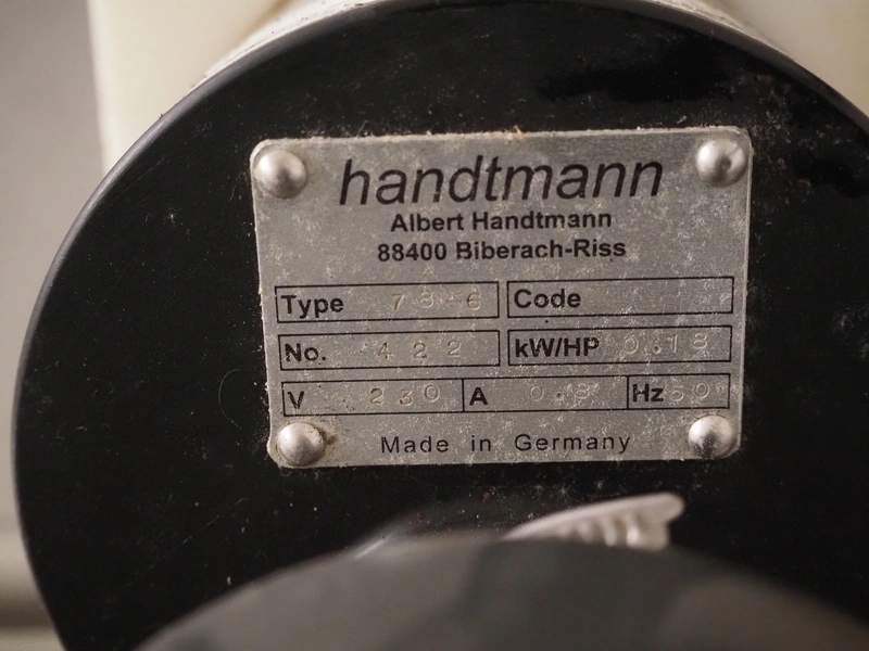 Handtmann casing spooling device, type: 78-6, number: 422, 230 V, 50 Hz, 0.8 A, 0.18 kW, dimensions: 520 mm x 390 m x 210 mm.