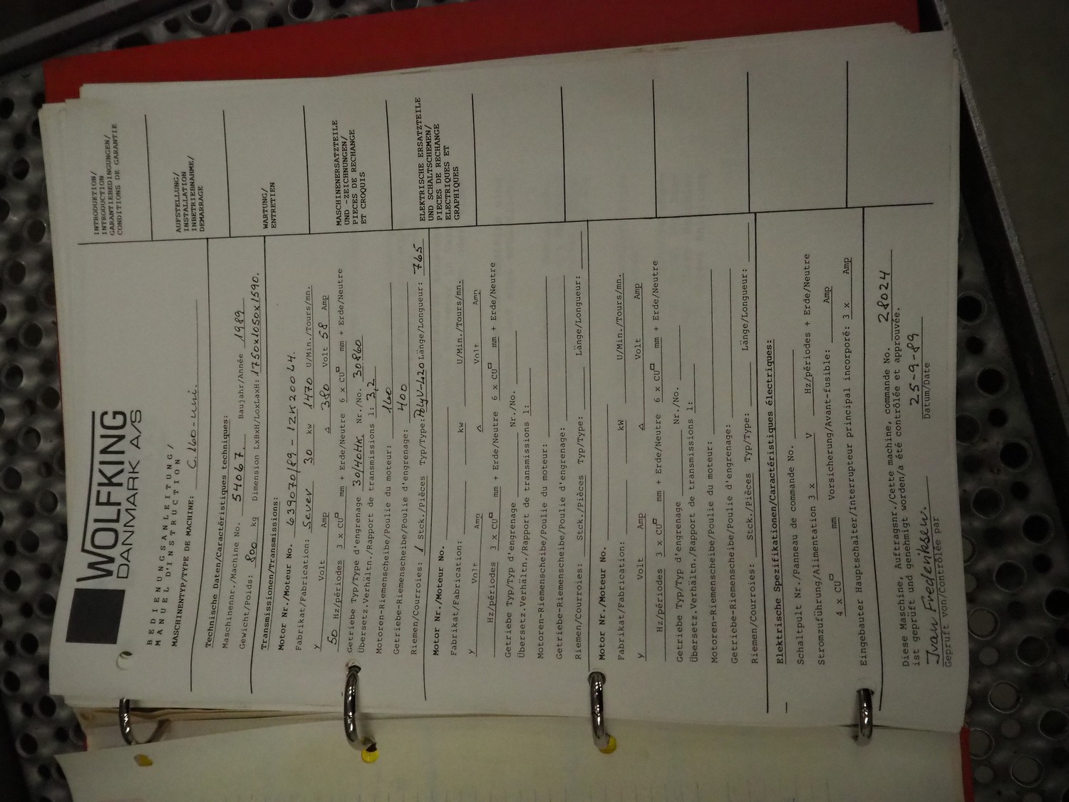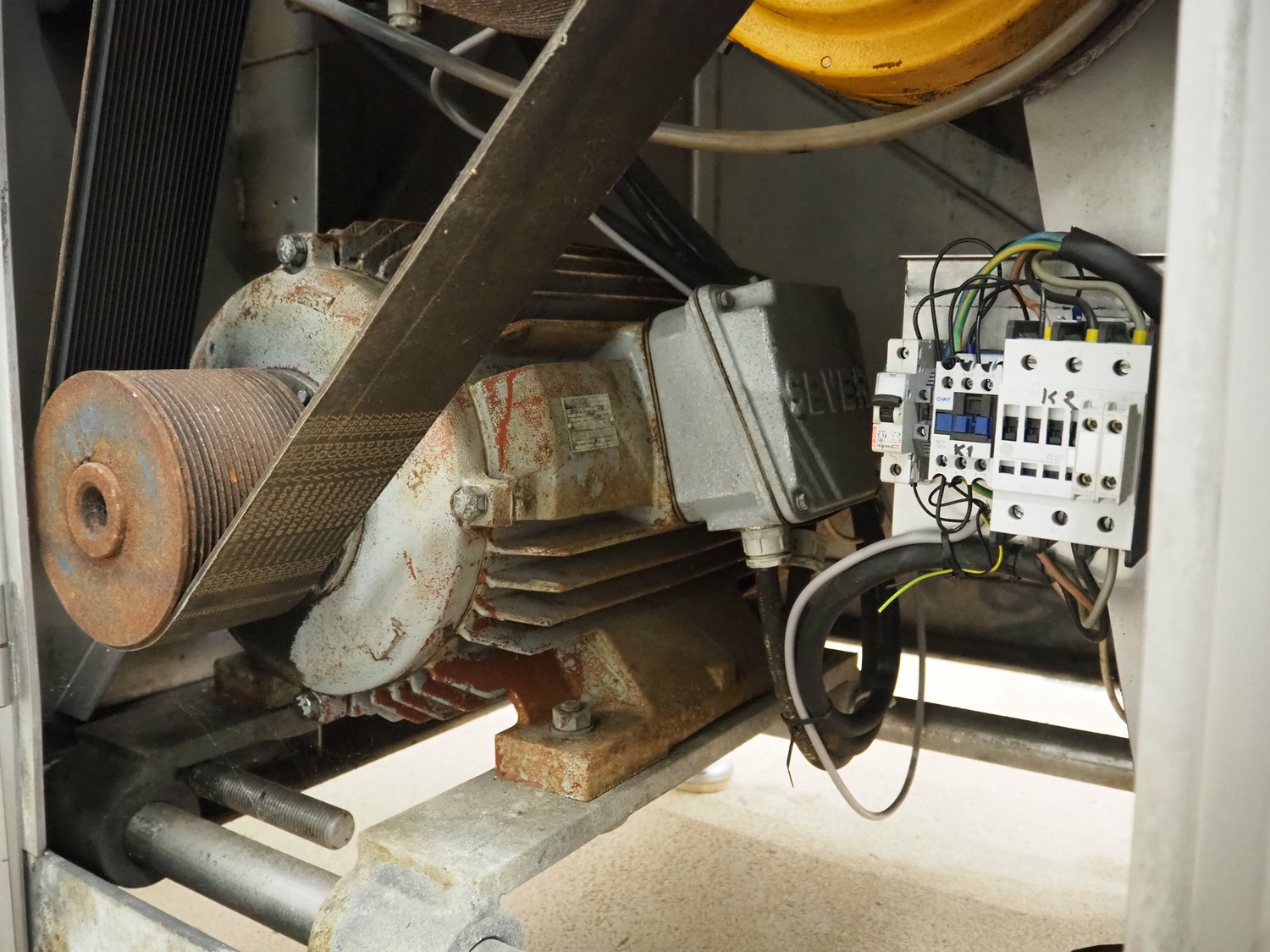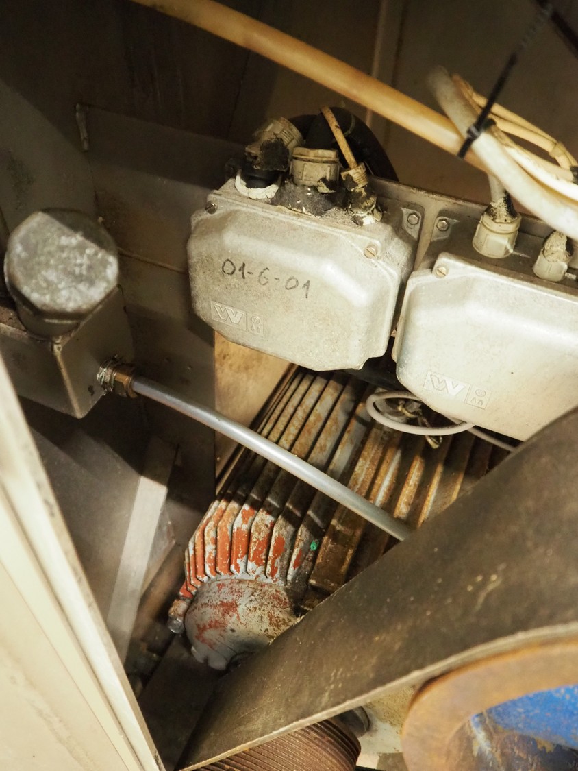 Wolfking grinder, type: C.160-UNI, number: 54067, year of construction: 1989, 380 V, 3 Ph, 50 Hz, 58 A, 30 kW, diameter plate: 160 mm, total dimensions: 1700 mm x 1000 mm x 1600 mm.