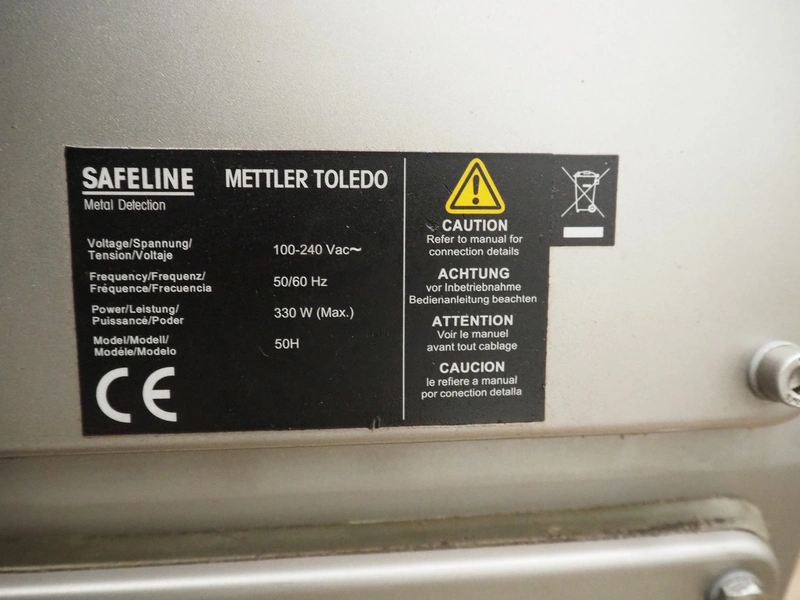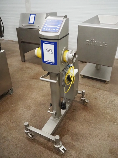 Safeline Mettler Toledo mobile pipeline metal detector, model power supply unit: 50H, 100-240 V, 50/60 Hz, 330 W, diameter pipe: 55 mm, total dimensions: 850 mm x 420 mm x 1230 mm.