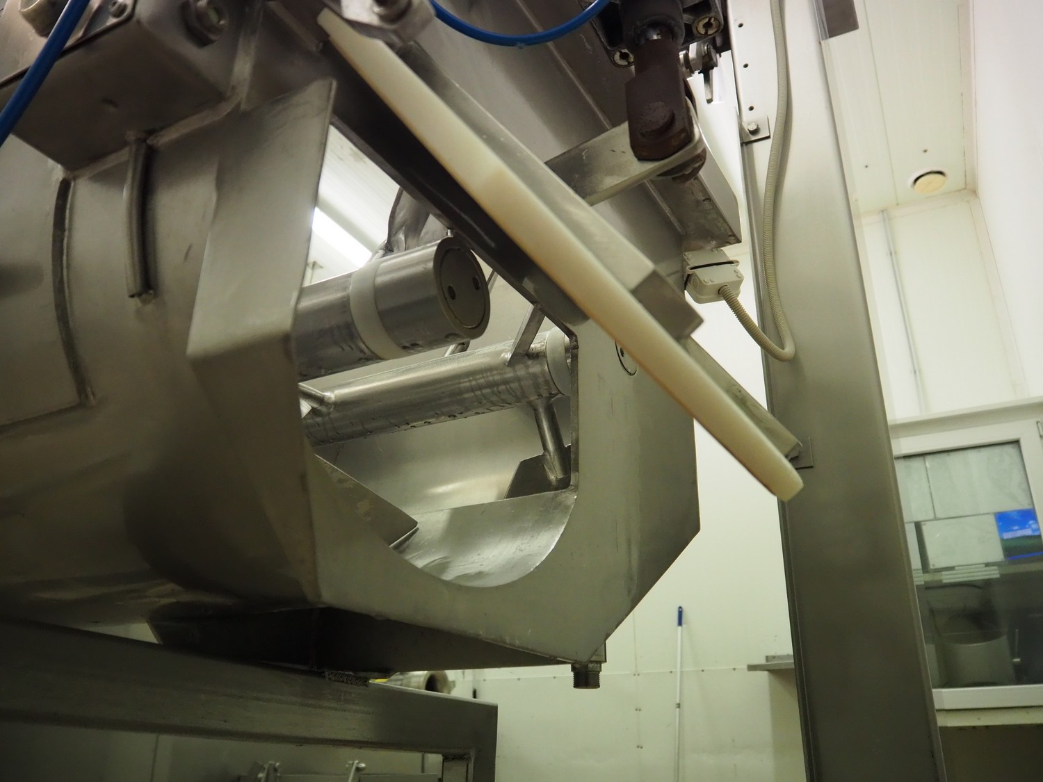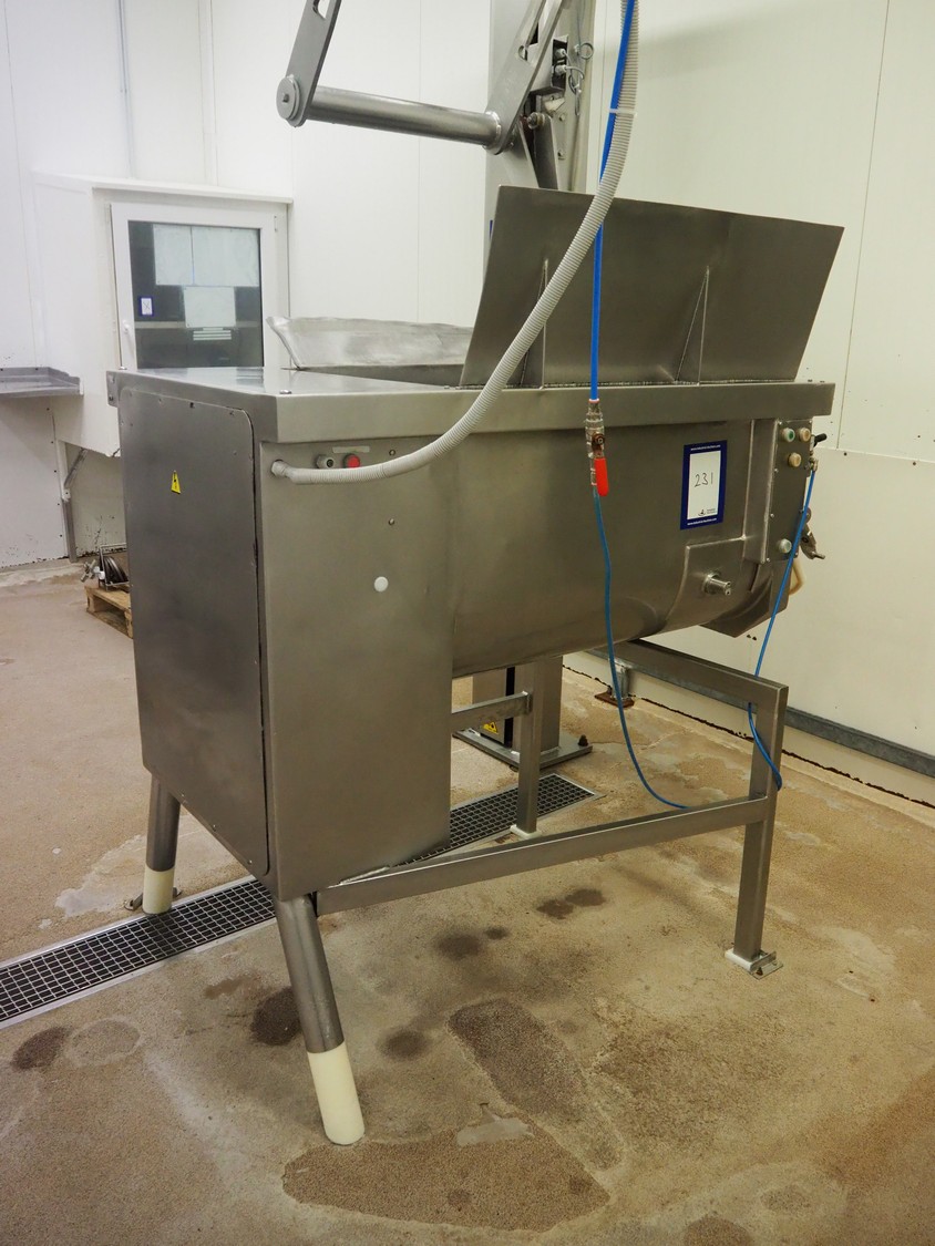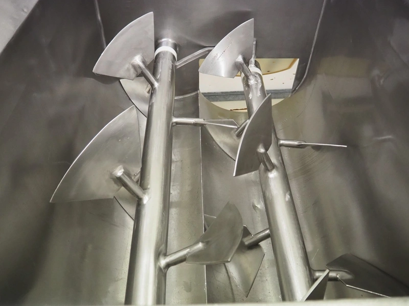 Double paddle mixer, inside dimensions: 1000 mm x 750 mm x 650 mm, total dimensions: 1500 mm x 1040 mm x 1770 mm.
