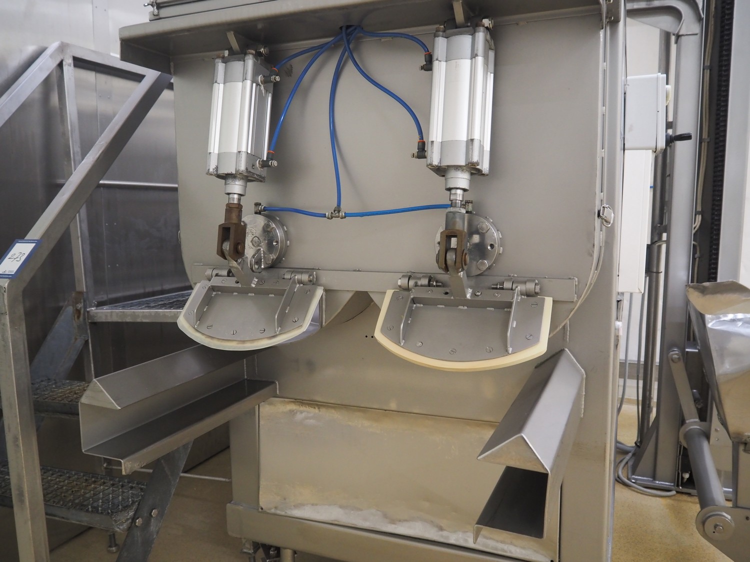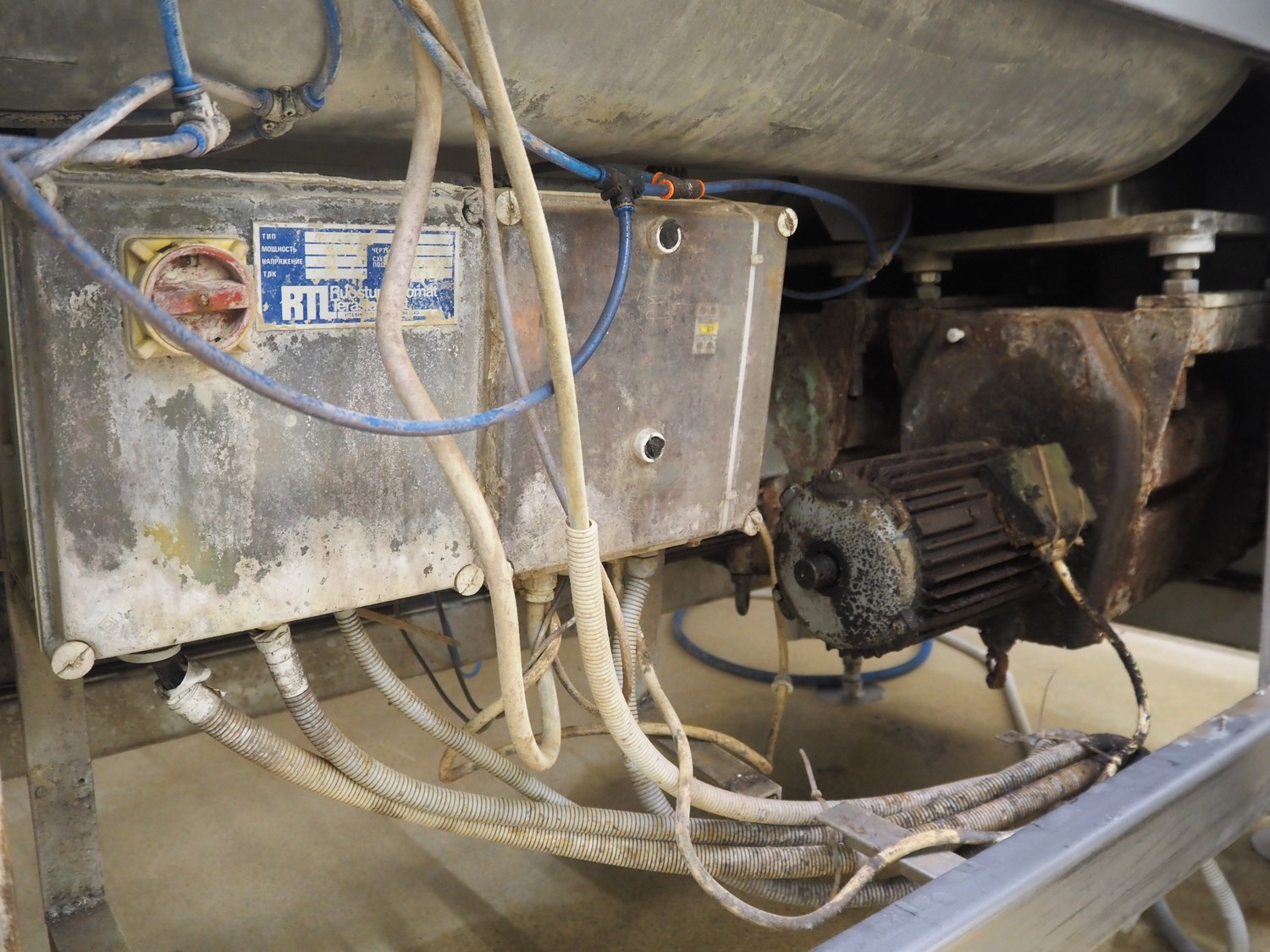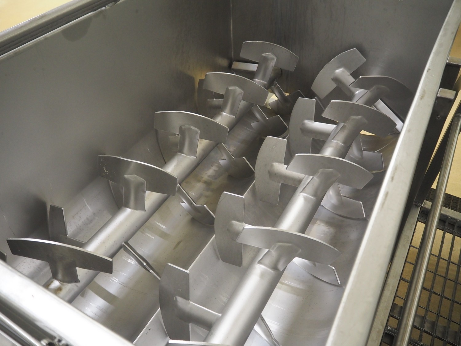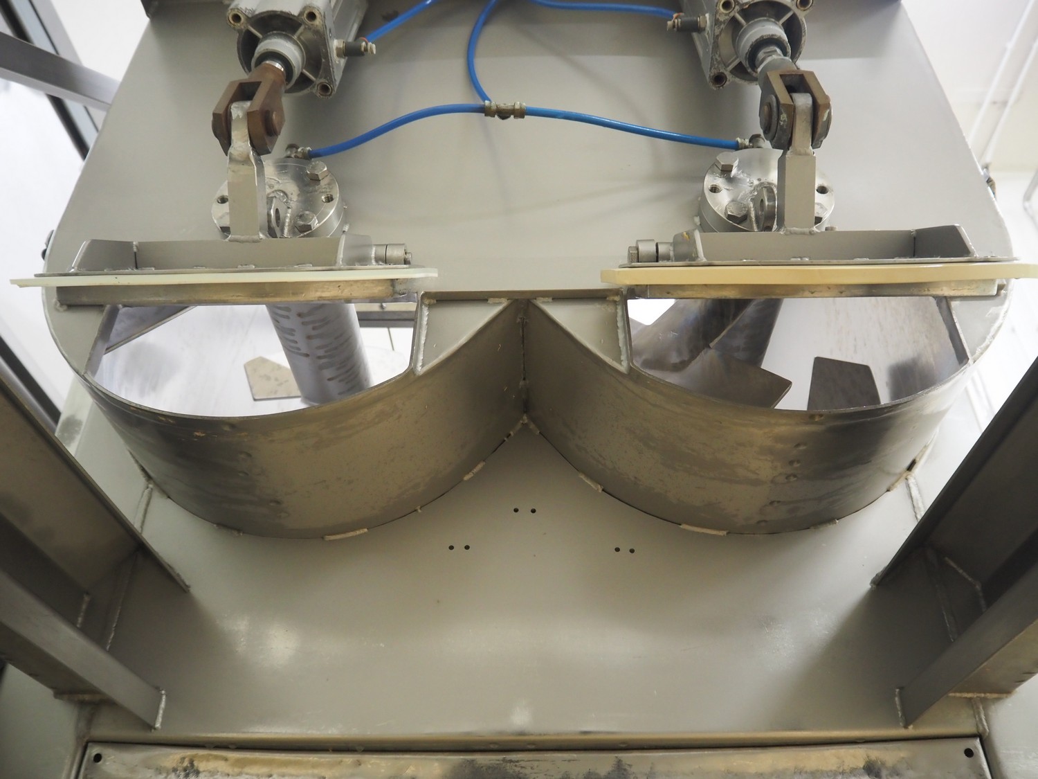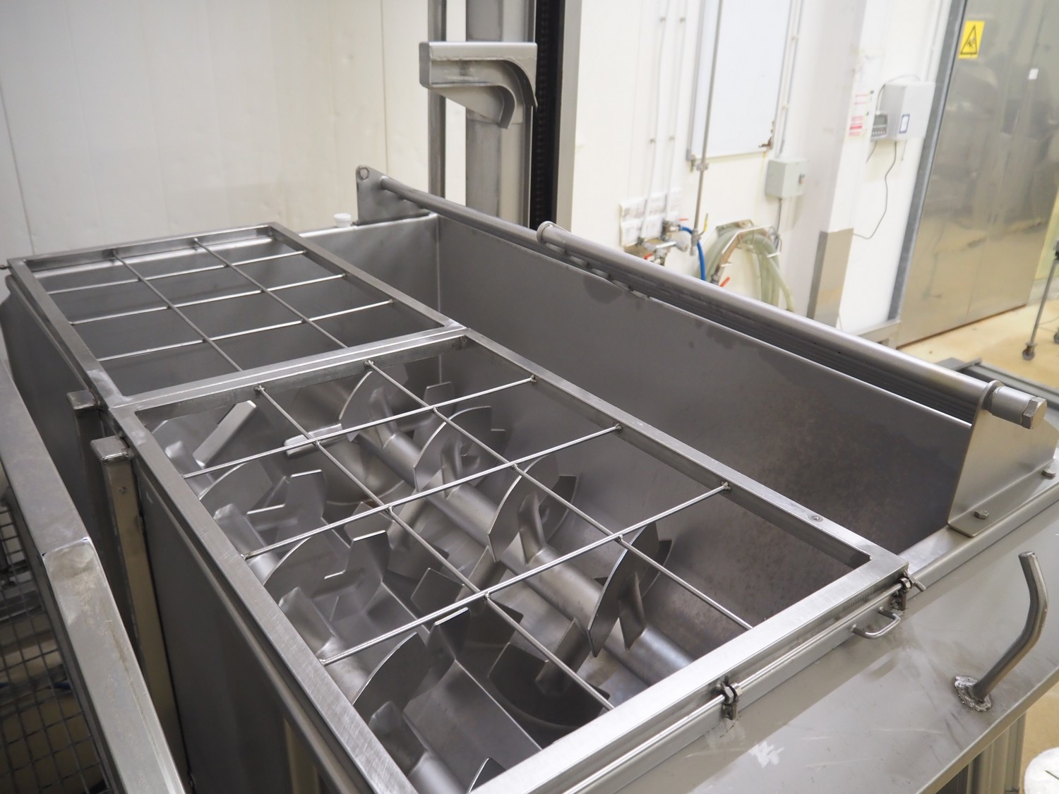 Ruostumattomat Teraslaitteet double paddle mixer, inside dimensions: 1500 mm x 910 mm x 730 mm, total dimensions: 2320 mm x 1000 mm x 1800 mm.