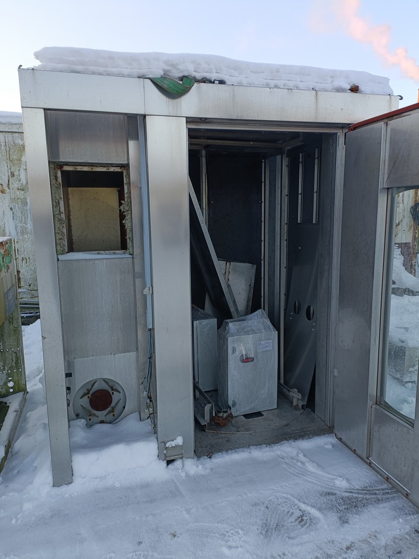 OK Tech rotation oven for 1 trolley, dimensions: 2150 mm x 1750 mm x 2250 mm. Technical condition unknown. Incomplete.