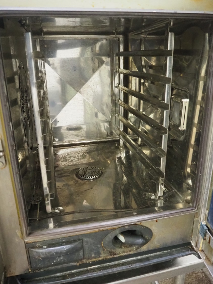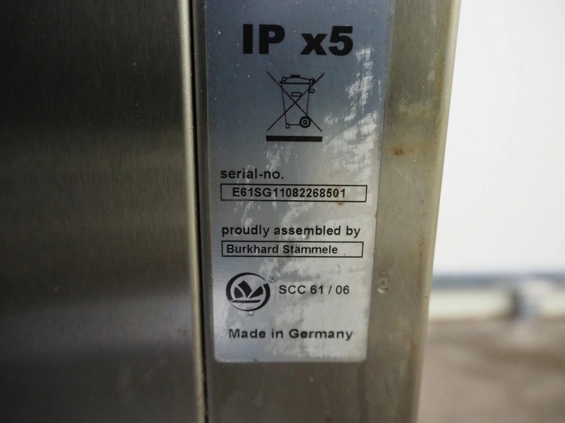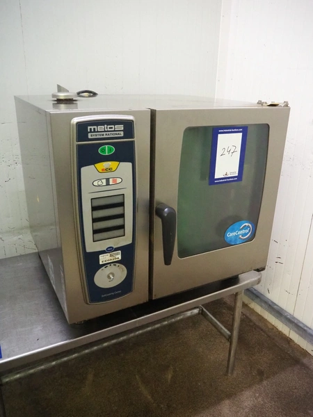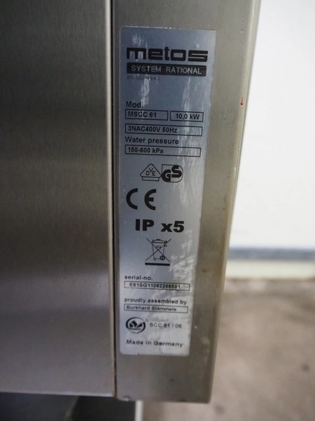 Metos combi steamer, model: MSCC 61, serial number: E61SG11082268501, 400 V, 3 Ph, 50 Hz, 10.0 kW, electrical heated, 6 floors, dimensions floors: (6x) 530 mm x 330 mm, total dimensions: 850 mm x 850 mm x 800 mm.