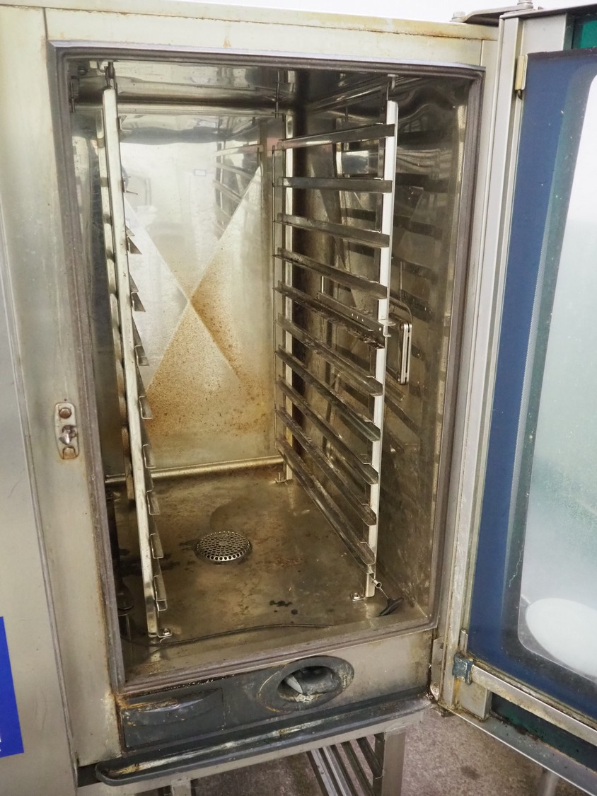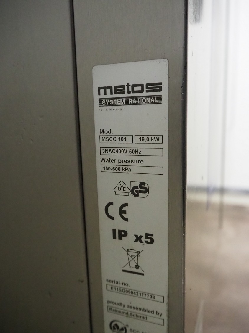 Metos combi steamer, model: MSCC 101, serial number: E11SG09042177708, 400 V, 3 Ph, 50 Hz, 19.0 kW, electrical heated, 10 floors, dimensions floors: (10x) 530 mm x 330 mm, total dimensions: 850 mm x 850 mm x 1680 mm.