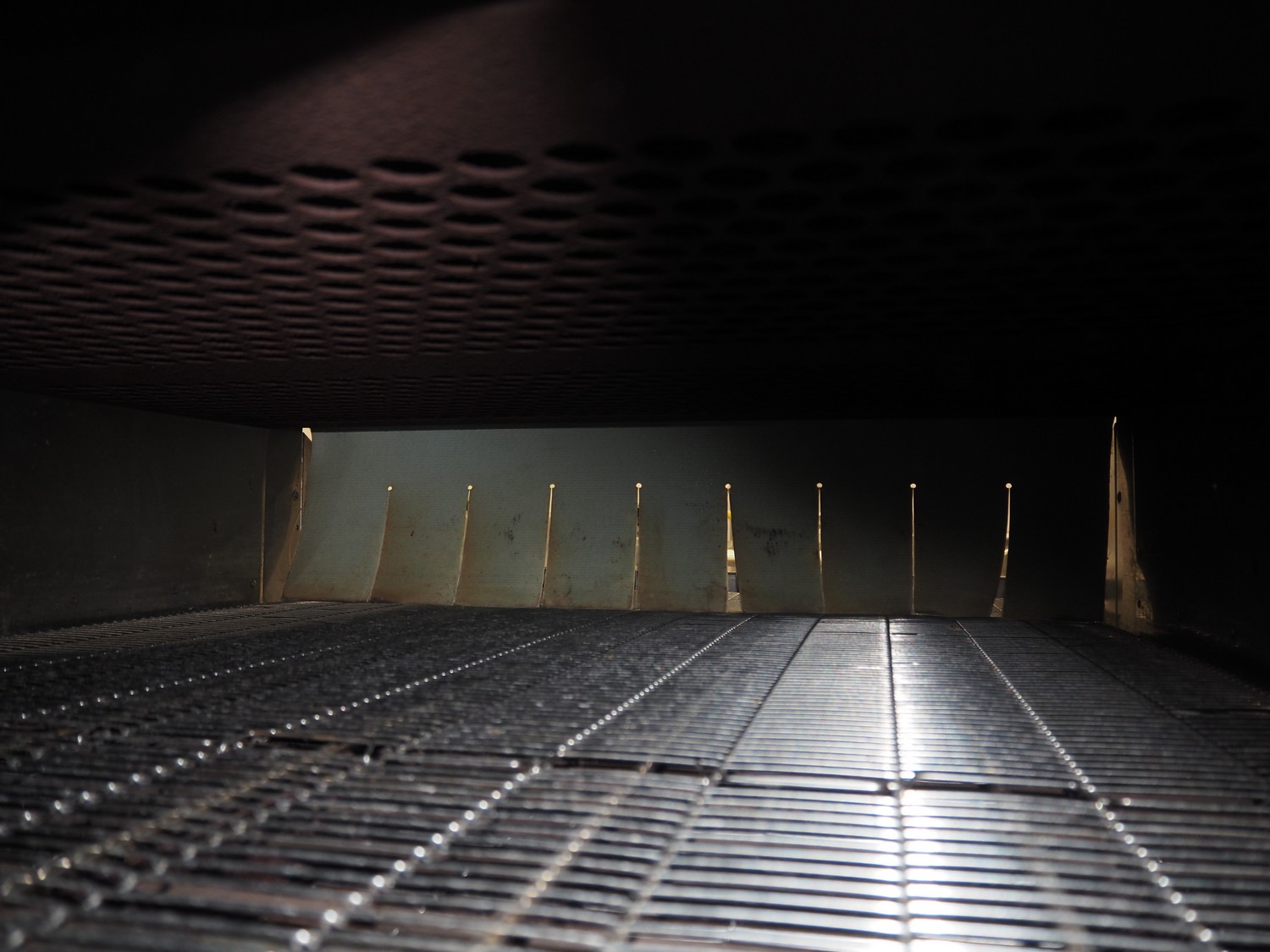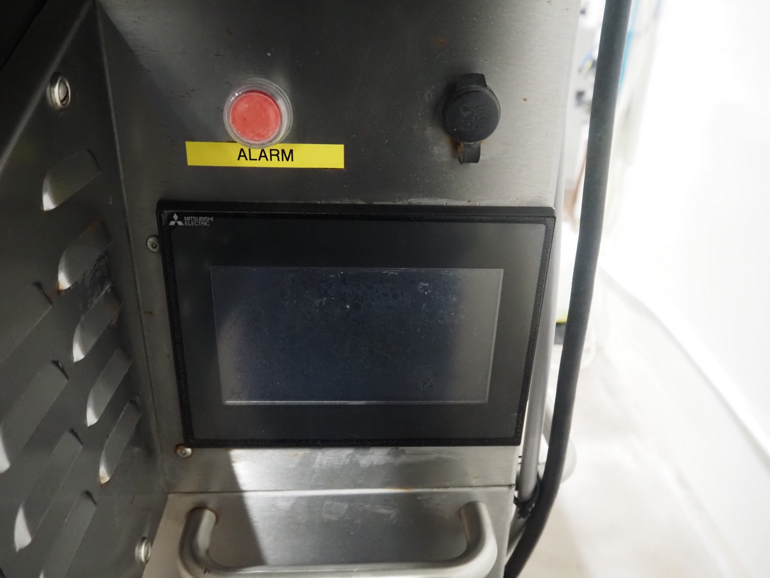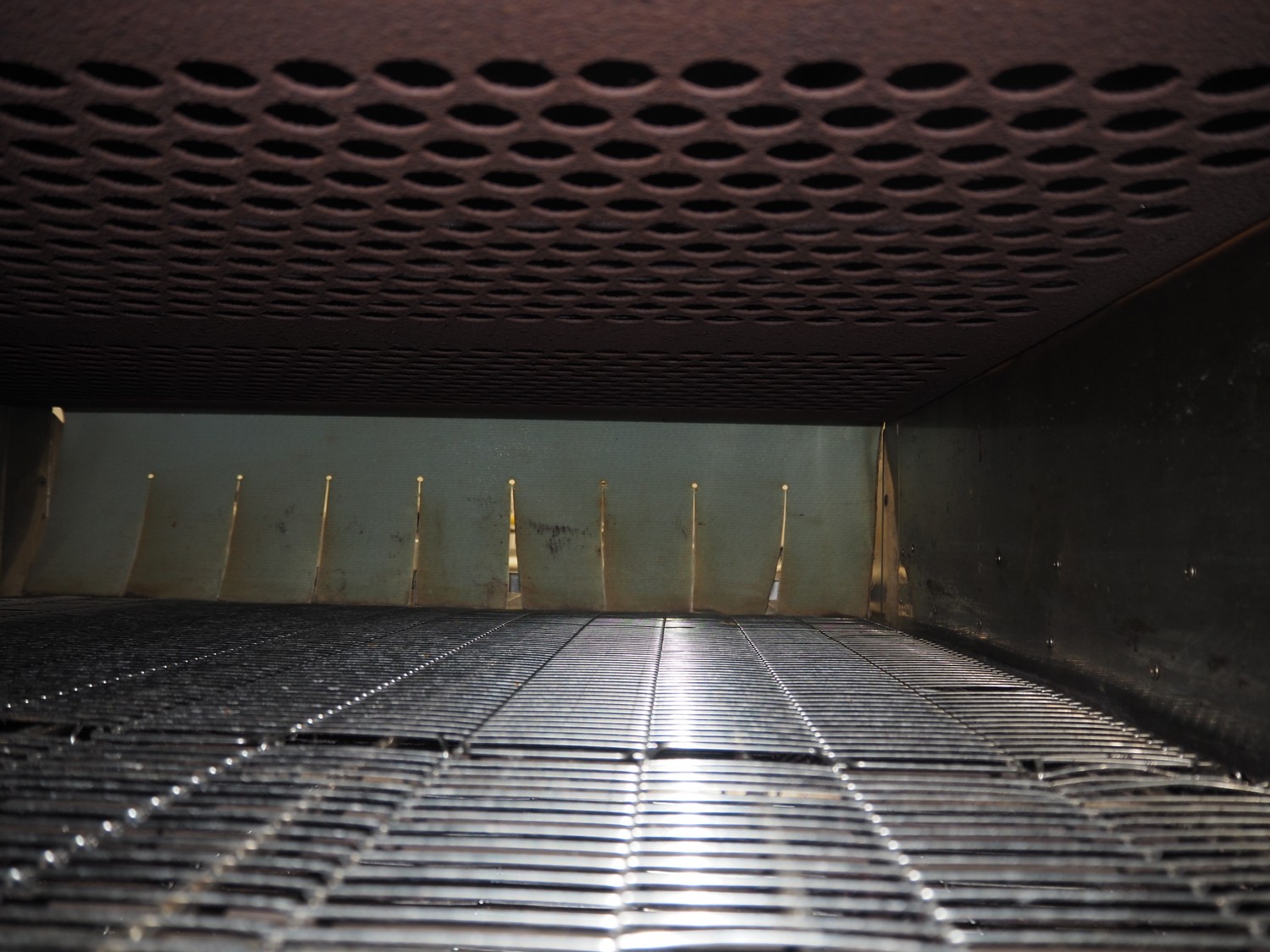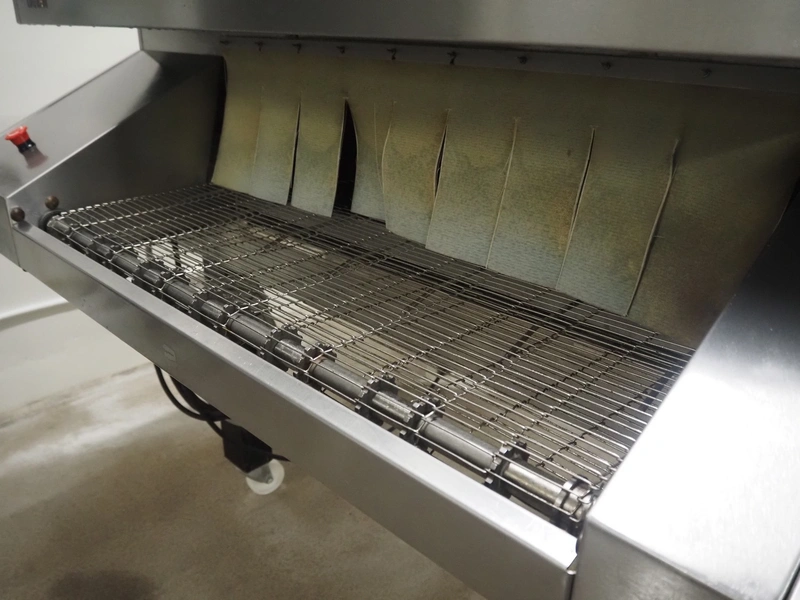 Sveba Dahlen AB mobile pizza oven, model number: TP-12, serial number: M242913,/1642, 3x400 V, 50/60 Hz, 18 kW, belt width s/s mesh belt: 900 mm, clearance: 950 mm x 180 mm, total dimensions: 1850 mm x 1390 mm x 1650 mm.