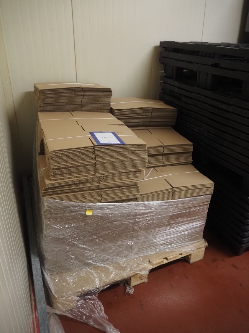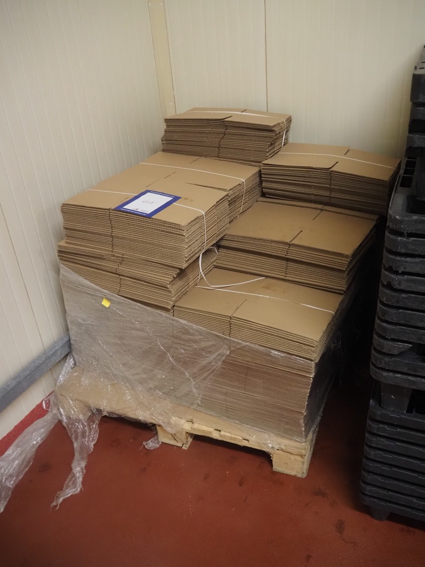 Pallet with large amount of cardboard boxes, dimensions boxes: 285 mm x 210 mm x 110 mm.