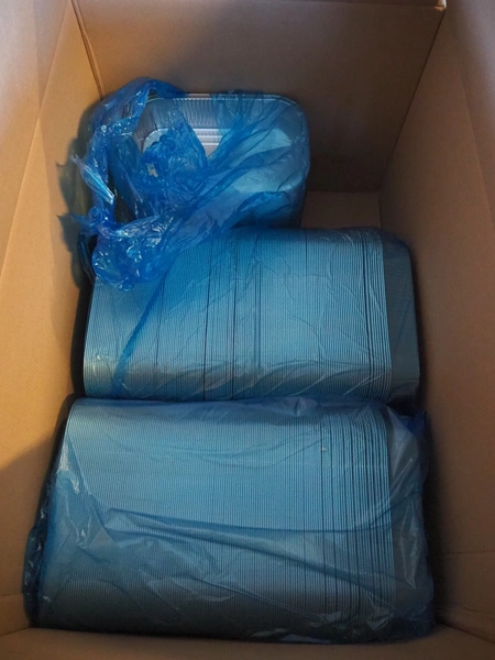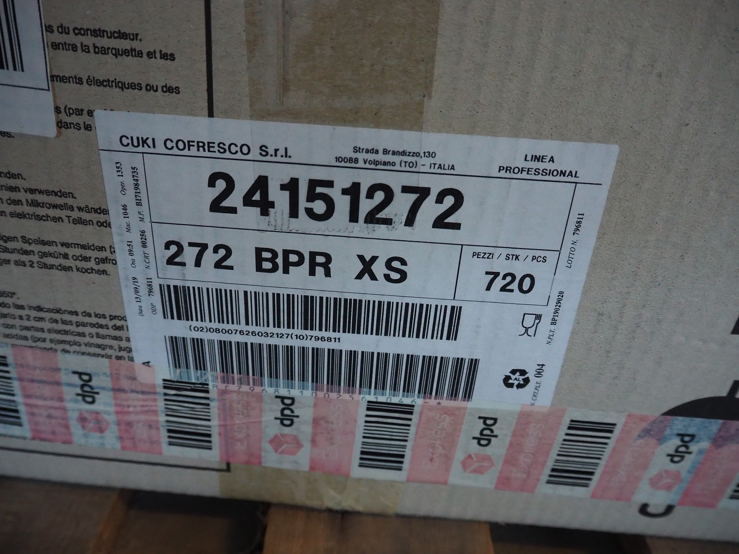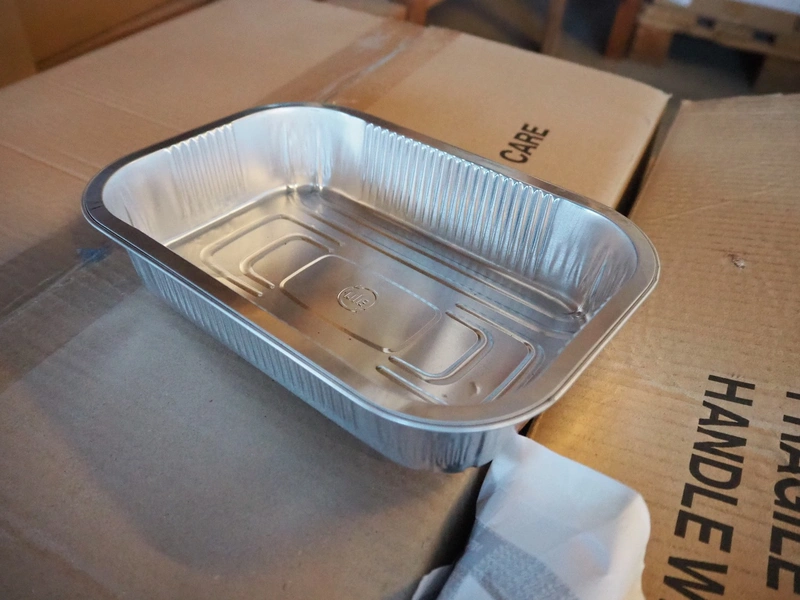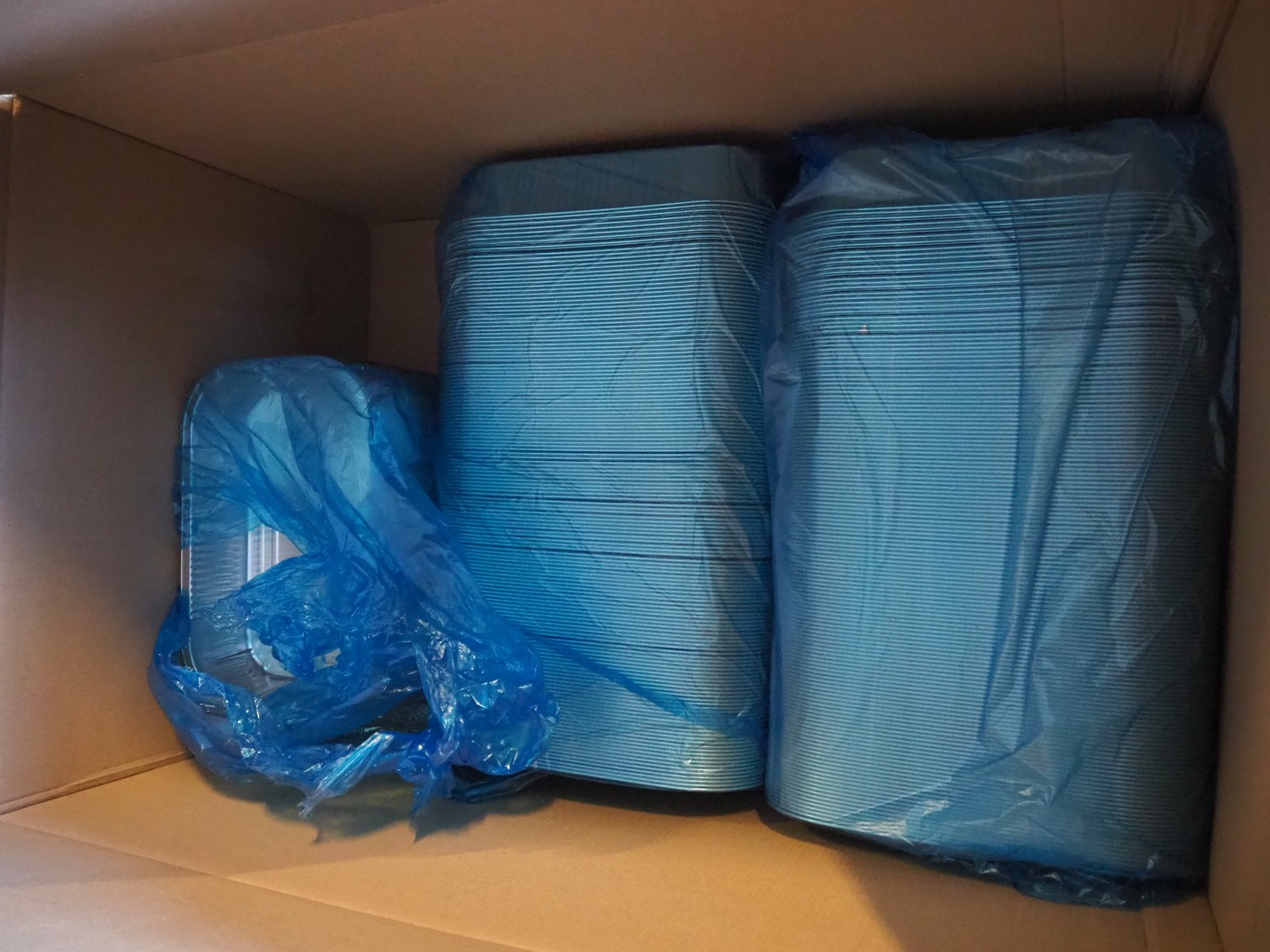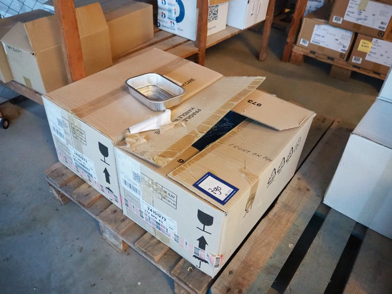 Pallet with 2 boxes of Cuki Cofresco S.r.l. aluminium trays, dimensions trays: 220 mm x 150 mm x 45 mm.