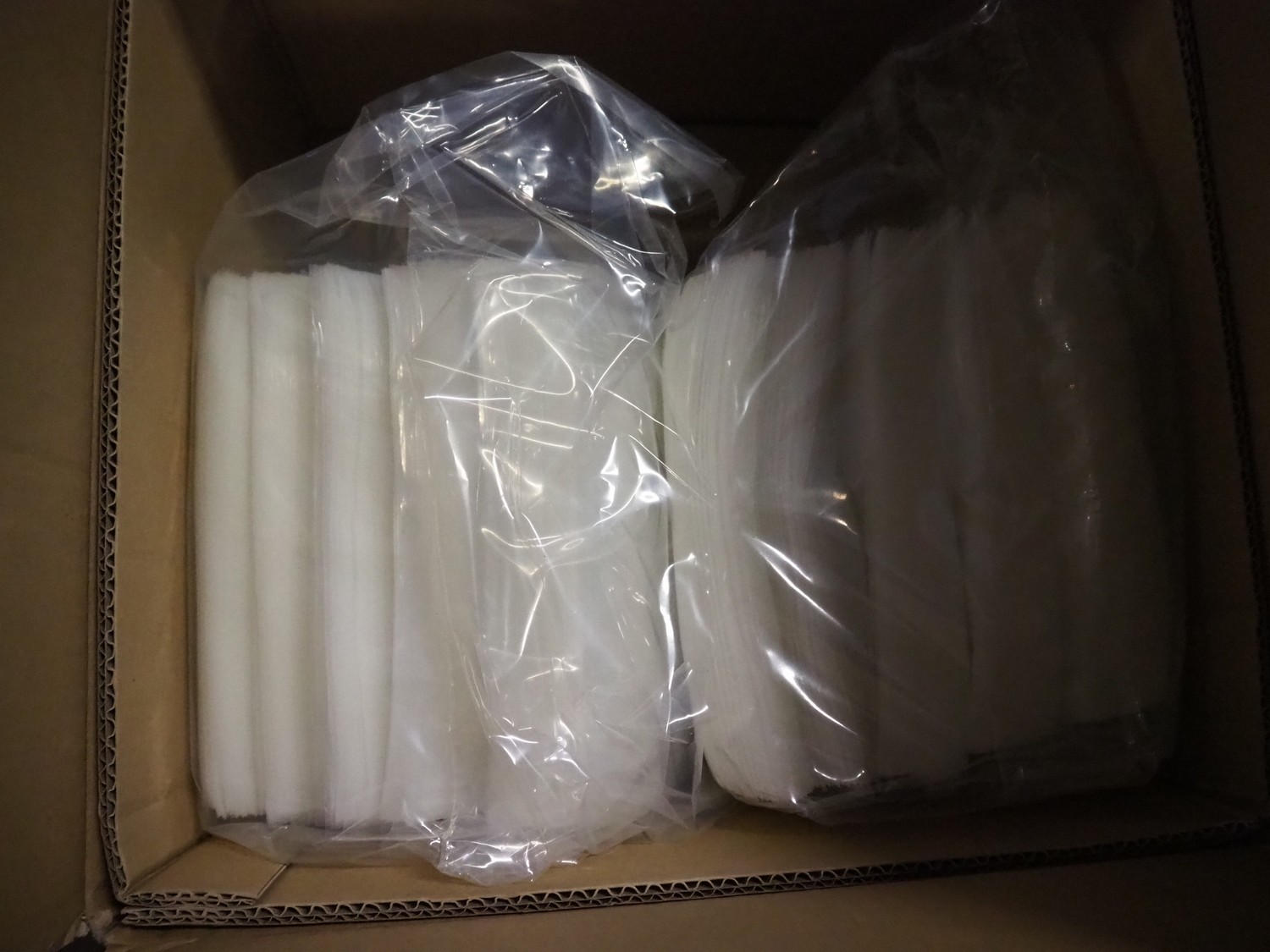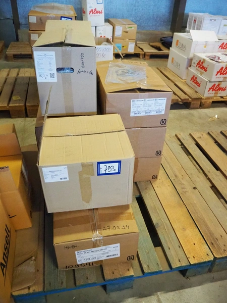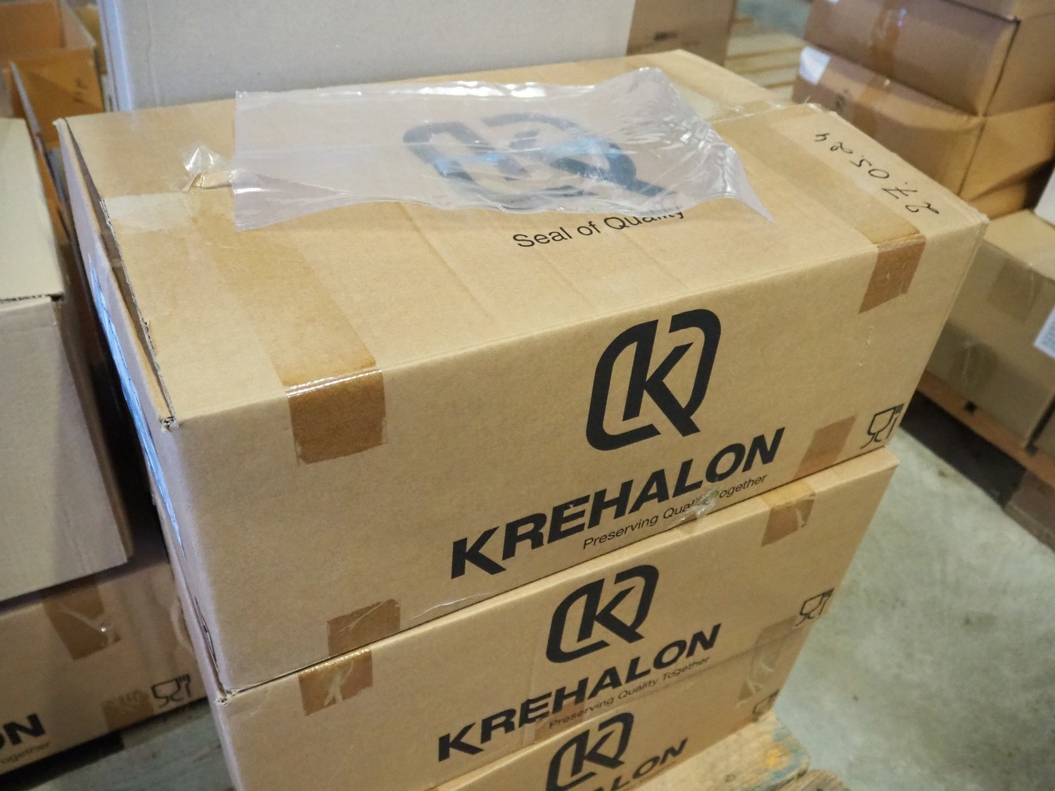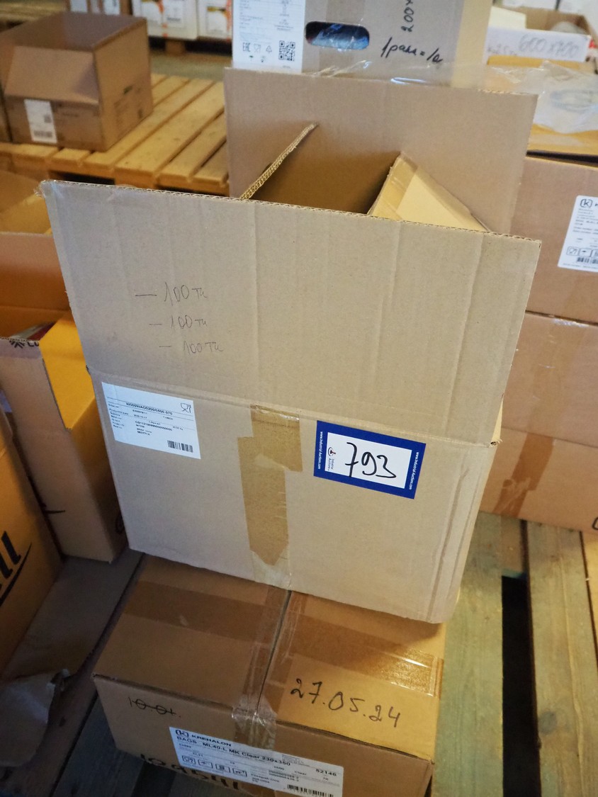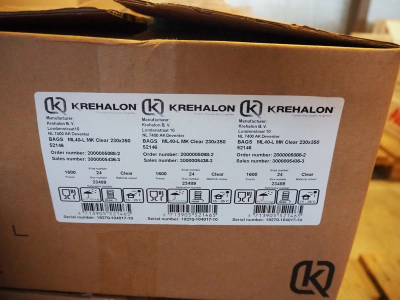 Pallet with various boxes of Krehalon and Freshpack Solutions plastic vacuum bags, dimensions bags: 200 mm x 700 mm and 230 mm x 350 mm.