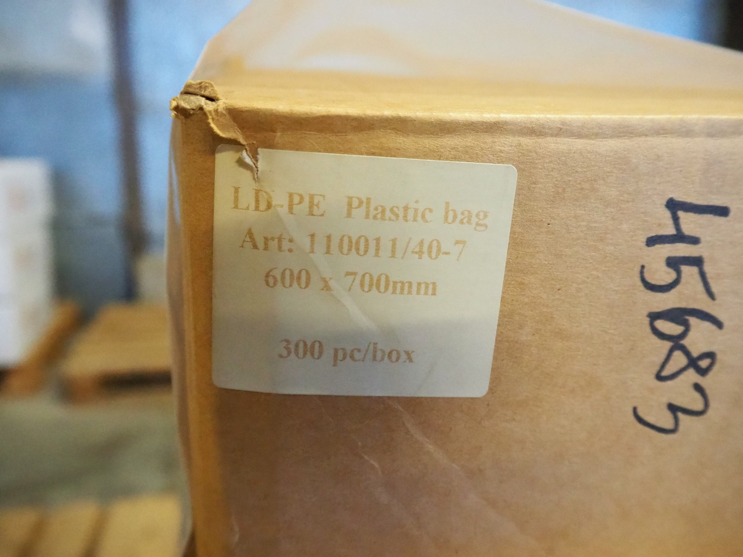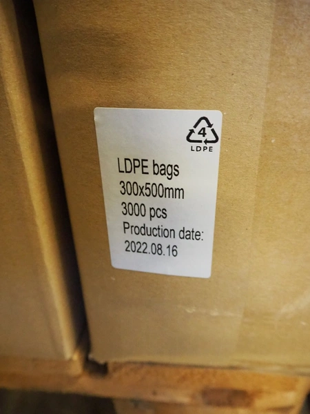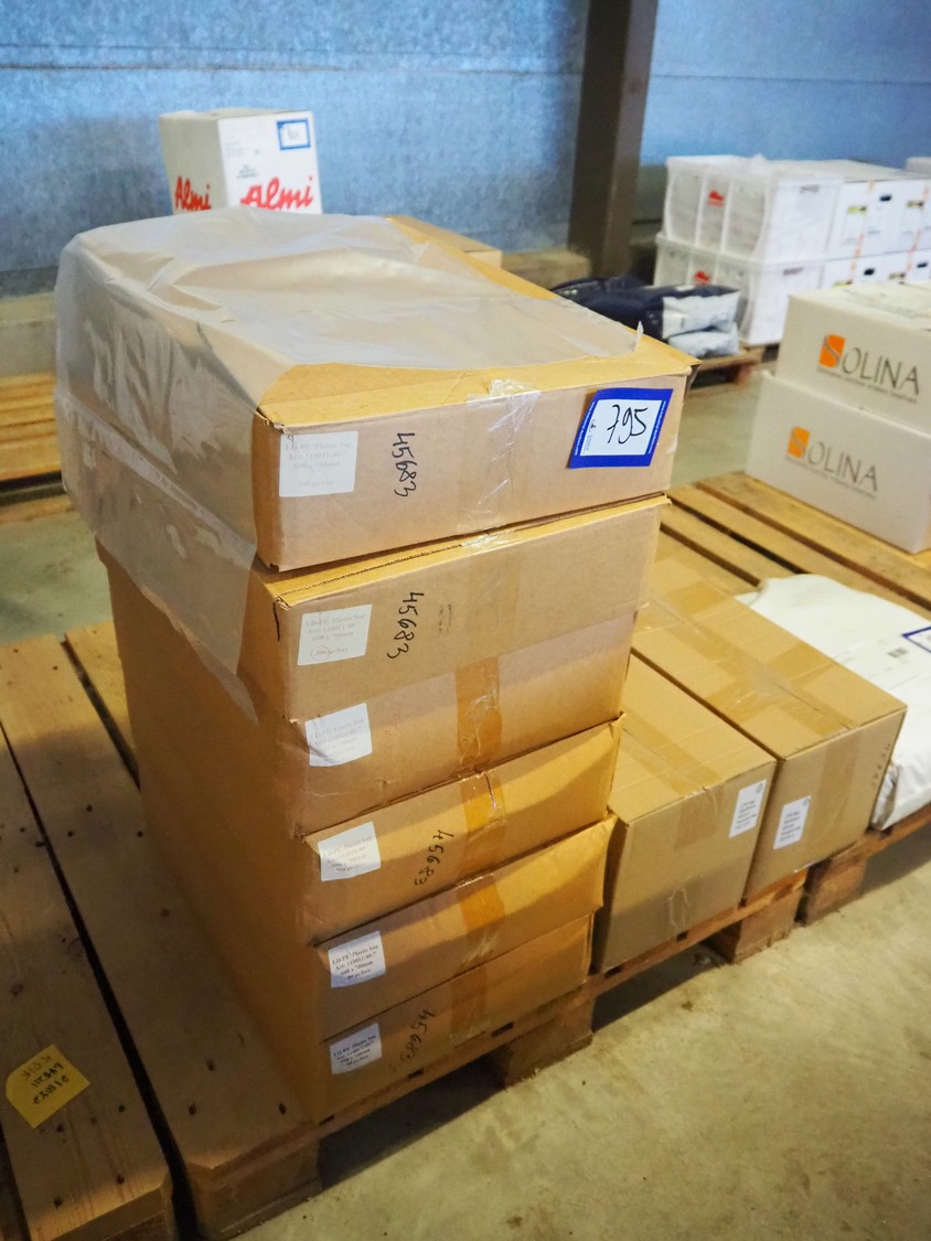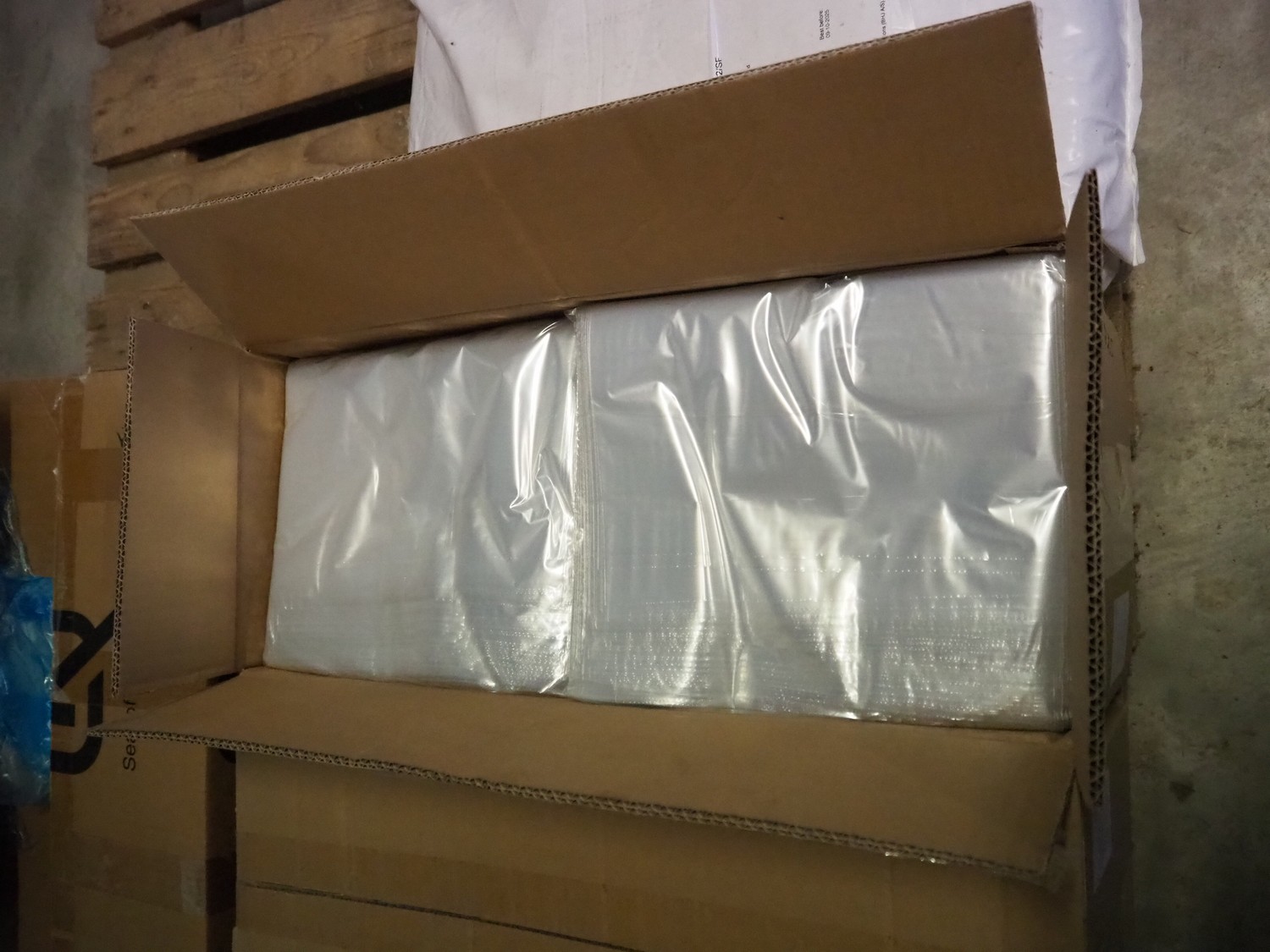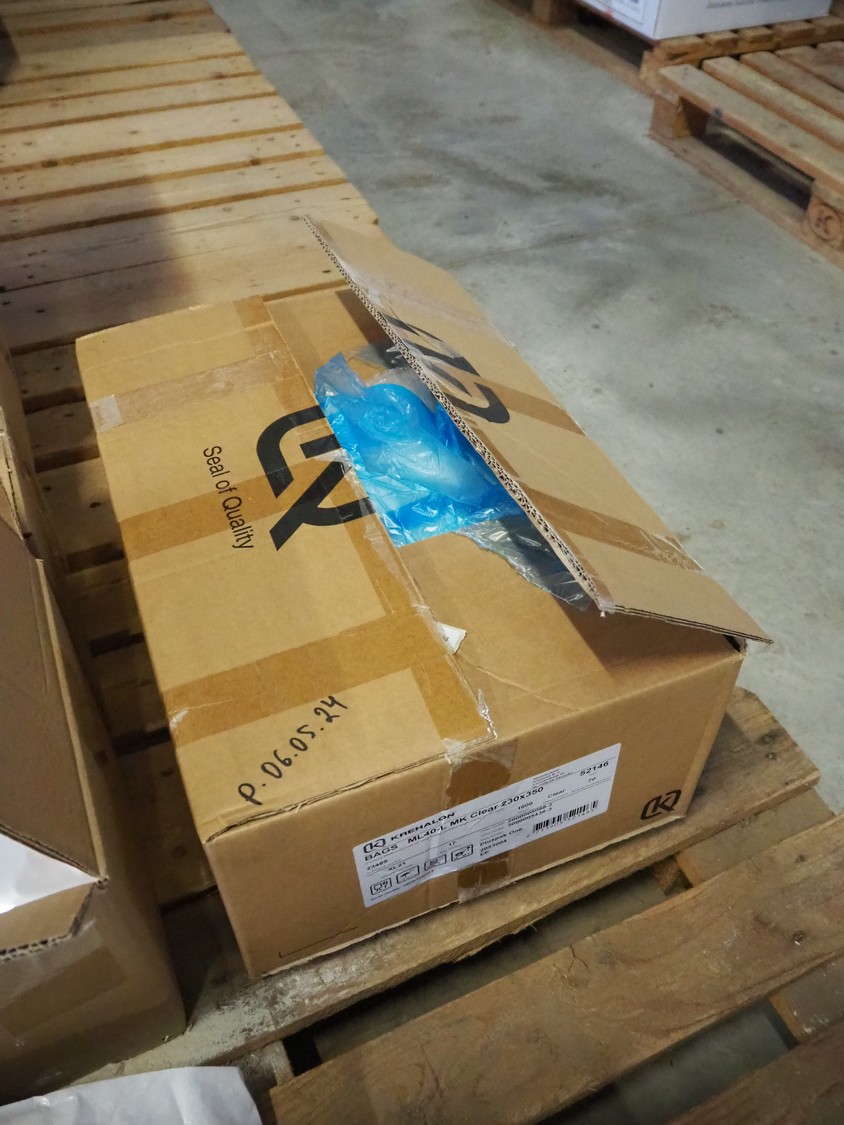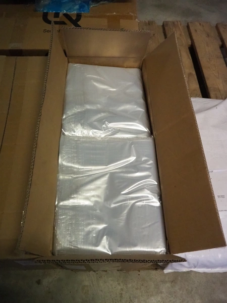 Pallet with 9 boxes of plastic vacuum bags, dimensions bags: 600 mm x 700 mm and 300 mm x 500 mm.