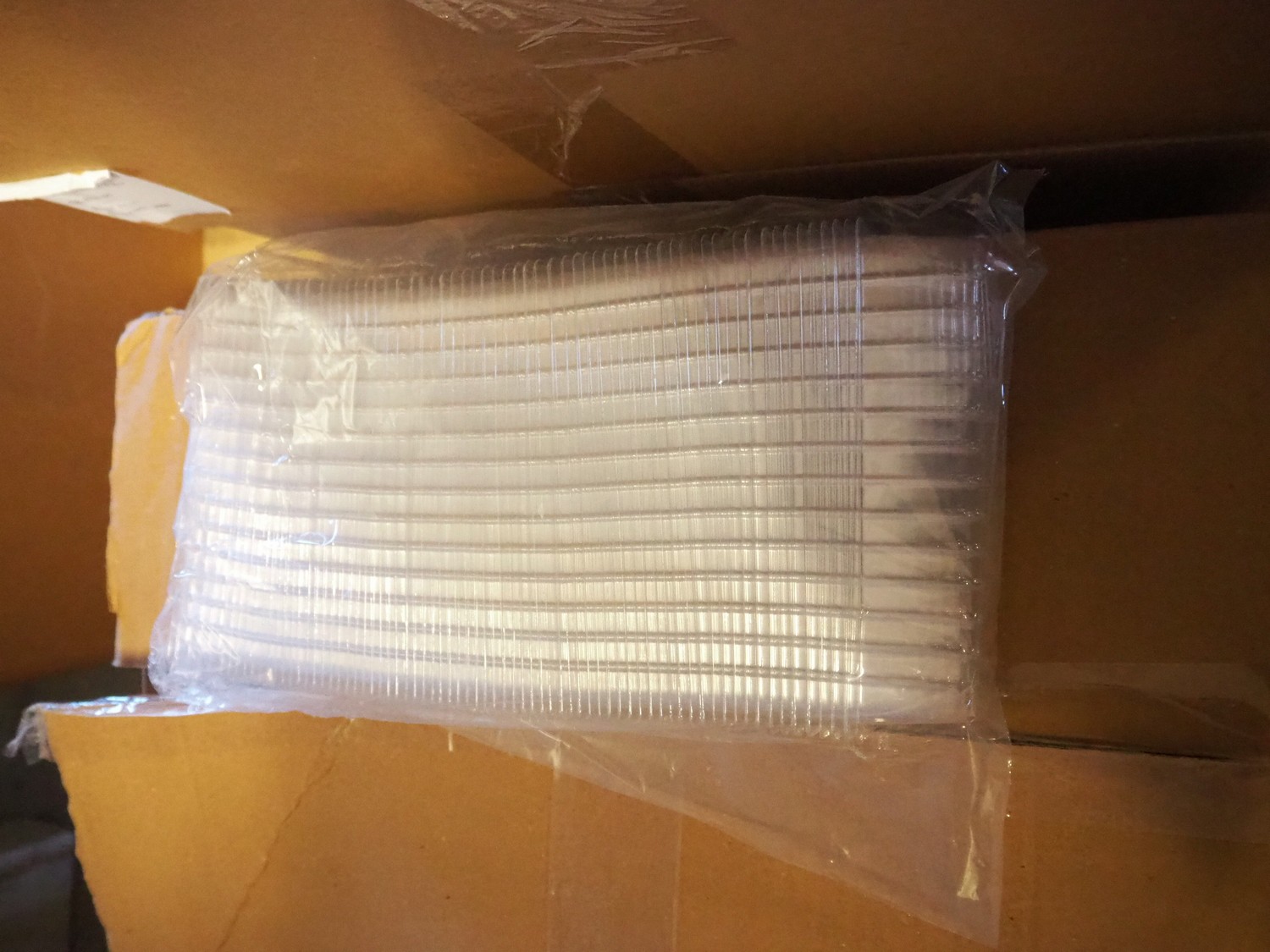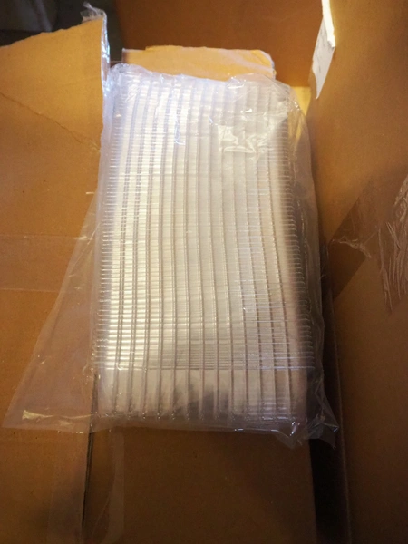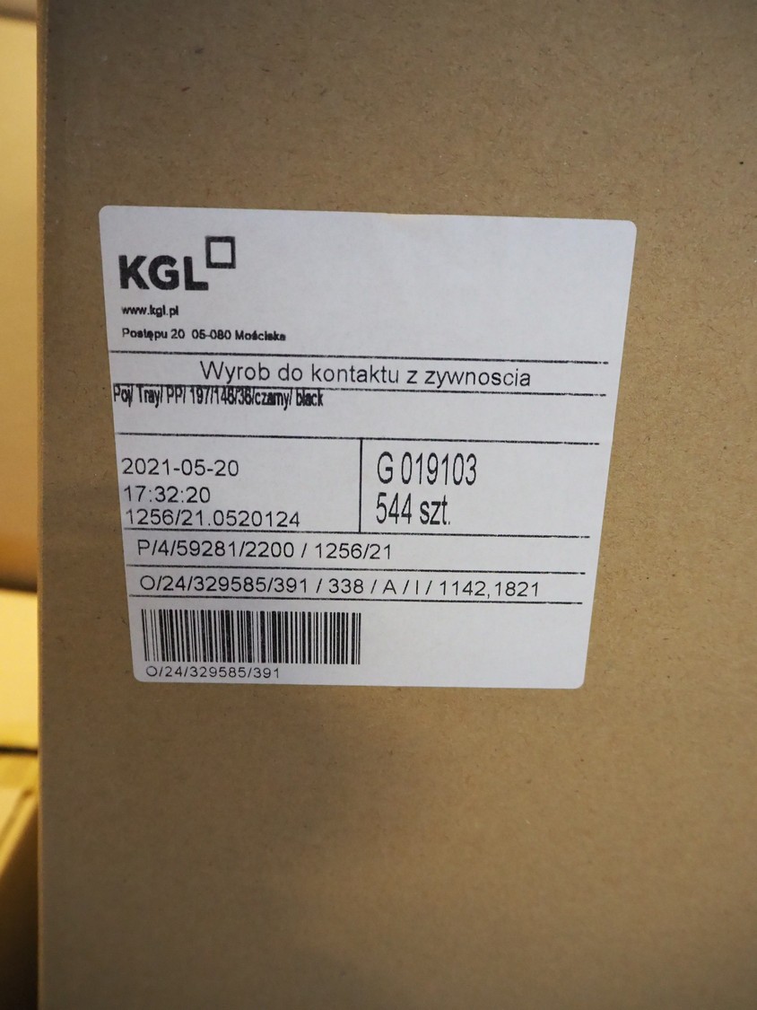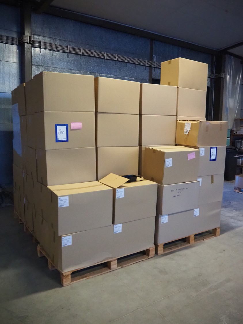 7 pallet with large amount of plastic trays, dimensions trays: 200 mm x 150 mm x 55 mm.