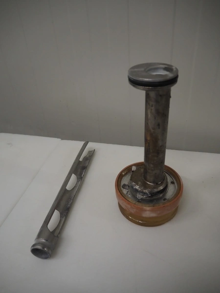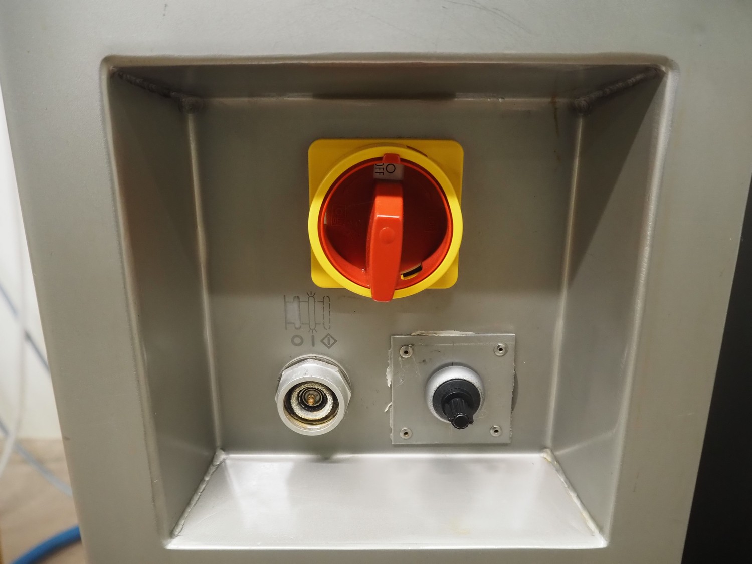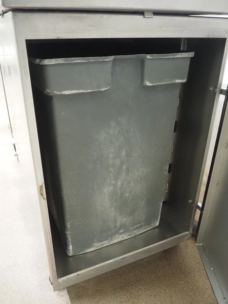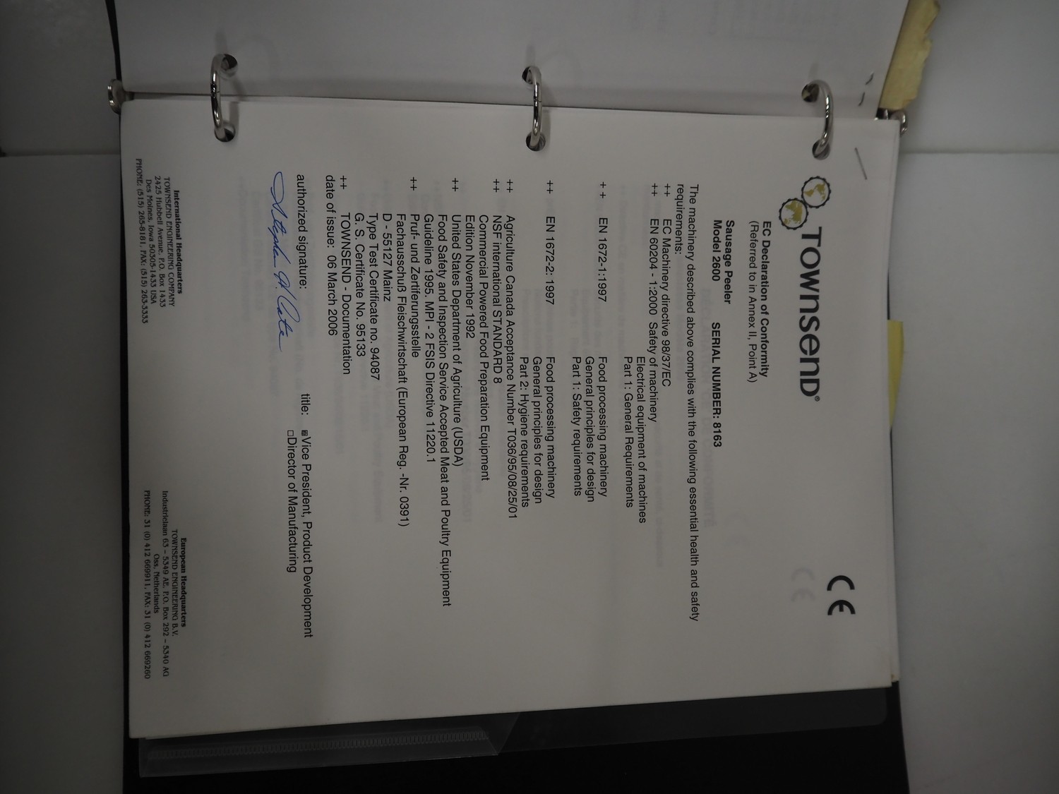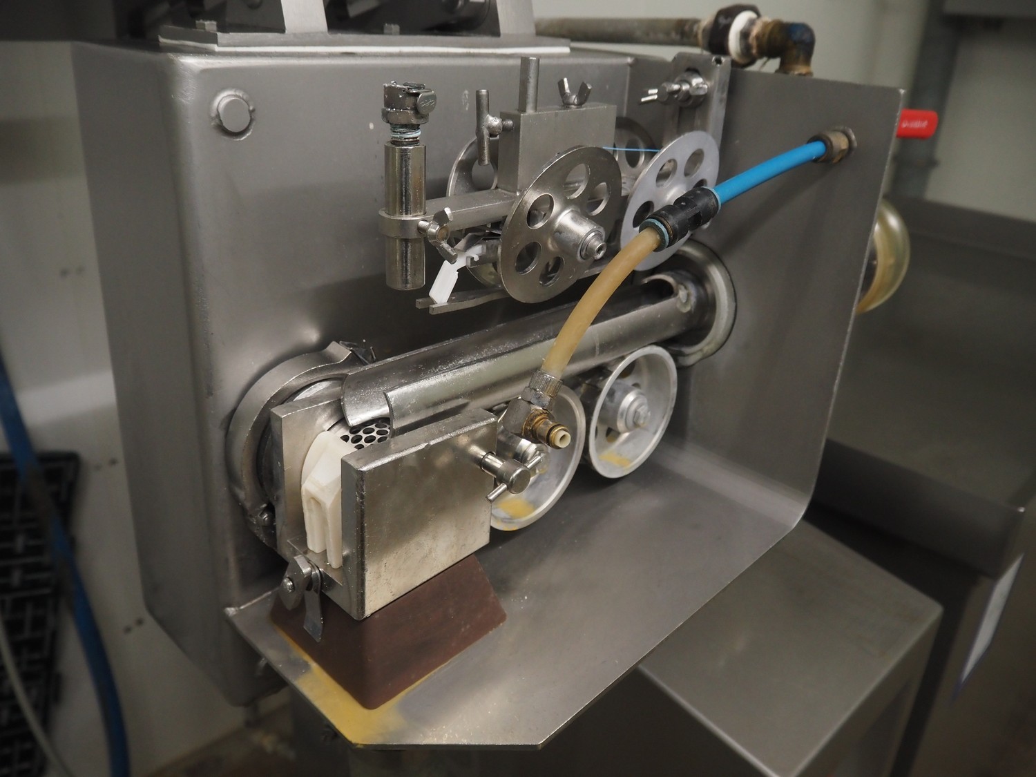 Townsend mobile sausage peeler with suction device, model: 2600, number: 9163, year of construction: 2006, 380 V, 3 Ph, 50 Hz, 3.7/8.0 A, 1.5/3.7 kW, diameter pipe: 65 mm, dimensions peeler: 800 m mx 630 mm x 1500 mm, dimensions suction device: 1300 mm x 670 mm x 1020 mm.