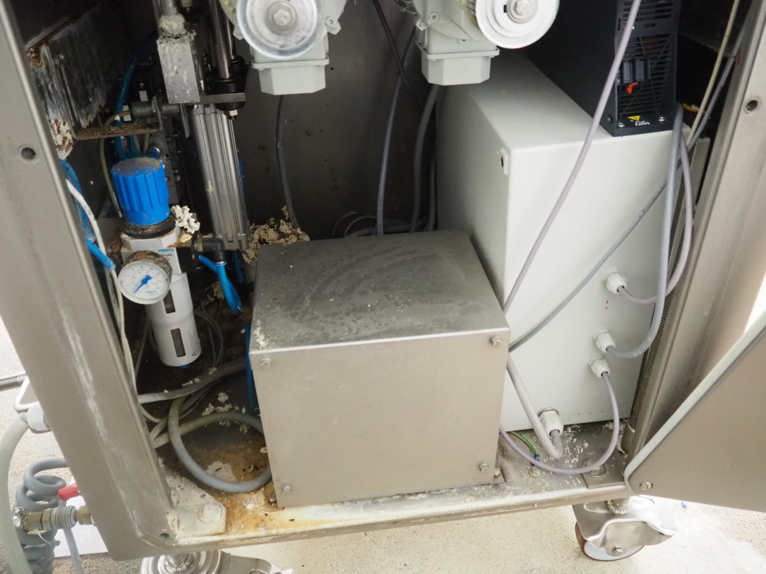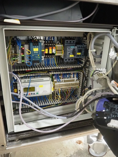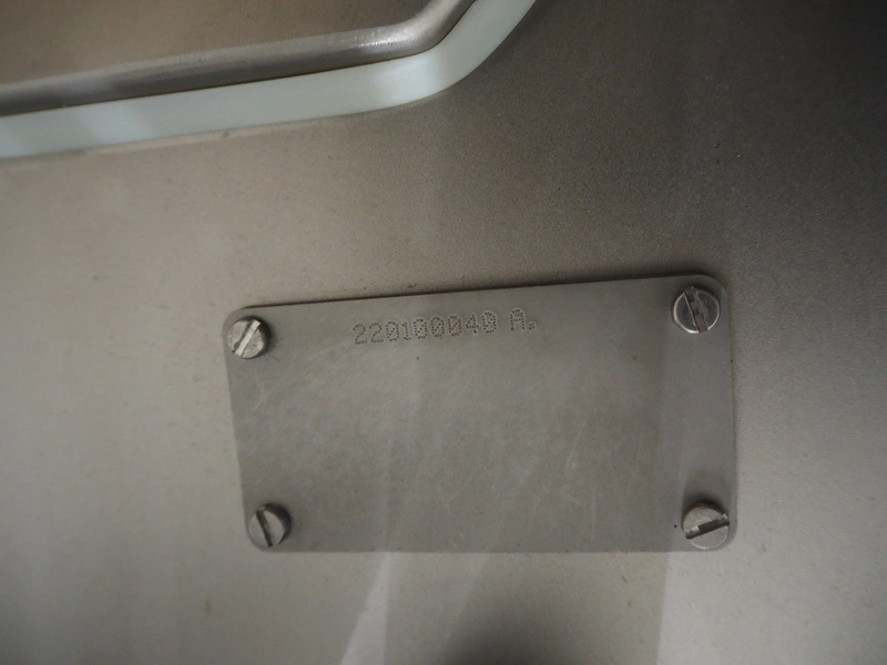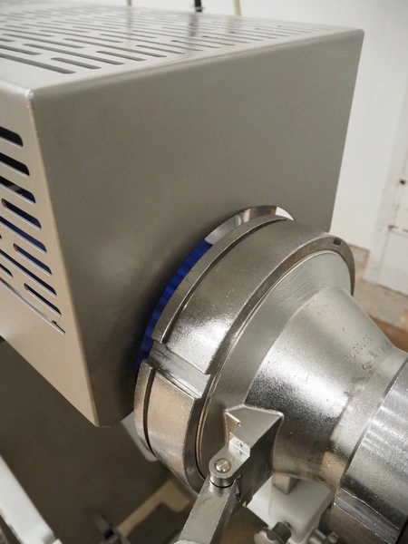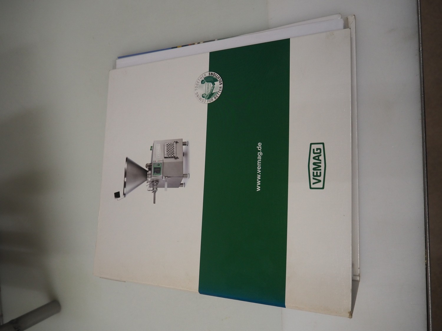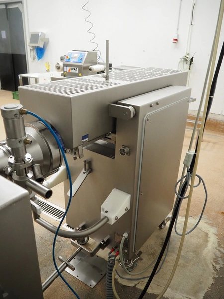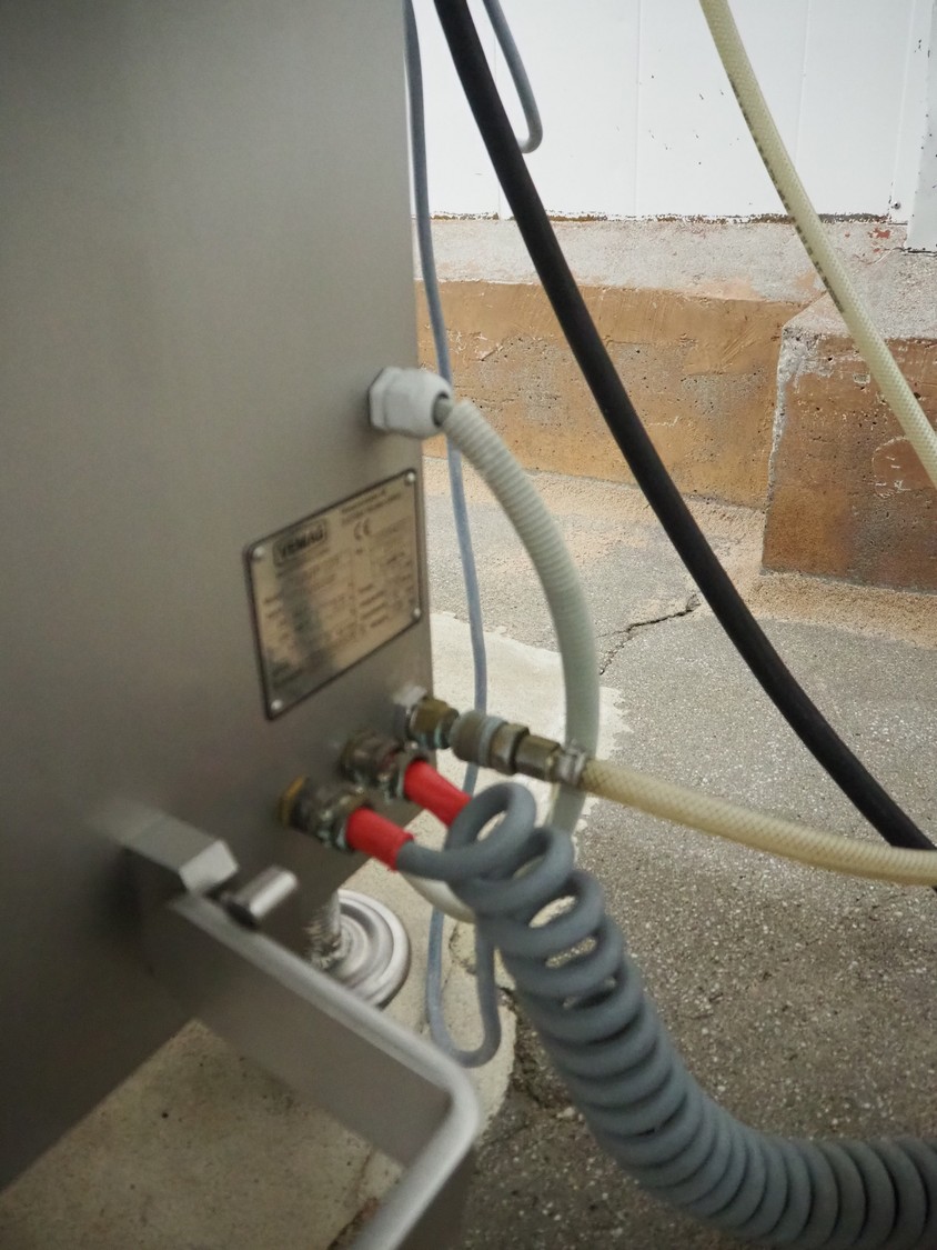 Vemag Maschinenbau GmbH mobile portioning machine, model: MMP 220, number: 2200403, year of construction: 2012, 400-460 V, 3 Ph, 50/60 Hz, 3.5 A, 1.5 kW, 6 bar, weight: 335 kg, working width: 260 mm, plastic belts, belt width: (2x) 250 mm, total dimensions: 1760 mm x 600 mm x 1550 mm.