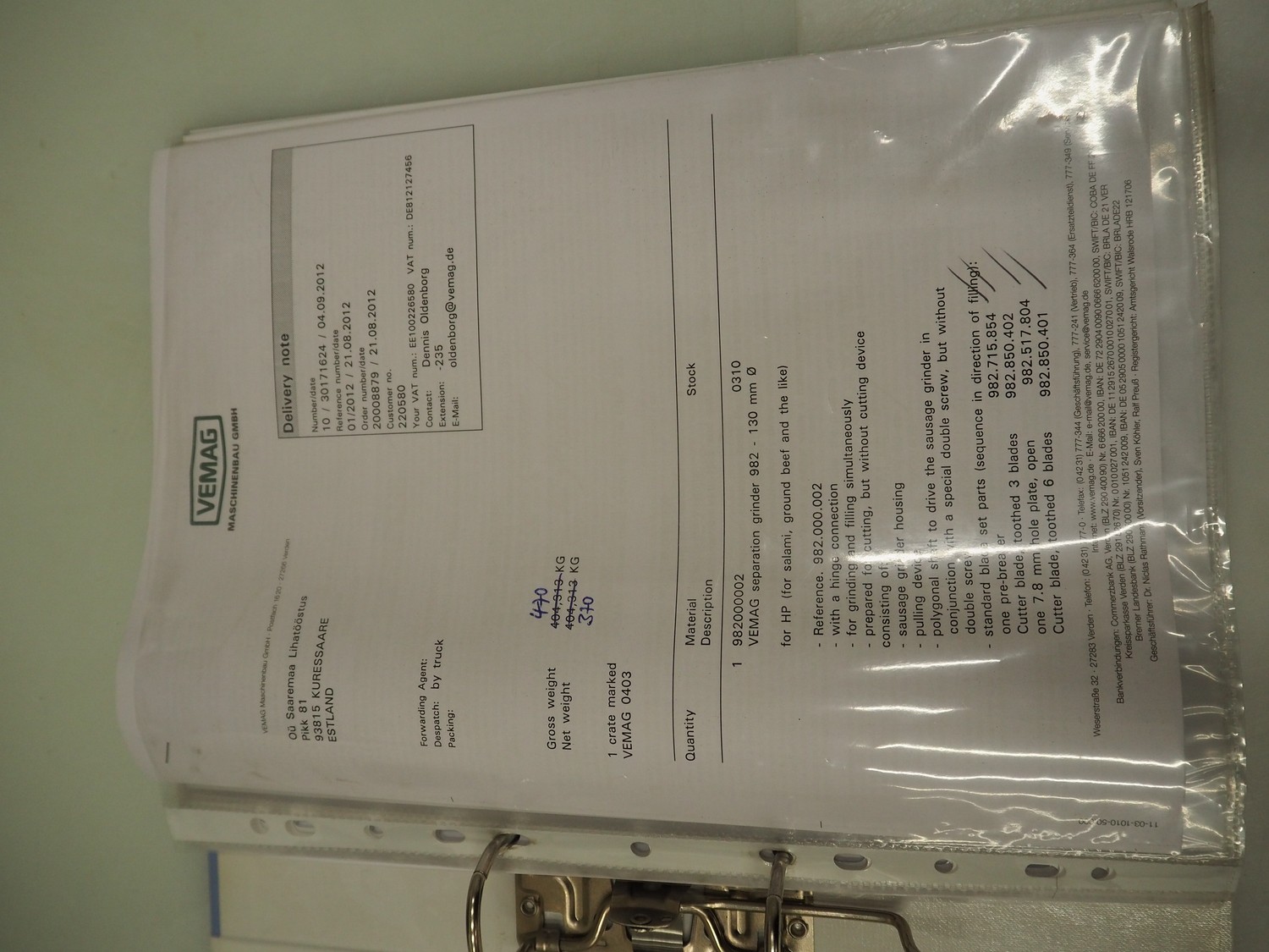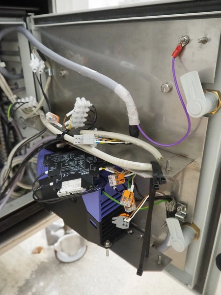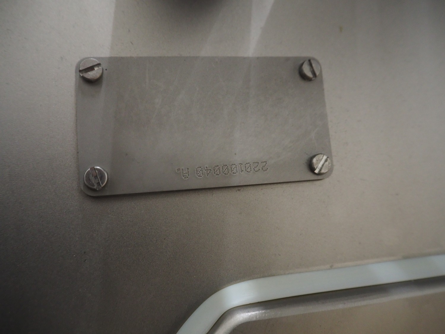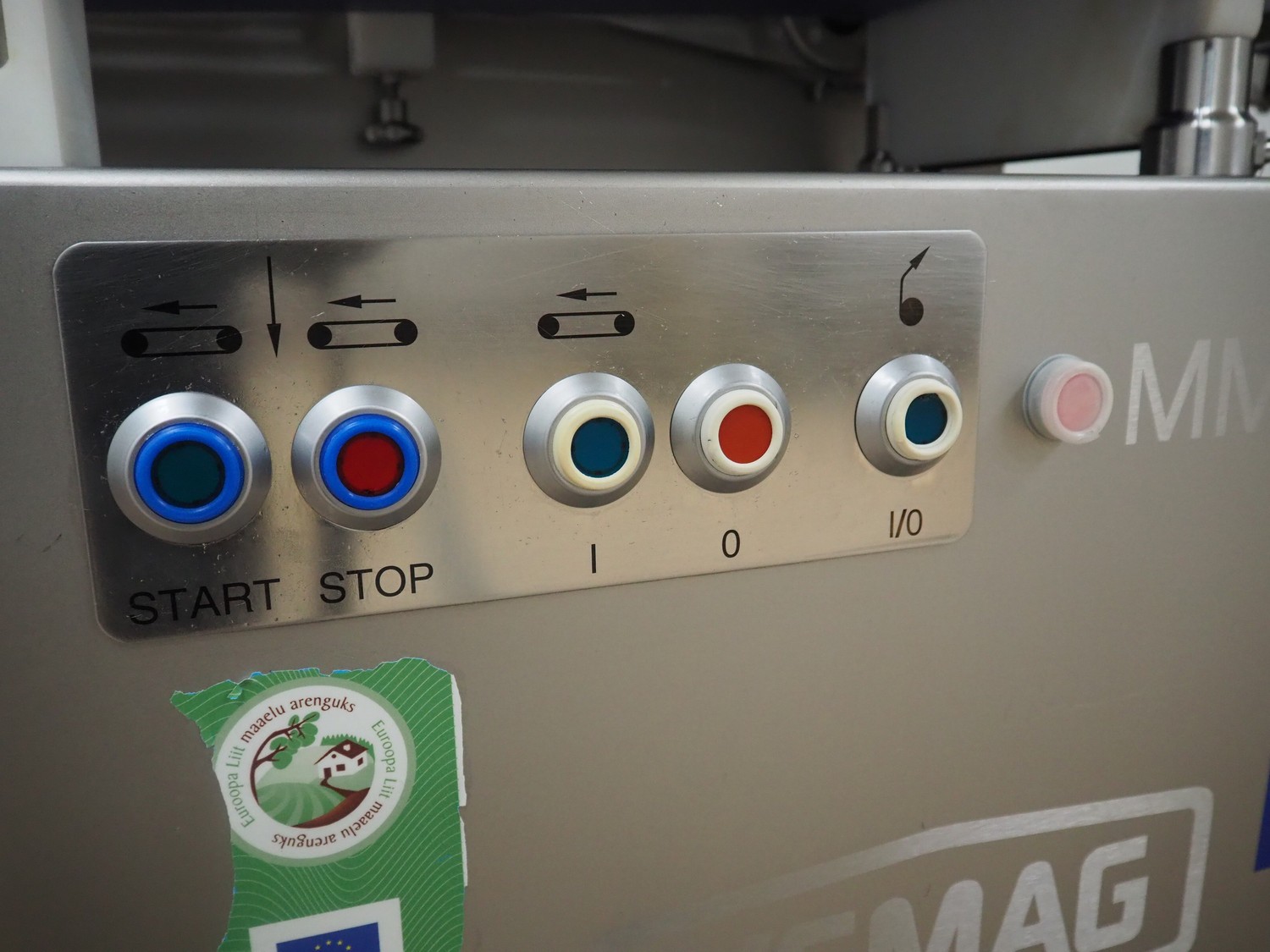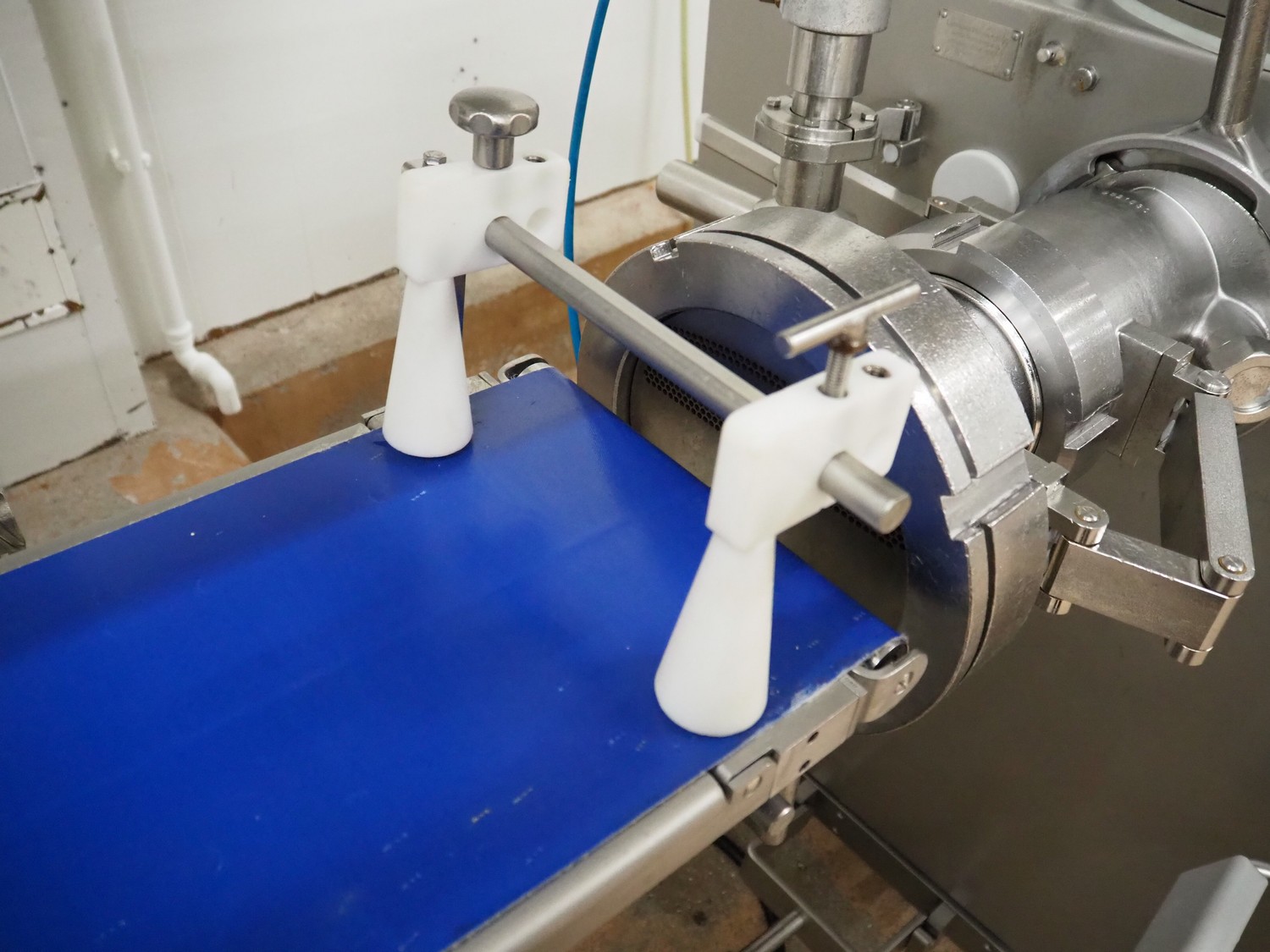Vemag Maschinenbau GmbH mobile portioning machine, model: MMP 220, number: 2200403, year of construction: 2012, 400-460 V, 3 Ph, 50/60 Hz, 3.5 A, 1.5 kW, 6 bar, weight: 335 kg, working width: 260 mm, plastic belts, belt width: (2x) 250 mm, total dimensions: 1760 mm x 600 mm x 1550 mm.