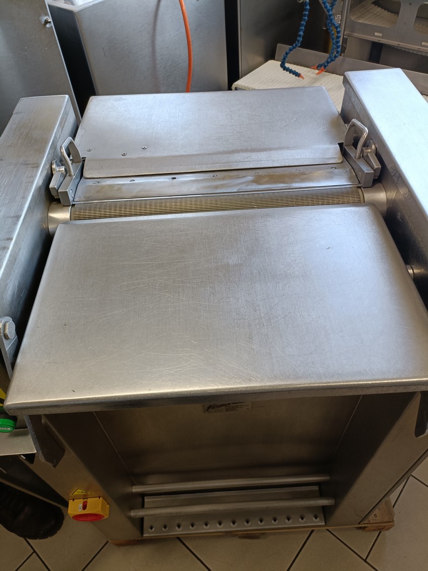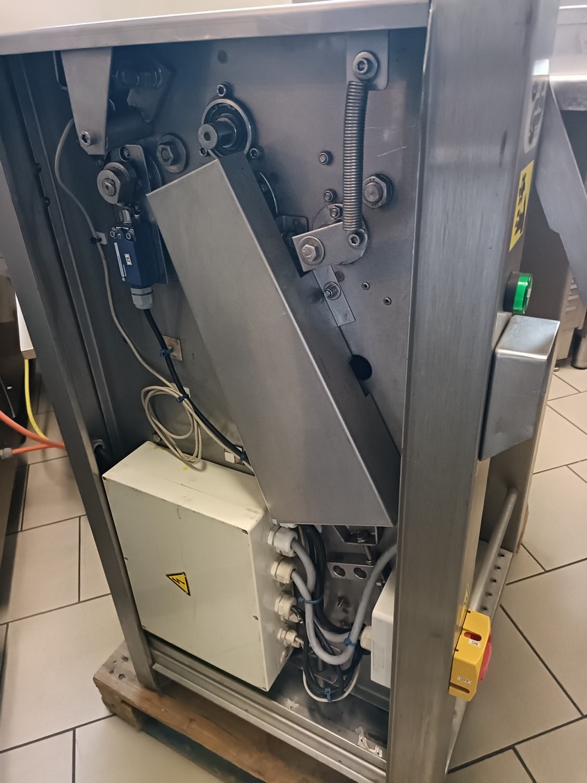 Mobile skinning machine, 400 V, 16 A, working width: 400 mm, total dimensions: 770 mm x 680 mm x 1000 mm.