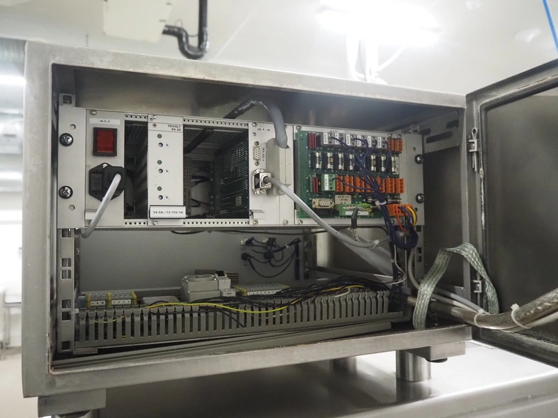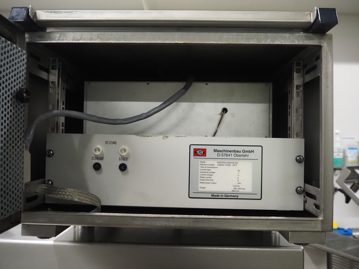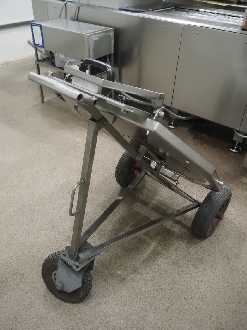 - Treif Maschinenbau GmbH checkweigher, model: KONTROLLWAAGE BG, machine number: 248004.113485.4673, weight: 180 kg, plastic wire belt, belt width: 230 mm, total dimensions checkweigher: 620 mm x 1010 mm x 1100 mm;