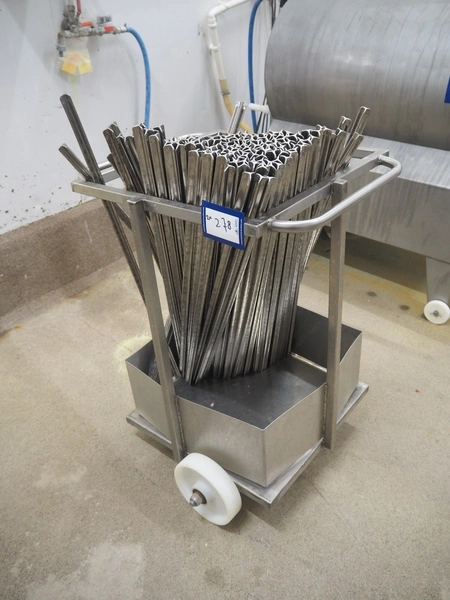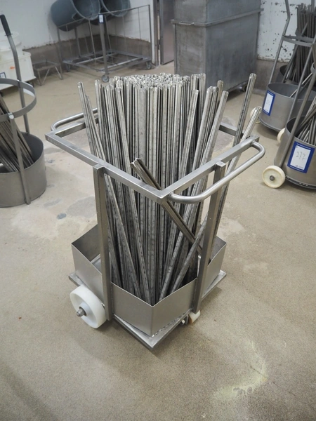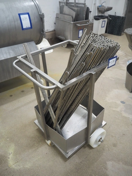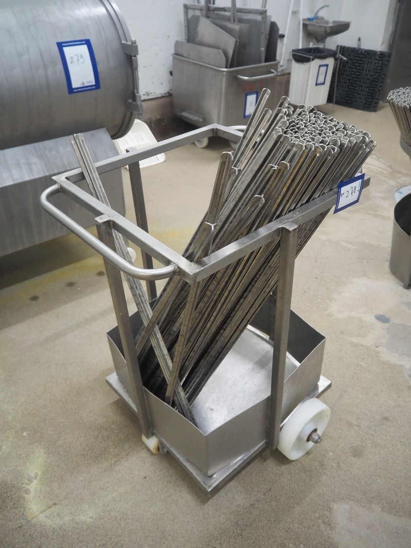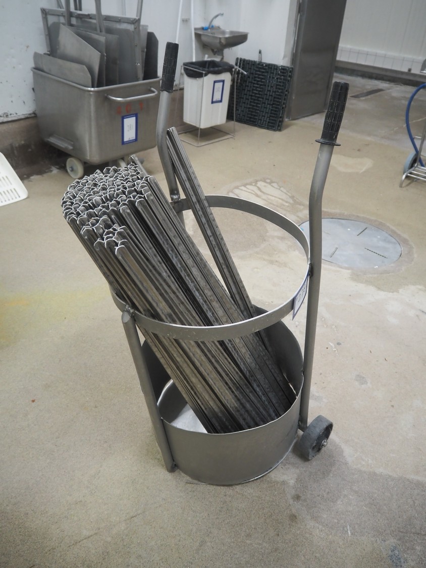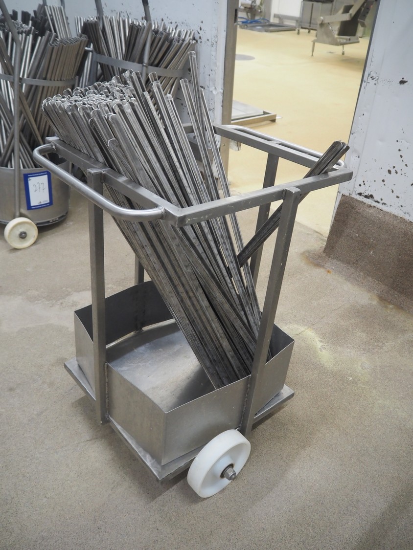 2 s/s trolleys with large amount of Y-shaped aluminium smoke sticks, length smoke sticks: 980 mm, dimensions trolleys: 550 mm x 540 mm x 1140 mm and 700 mm x 630 mm x 880 mm.