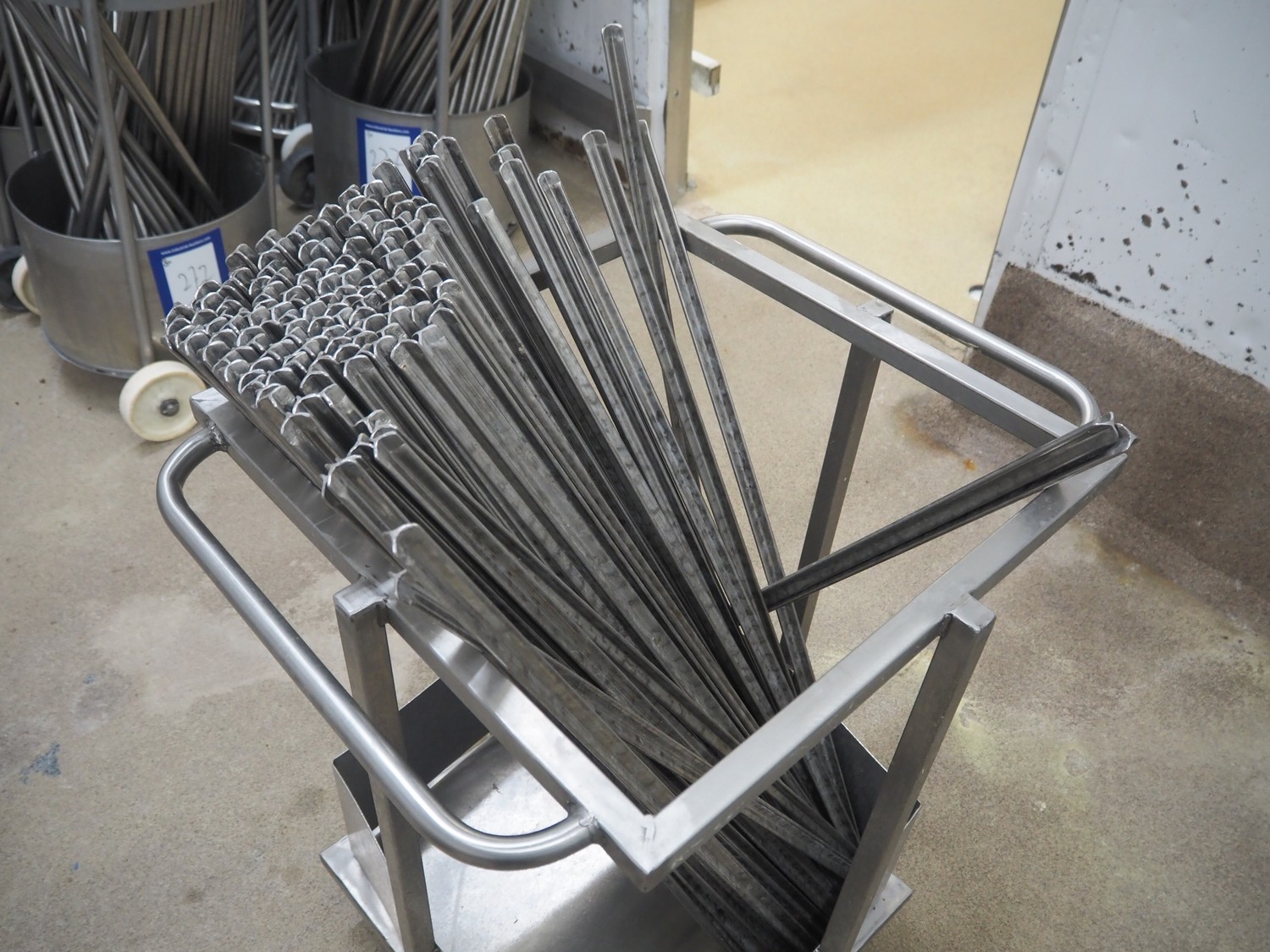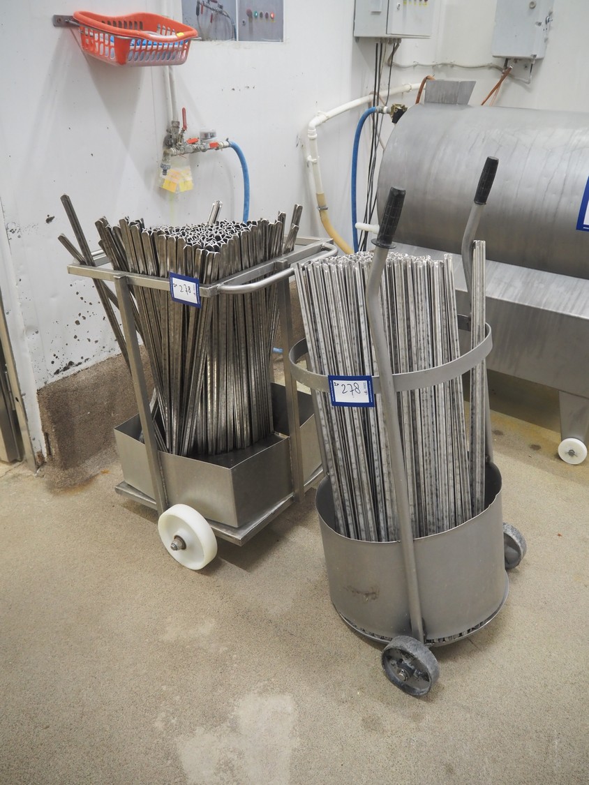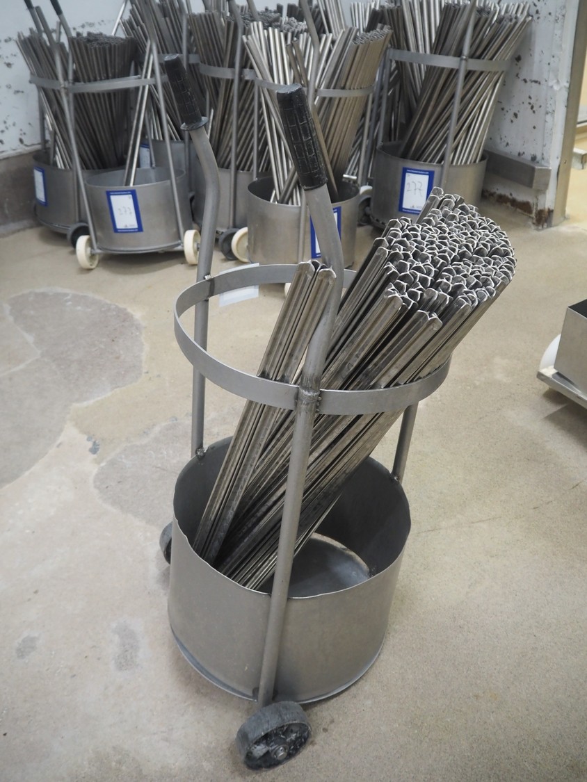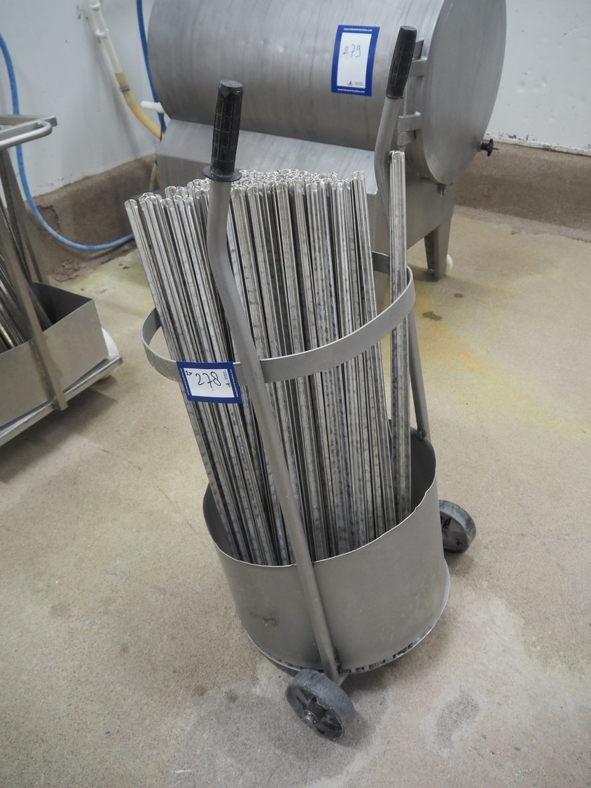 2 s/s trolleys with large amount of Y-shaped aluminium smoke sticks, length smoke sticks: 980 mm, dimensions trolleys: 550 mm x 540 mm x 1140 mm and 700 mm x 630 mm x 880 mm.
