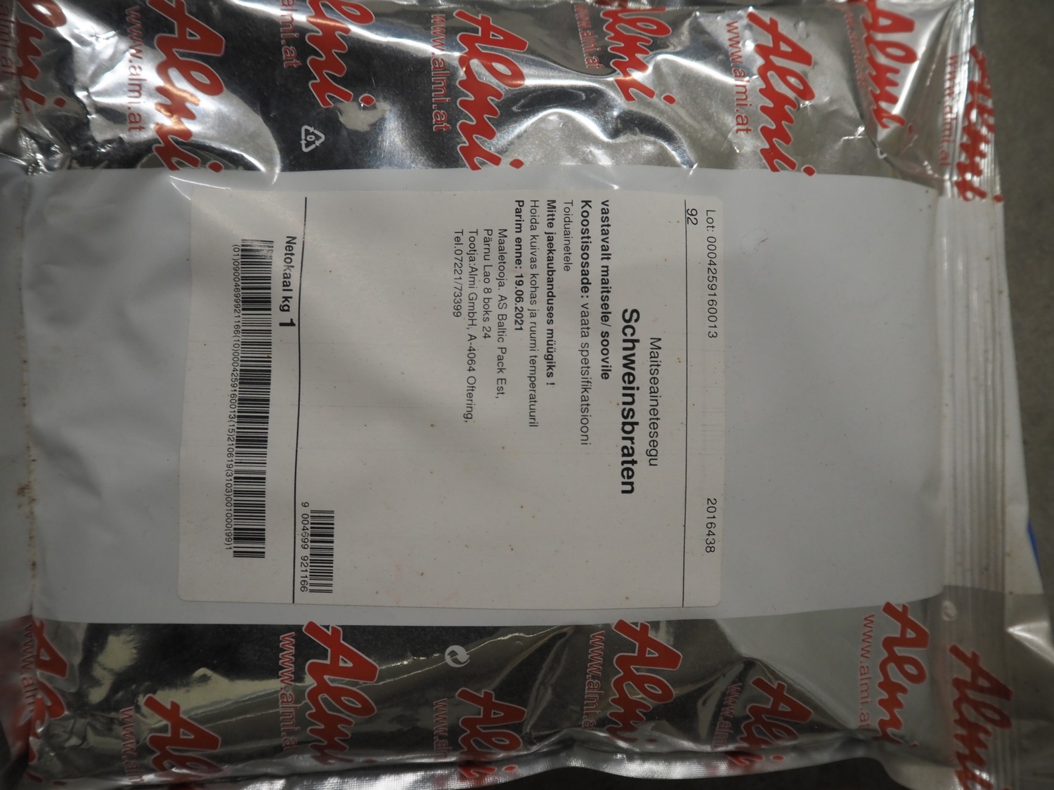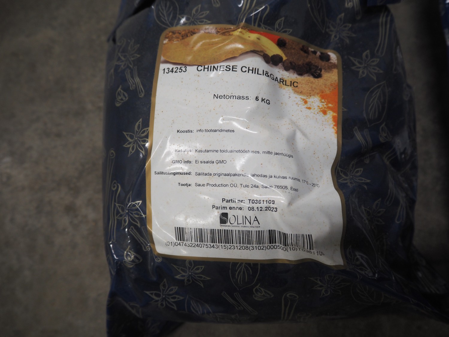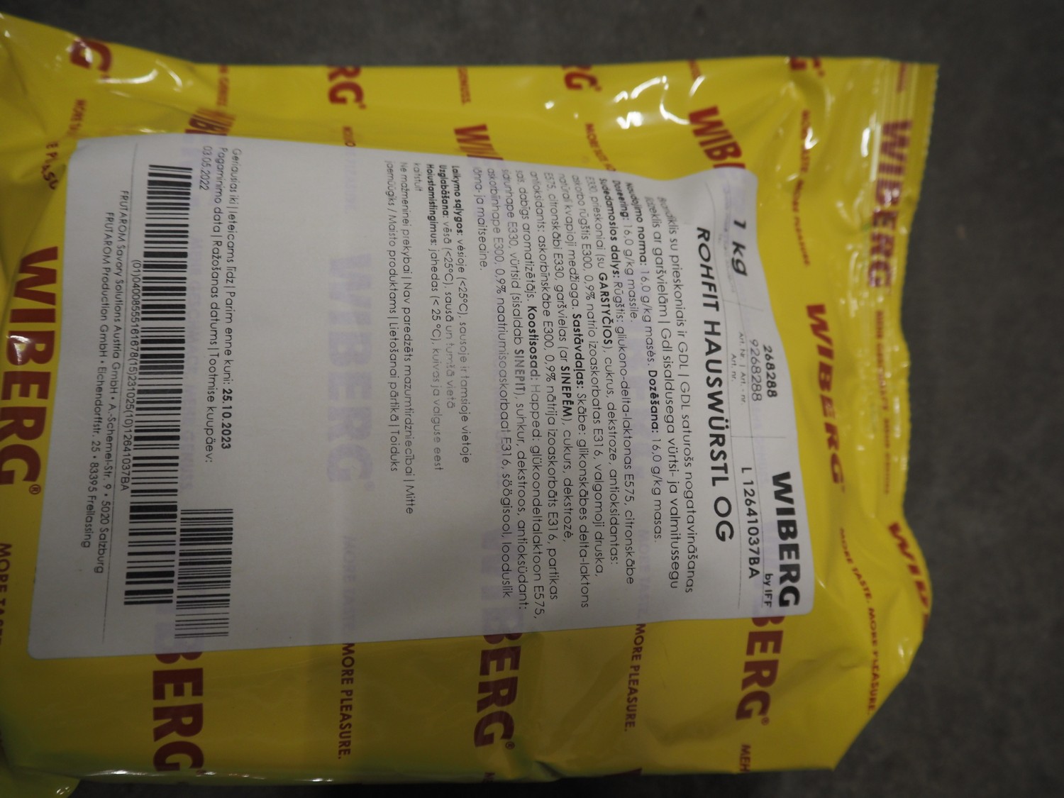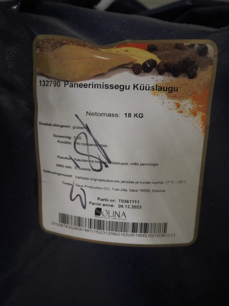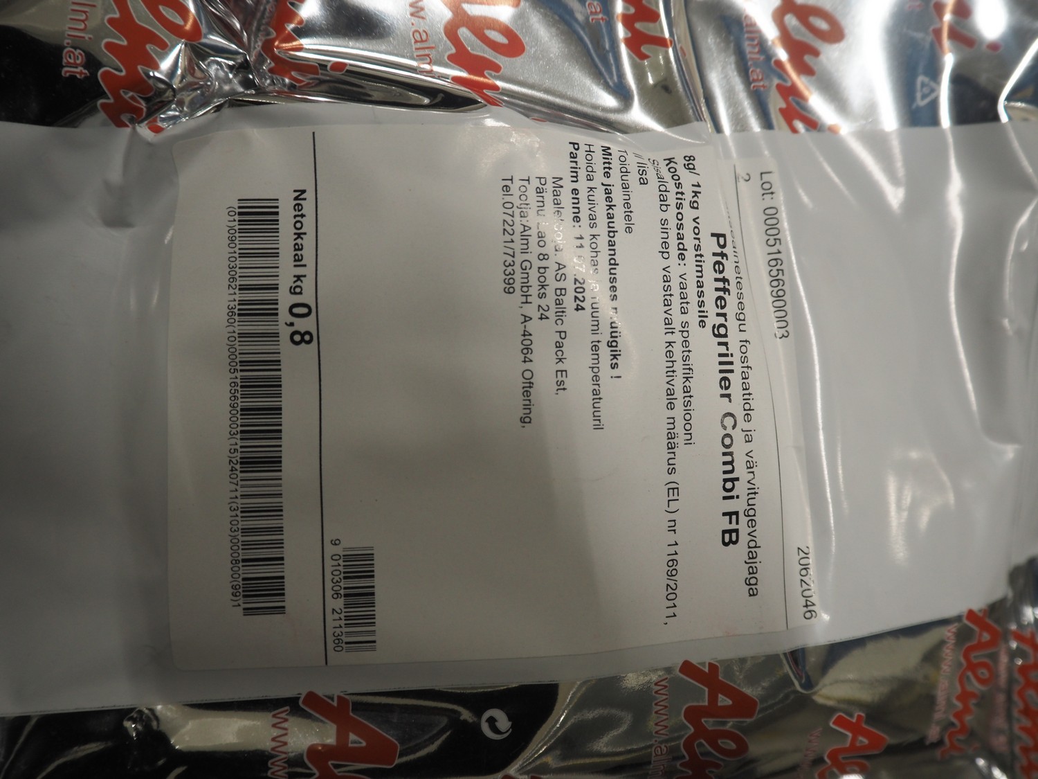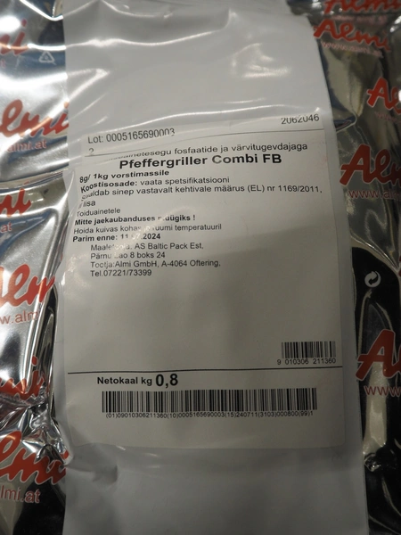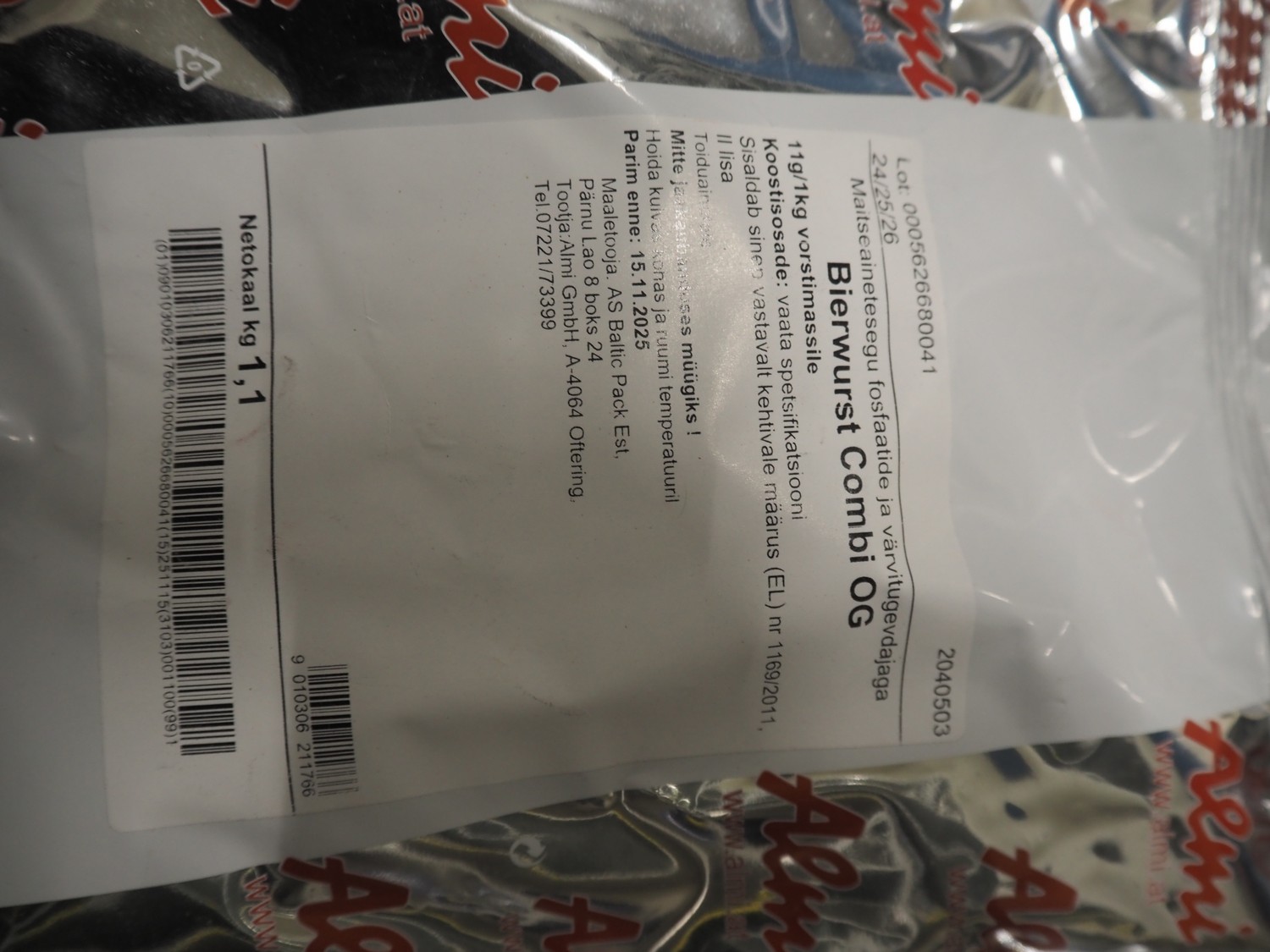 4 racks with large amount of spices, among others: Tarimix cooked salami, Bauernbratwurst I, Chinese Chili&Garlic, Juustuvorstimaiseanie Combi, Lihatarrendimaitseaine, Rohfit Hauswürstl OG, Mailänder Salami Fein FB, Spiceblend "Doktori", Mustriga Jogurtimarinaad, mustard seed, Bierwurst Combi OG, Pfeffergriller Combi OG, Dekoor, Schaschlik Combi, dimensions racks: 3040 mm x 600 mm x 2100 mm, 3100 mm x 600 mm x 2100 mm, 4050 mm x 600 mm x 2100 mm and 2040 mm x 600 mm x 2100 mm.