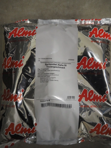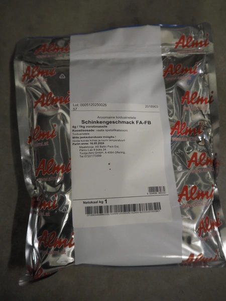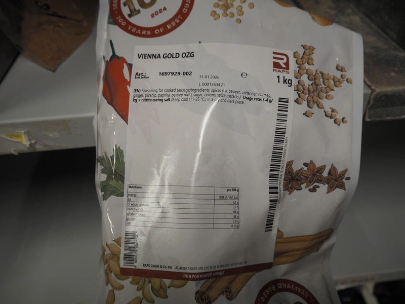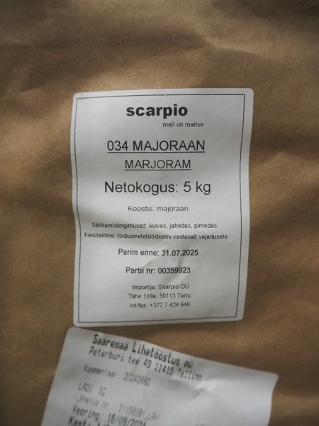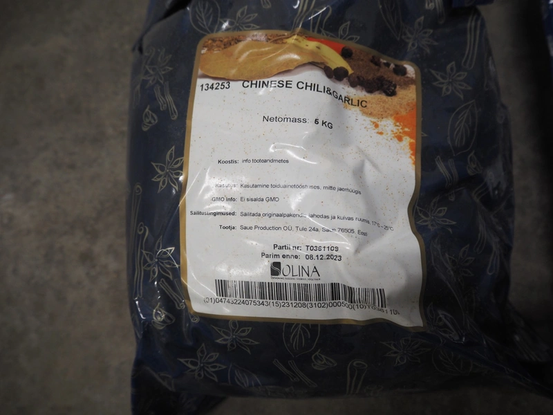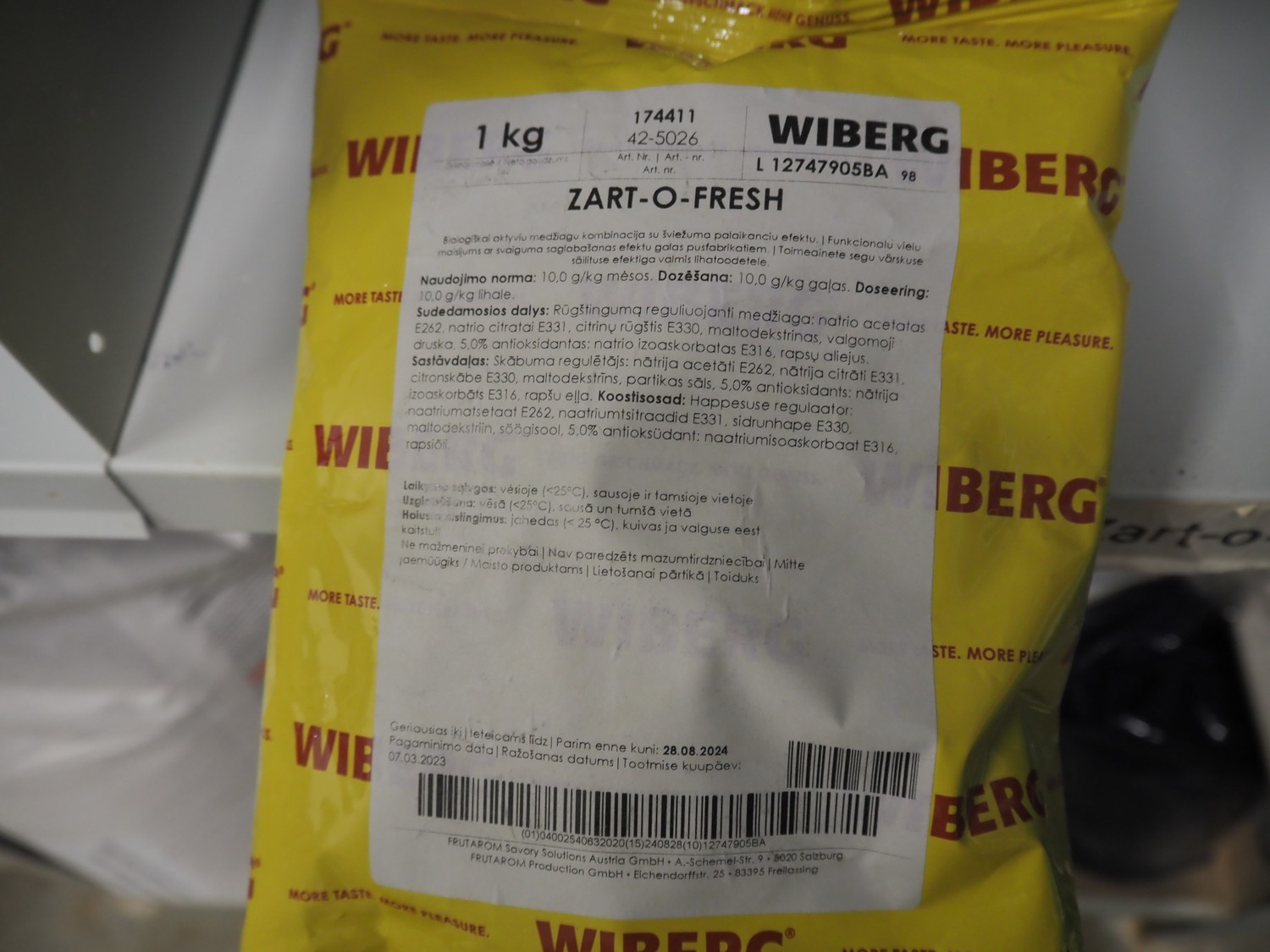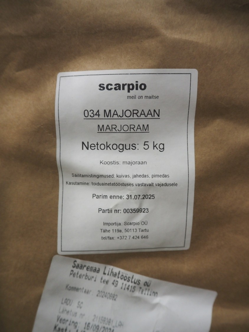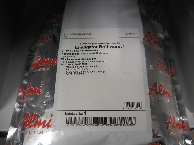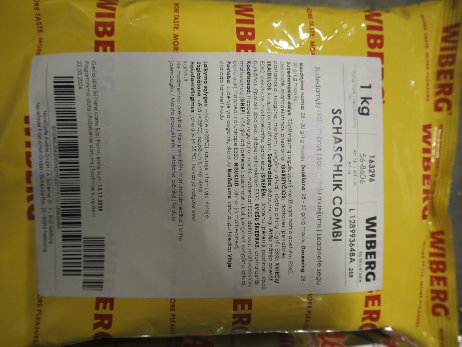 4 racks with large amount of spices, among others: Tarimix cooked salami, Bauernbratwurst I, Chinese Chili&Garlic, Juustuvorstimaiseanie Combi, Lihatarrendimaitseaine, Rohfit Hauswürstl OG, Mailänder Salami Fein FB, Spiceblend "Doktori", Mustriga Jogurtimarinaad, mustard seed, Bierwurst Combi OG, Pfeffergriller Combi OG, Dekoor, Schaschlik Combi, dimensions racks: 3040 mm x 600 mm x 2100 mm, 3100 mm x 600 mm x 2100 mm, 4050 mm x 600 mm x 2100 mm and 2040 mm x 600 mm x 2100 mm.