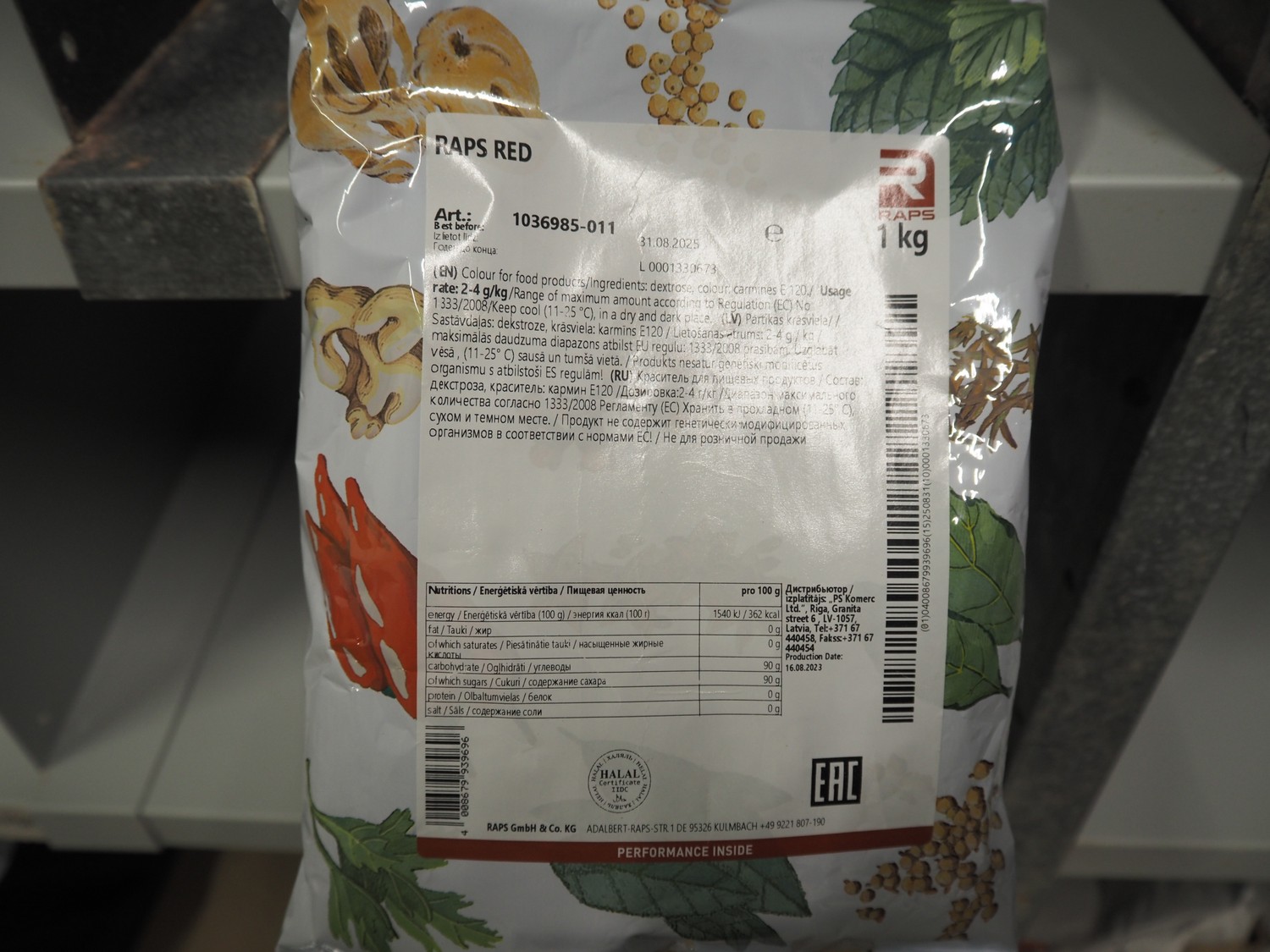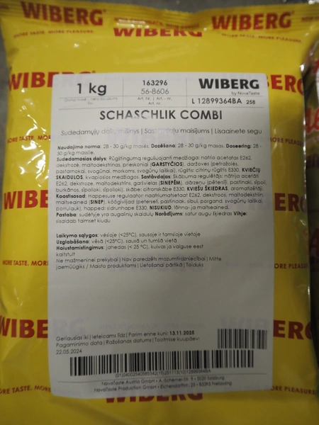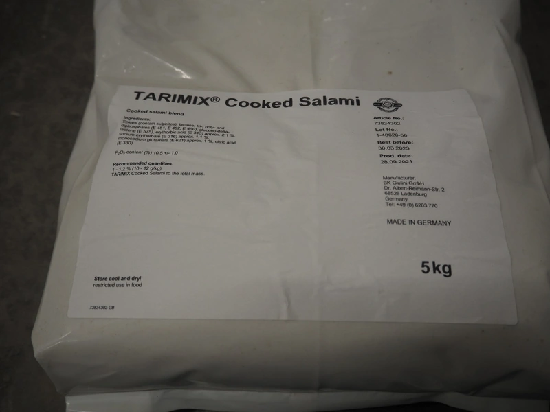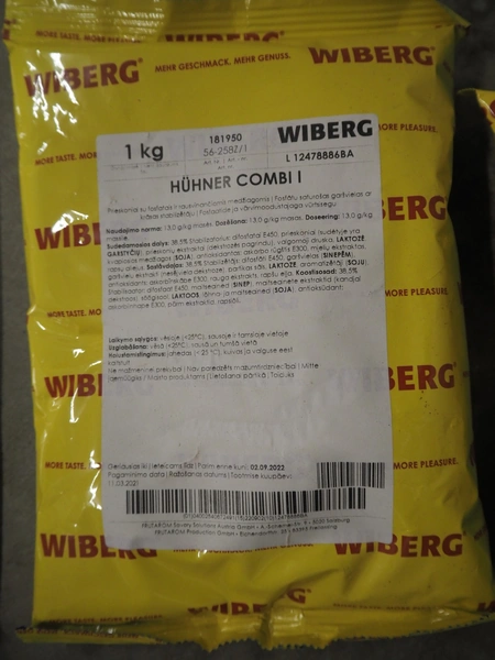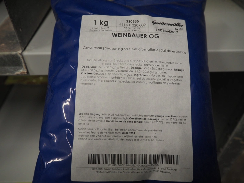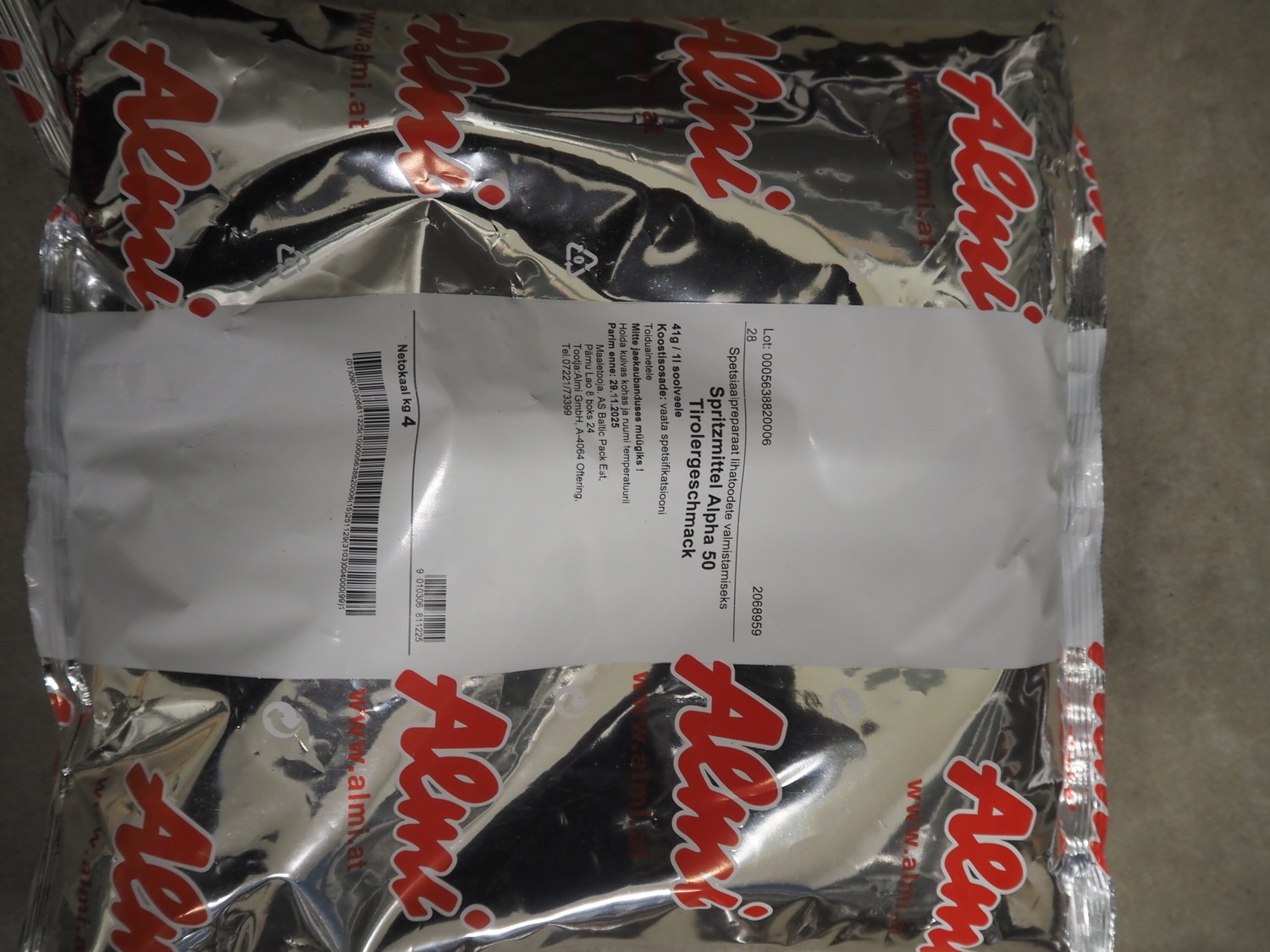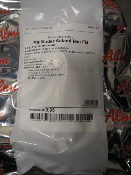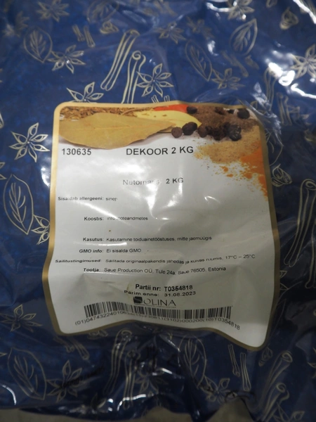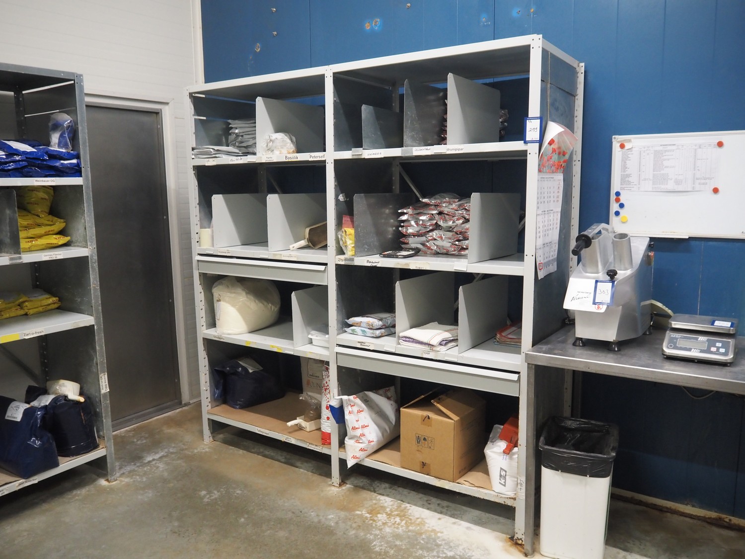 4 racks with large amount of spices, among others: Tarimix cooked salami, Bauernbratwurst I, Chinese Chili&Garlic, Juustuvorstimaiseanie Combi, Lihatarrendimaitseaine, Rohfit Hauswürstl OG, Mailänder Salami Fein FB, Spiceblend "Doktori", Mustriga Jogurtimarinaad, mustard seed, Bierwurst Combi OG, Pfeffergriller Combi OG, Dekoor, Schaschlik Combi, dimensions racks: 3040 mm x 600 mm x 2100 mm, 3100 mm x 600 mm x 2100 mm, 4050 mm x 600 mm x 2100 mm and 2040 mm x 600 mm x 2100 mm.