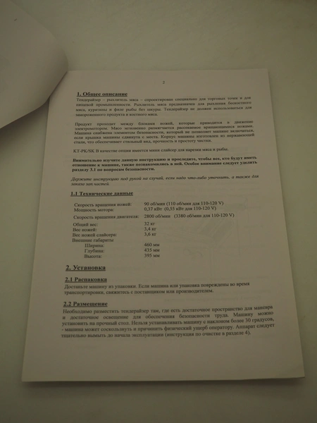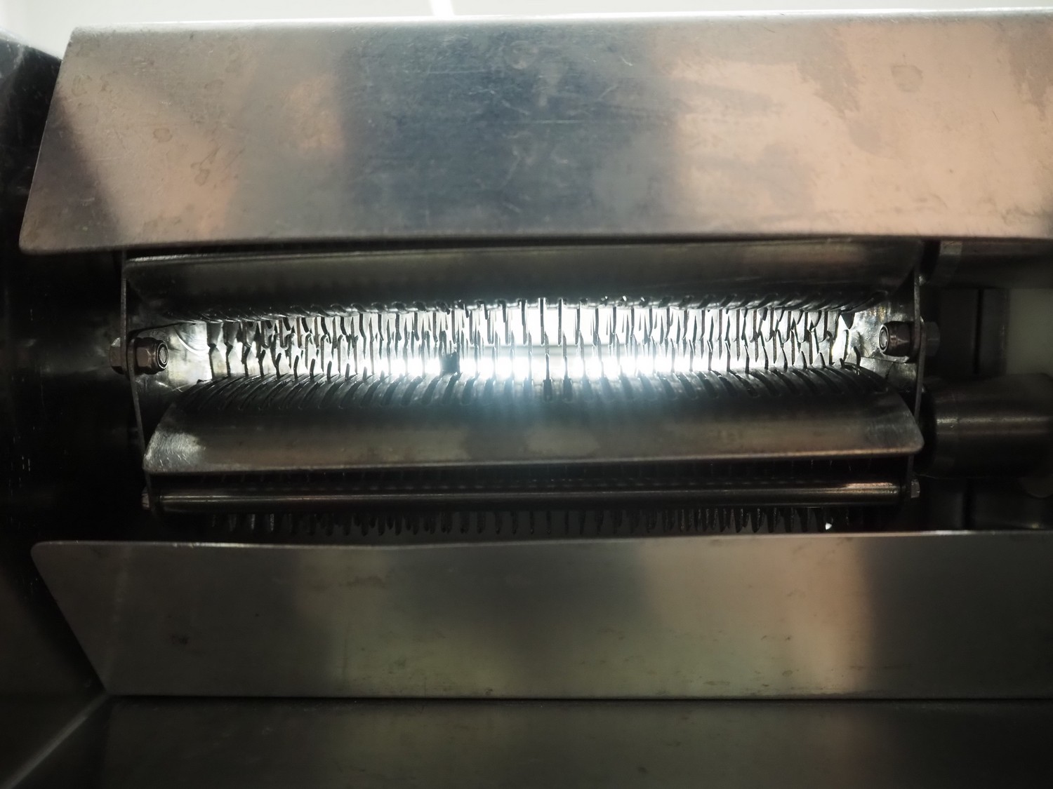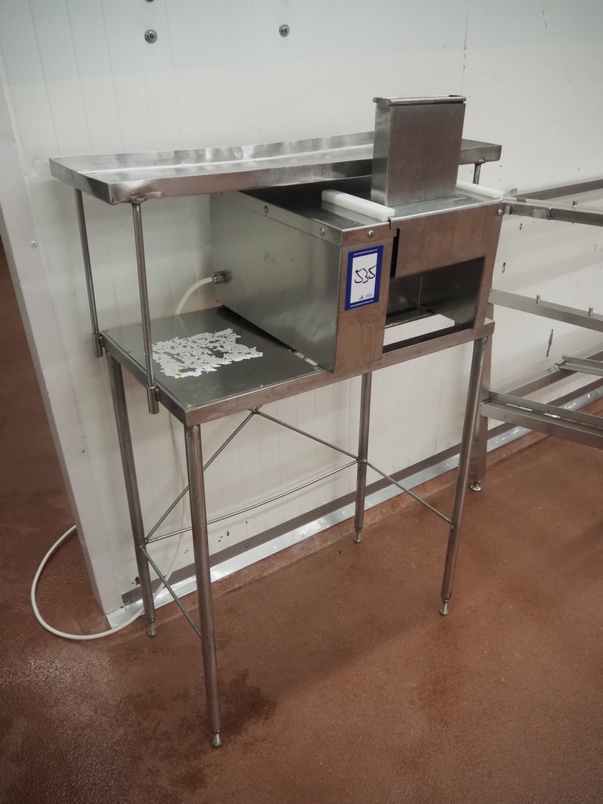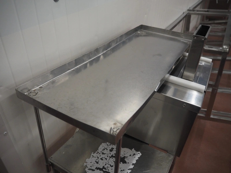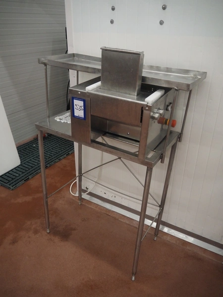 S/s table with Koneteollisuus OY tenderizer, type: KT-PK, clearance: 170 mm x 30 mm, total dimensions: 800 mm x 450 mm x 1300 mm.