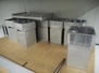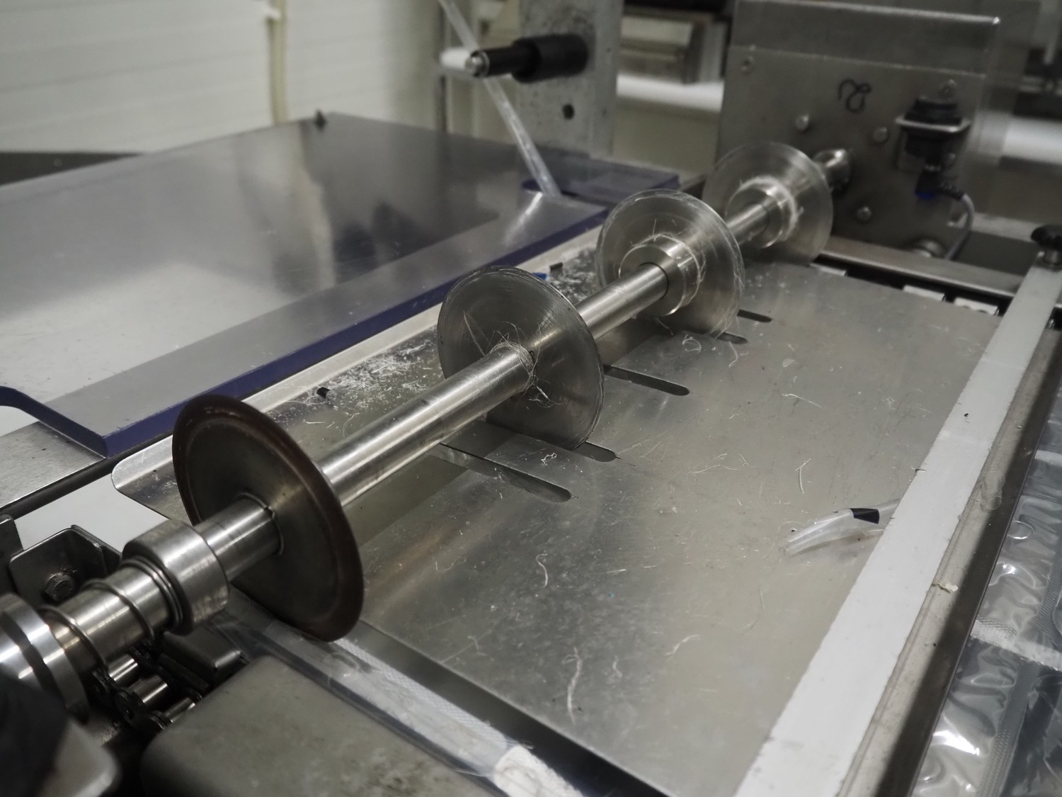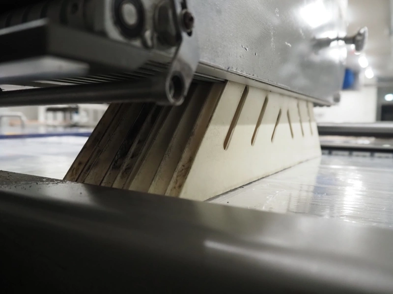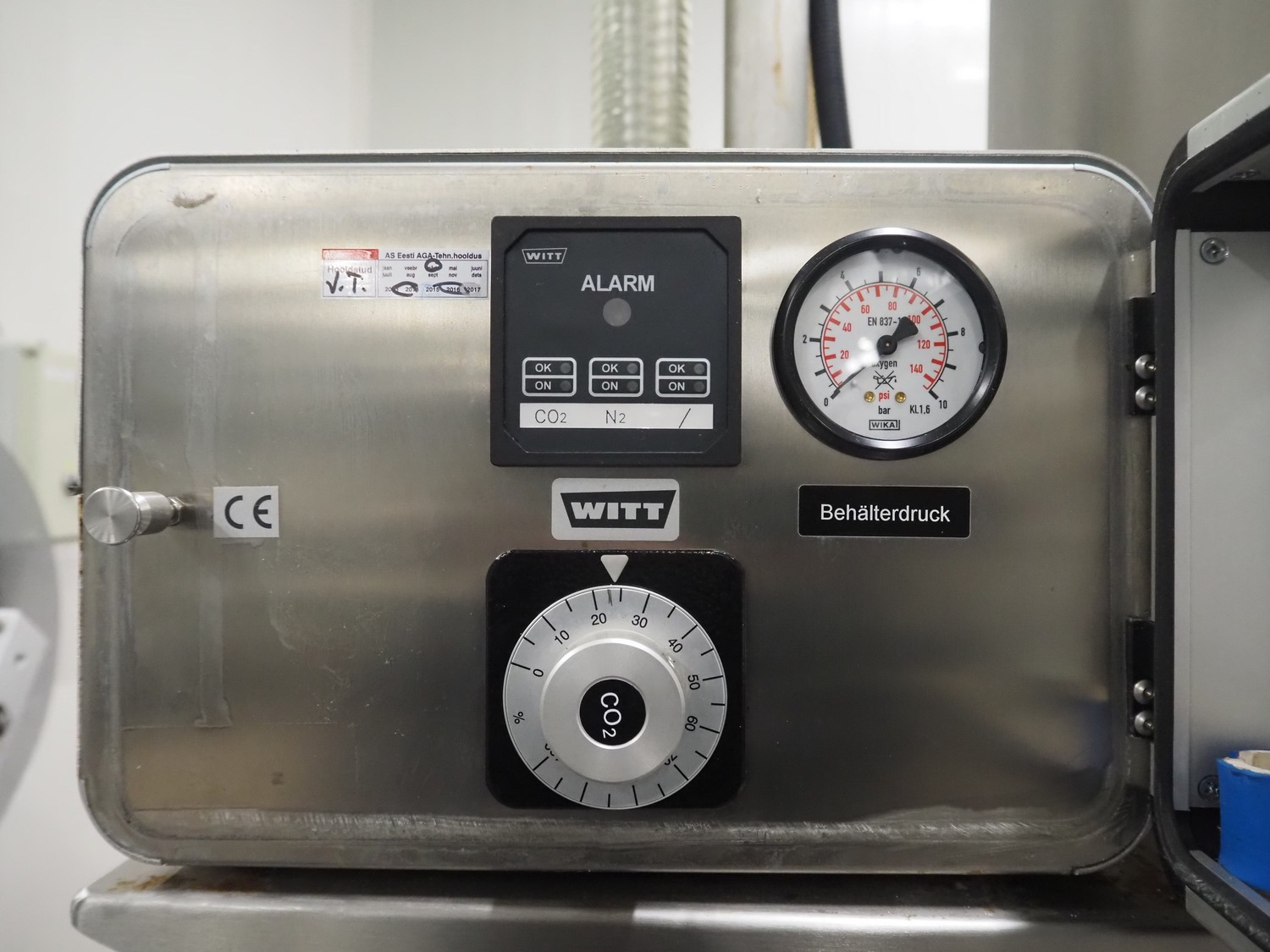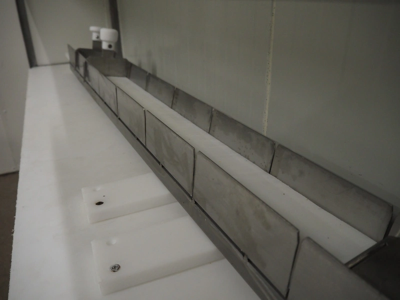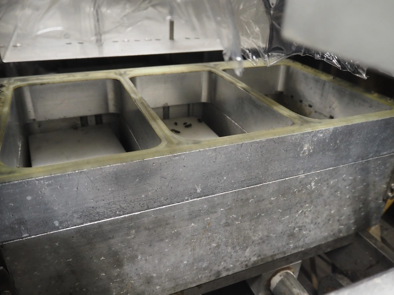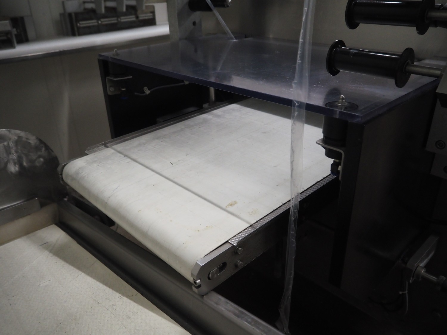 Webomatic thermoformer, type: APS ML-7100, serial number: C 6513LD189, 400 V, 3 Ph, 50 Hz, 37.8 A, 24.5 kW, film width: (bottom) 462 mm and (top) 456 mm, dye: (3x) 220 mm x 130 mm, ELS label unit, Witt gas mixing station, with Busch vacuum pump, plastic outfeed belt, belt width: 400 mm, total dimensions: 7350 mm x 1450 mm x 1950 mm. Including 2 s/s racks with parts, dimensions dye: (8x) Ø 95 mm, dimensions racks: 1800 mm x 400 mm x 1970 mm and 1500 mm x 300 mm x 1590 mm.