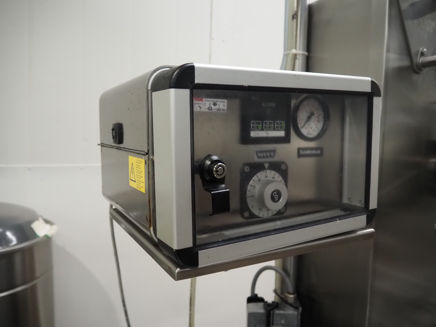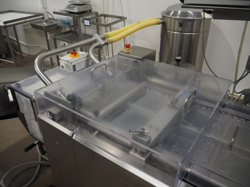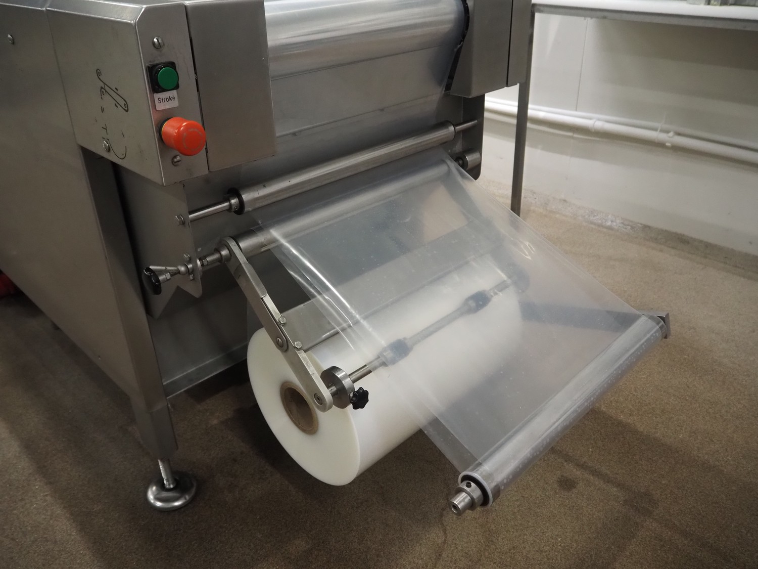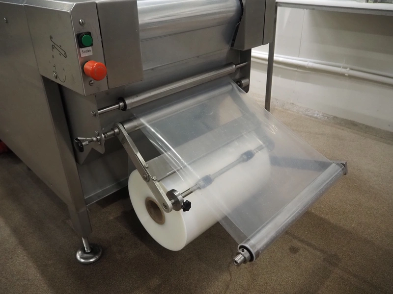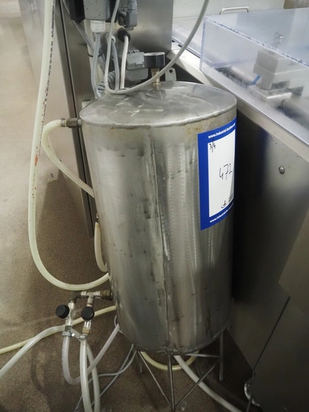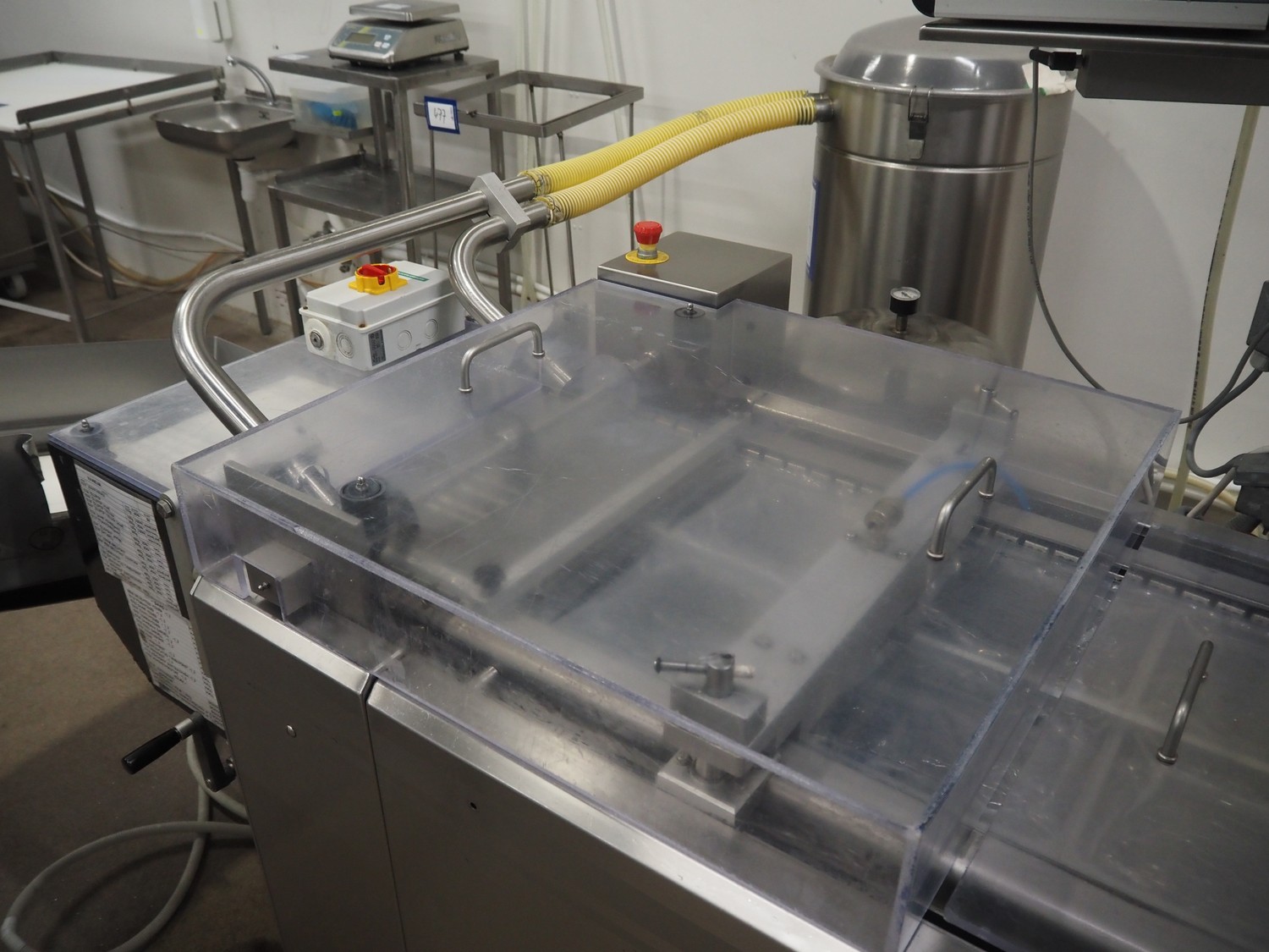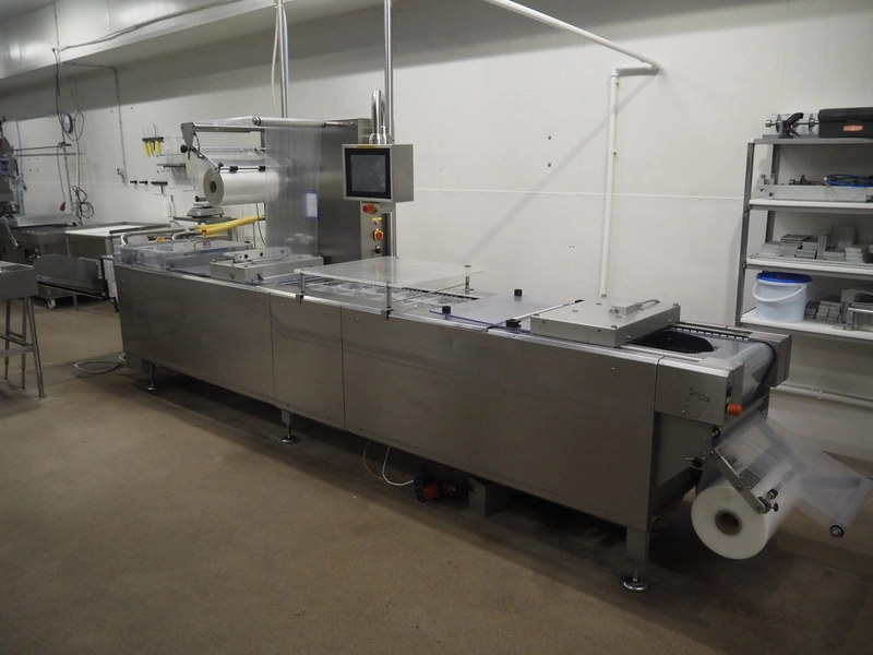 Webomatic thermoformer, model: APS ML 4600, machine number: B 6513LK241, 400 V, 3 Ph, 50 Hz, 15.0 A, 10.0 kW, film width: (bottom) 420 mm and (top) 416 mm, dimensions dye: 227 mm x 175 mm, plastic outfeed belt, belt width: 355 mm, Witt-Gasetechnik gas mixing station, total dimensions: 5400 mm x 1080 mm x 2100 mm. Including Busch suction device for rest film, dimensions Busch: Ø 470 mm x 1120 mm and S/s rack with dye's and parts, dimensions dye's: (5x) 205 mm x 60 mm and (3x) 205 mm x 110 mm, dimensions rack: 1100 mm x 400 mm x 1700 mm.