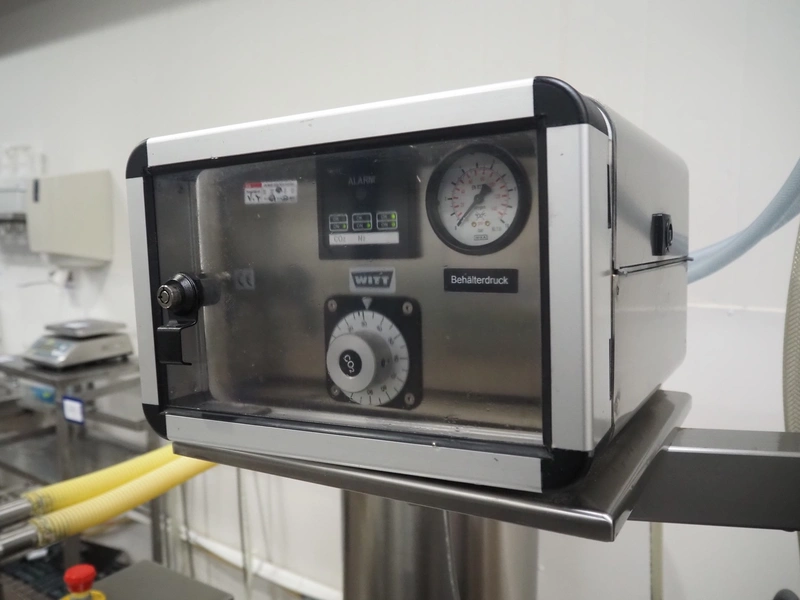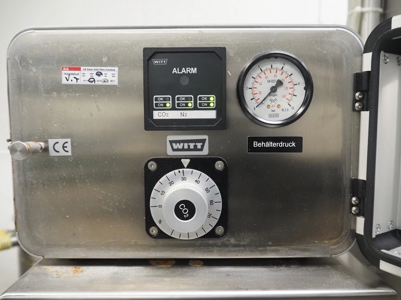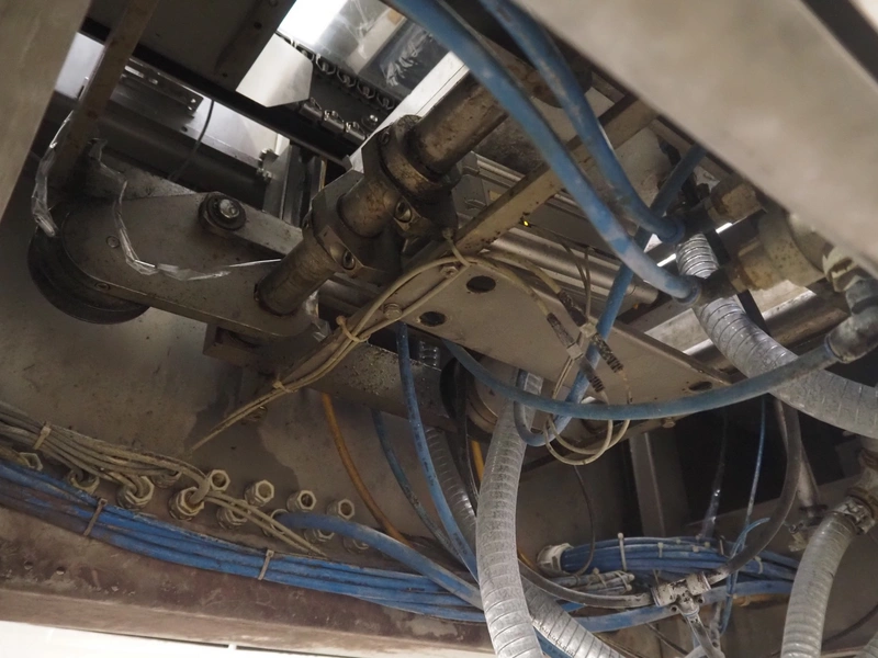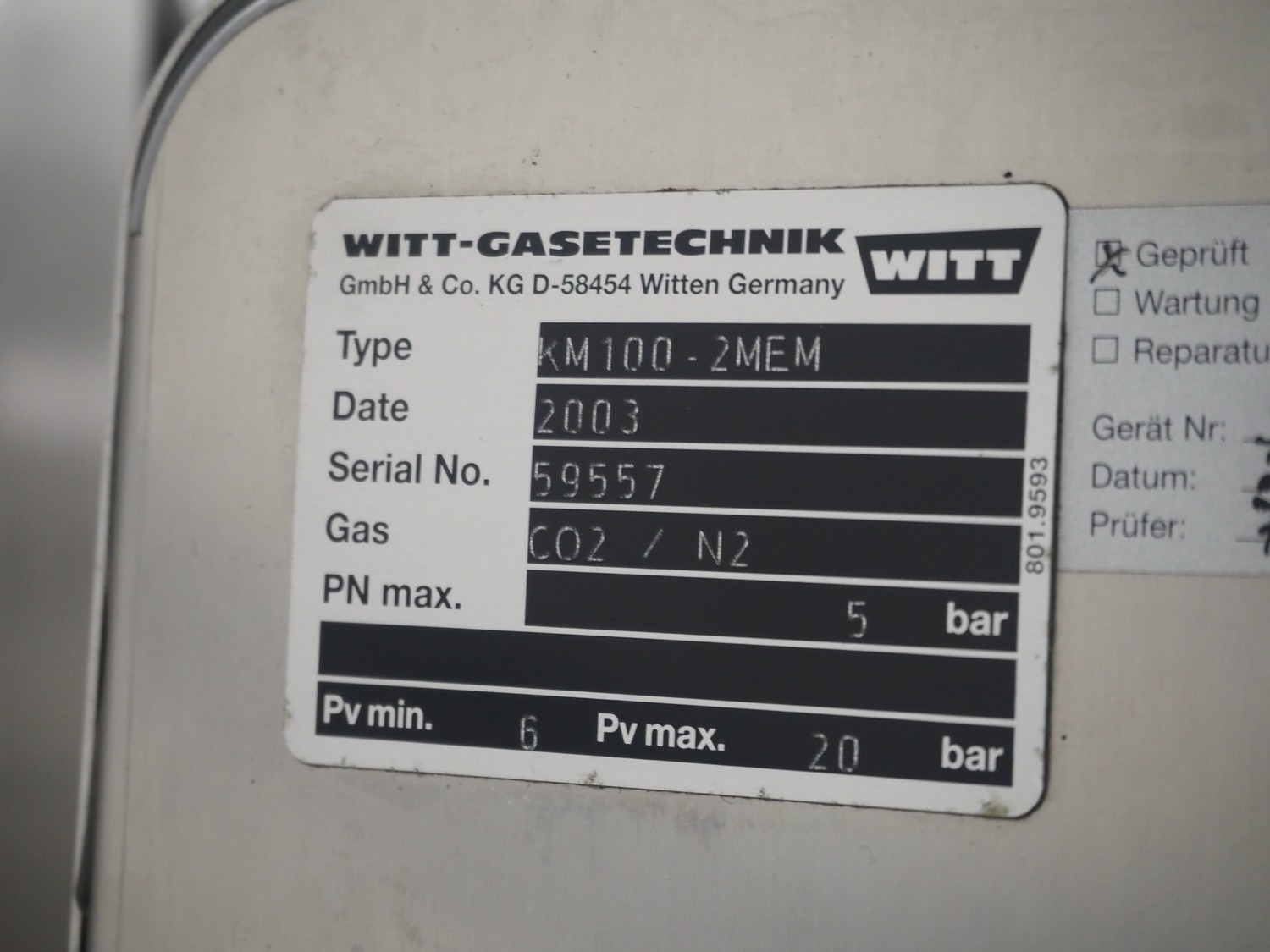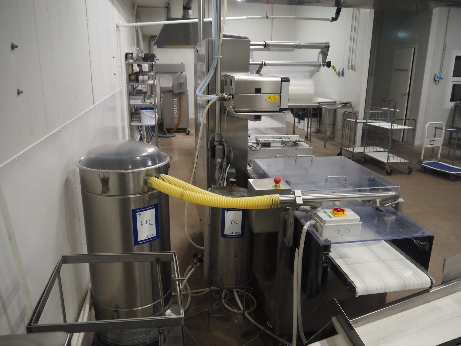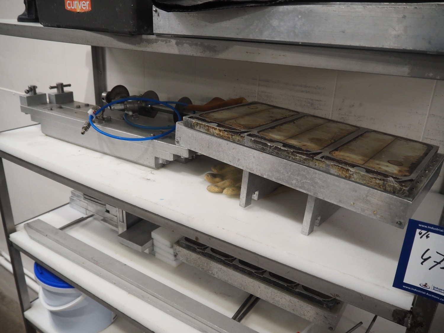 Webomatic thermoformer, model: APS ML 4600, machine number: B 6513LK241, 400 V, 3 Ph, 50 Hz, 15.0 A, 10.0 kW, film width: (bottom) 420 mm and (top) 416 mm, dimensions dye: 227 mm x 175 mm, plastic outfeed belt, belt width: 355 mm, Witt-Gasetechnik gas mixing station, total dimensions: 5400 mm x 1080 mm x 2100 mm. Including Busch suction device for rest film, dimensions Busch: Ø 470 mm x 1120 mm and S/s rack with dye's and parts, dimensions dye's: (5x) 205 mm x 60 mm and (3x) 205 mm x 110 mm, dimensions rack: 1100 mm x 400 mm x 1700 mm.