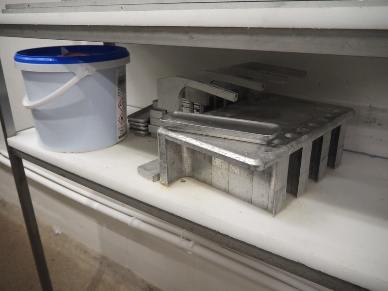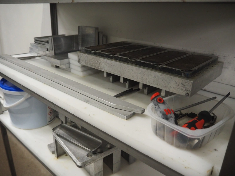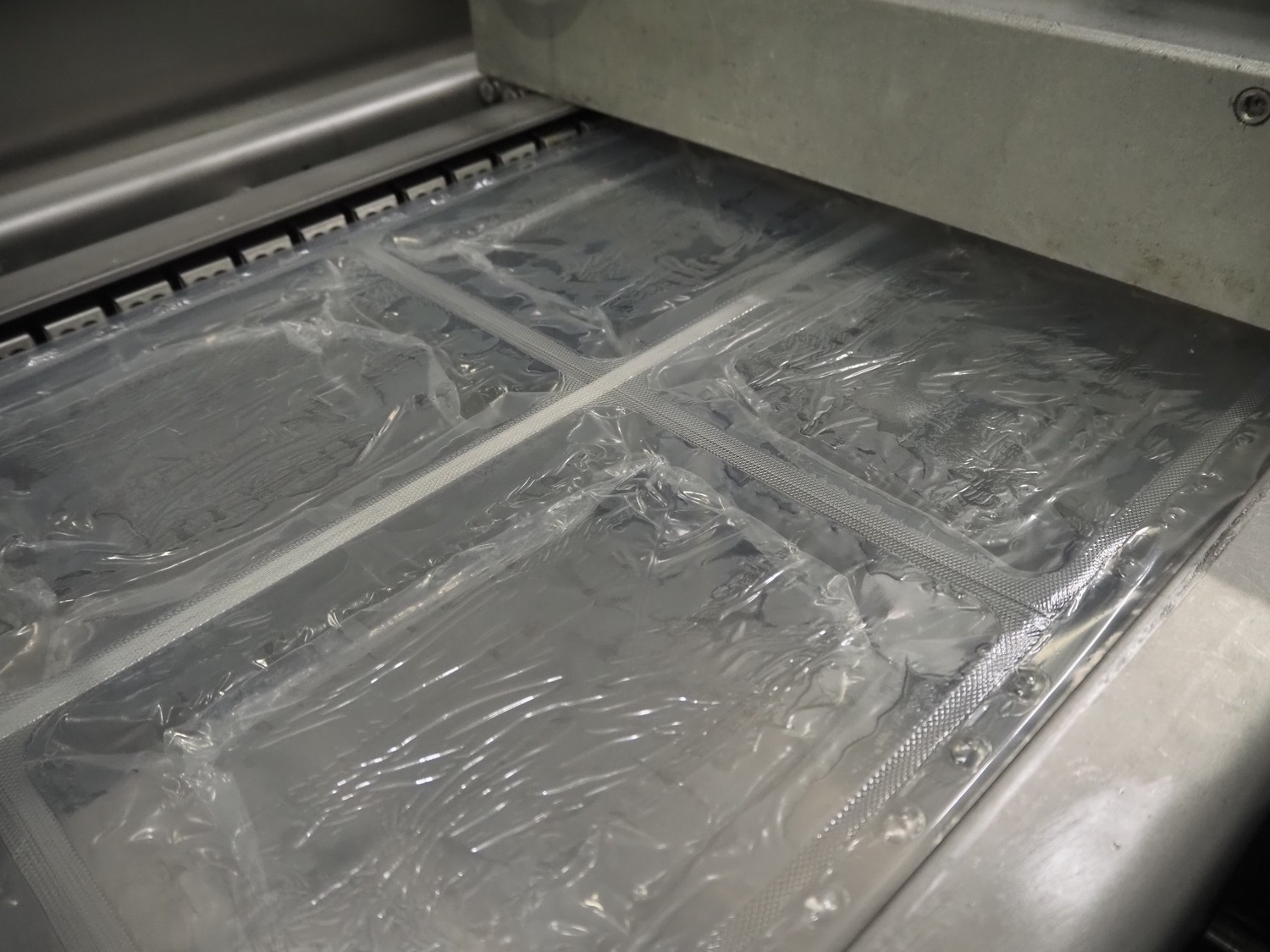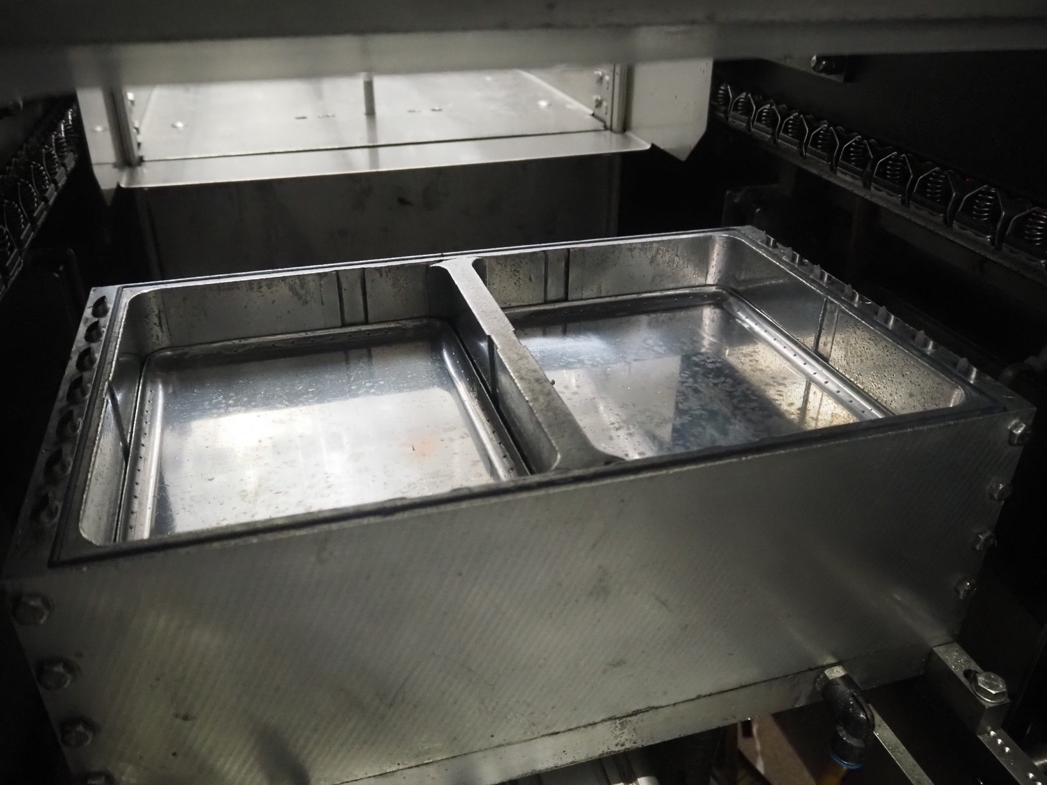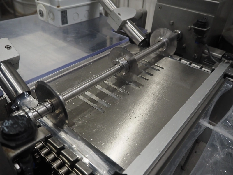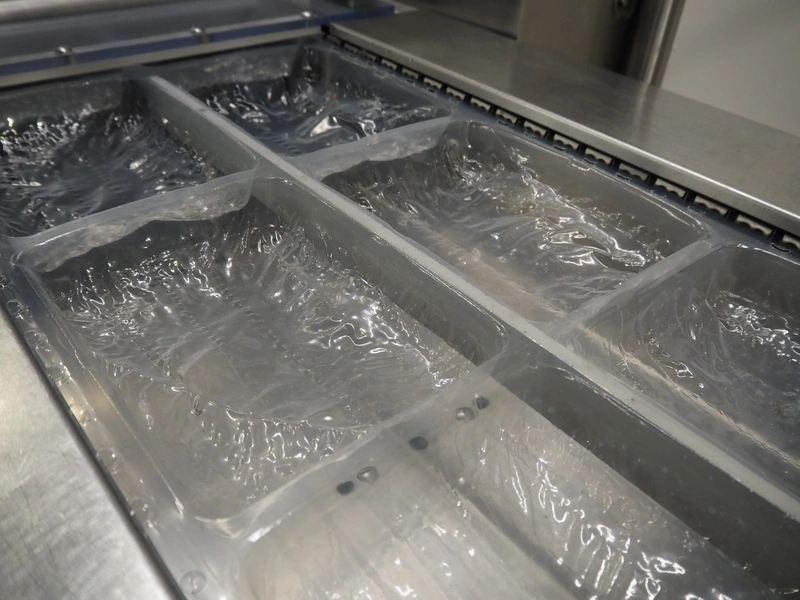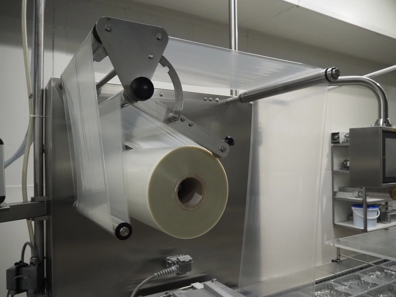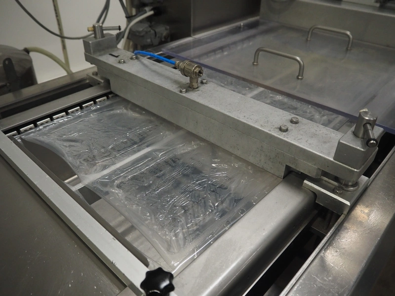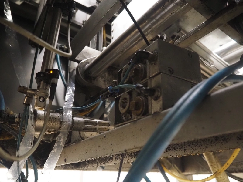 Webomatic thermoformer, model: APS ML 4600, machine number: B 6513LK241, 400 V, 3 Ph, 50 Hz, 15.0 A, 10.0 kW, film width: (bottom) 420 mm and (top) 416 mm, dimensions dye: 227 mm x 175 mm, plastic outfeed belt, belt width: 355 mm, Witt-Gasetechnik gas mixing station, total dimensions: 5400 mm x 1080 mm x 2100 mm. Including Busch suction device for rest film, dimensions Busch: Ø 470 mm x 1120 mm and S/s rack with dye's and parts, dimensions dye's: (5x) 205 mm x 60 mm and (3x) 205 mm x 110 mm, dimensions rack: 1100 mm x 400 mm x 1700 mm.