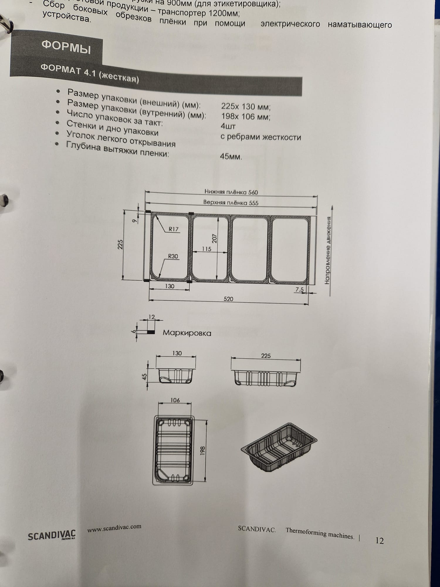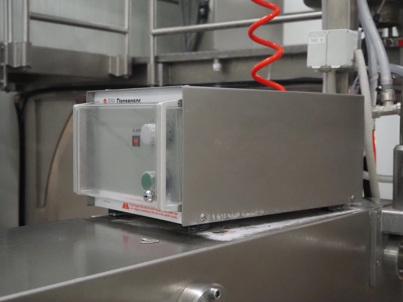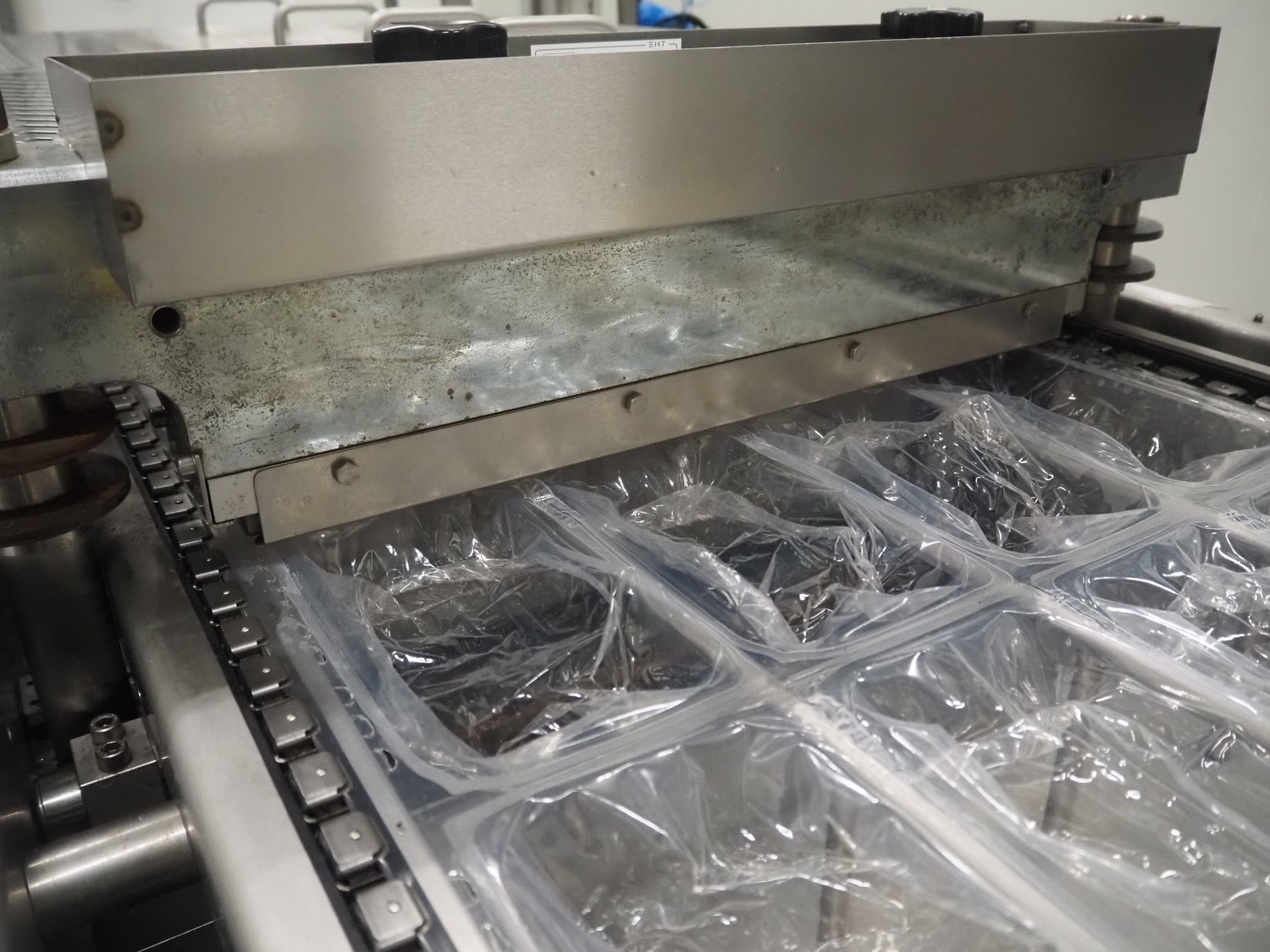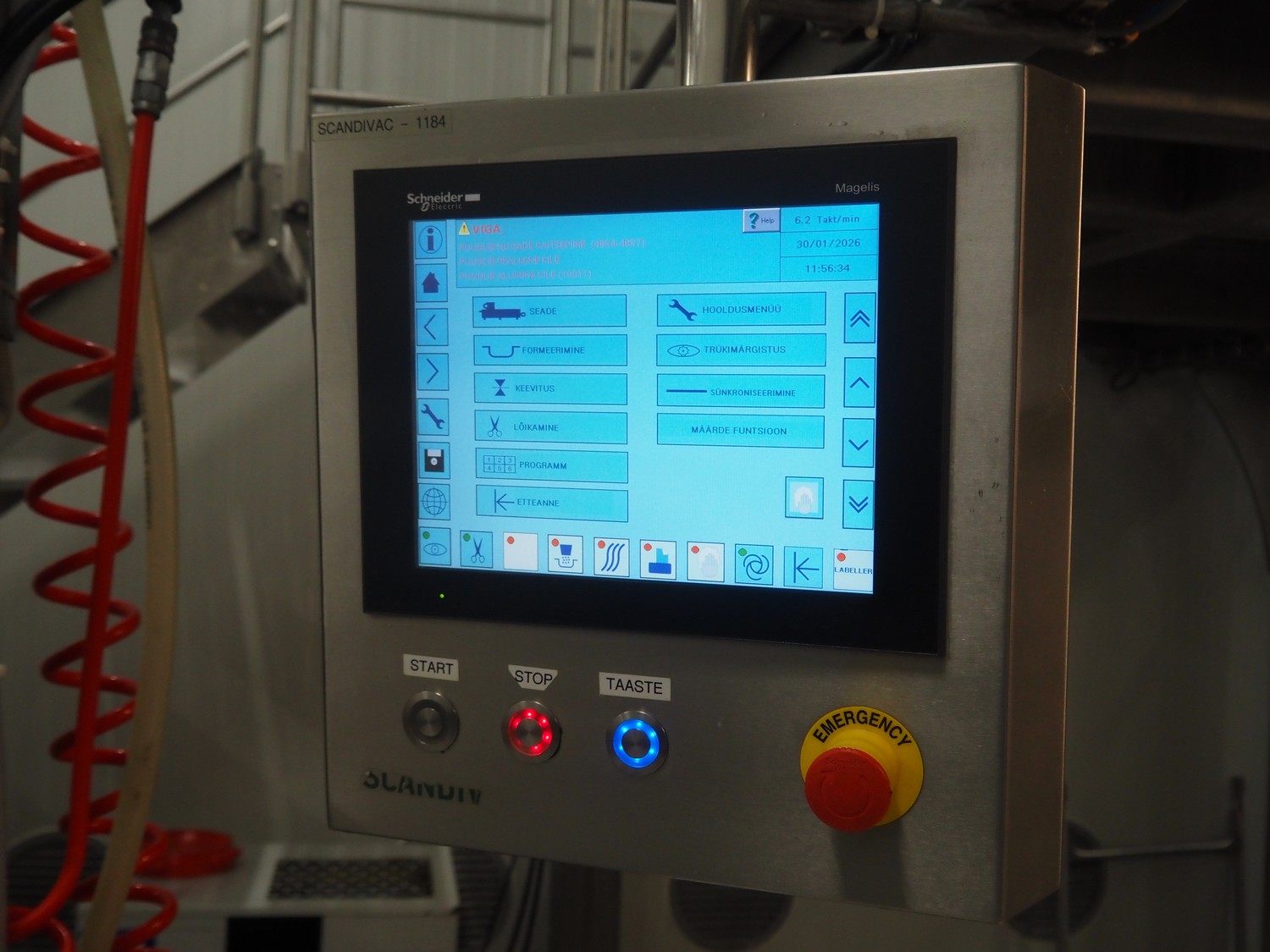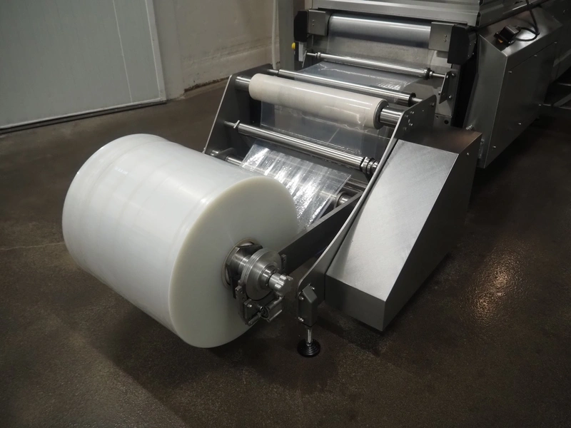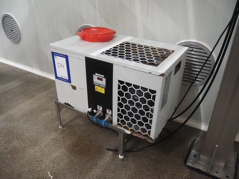 Scandivac thermoformer, type: APM8000, machine number: 19 S0077, year of construction: 2019, 400 V, 3 Ph, 50 Hz, 12-16 kW, 32 A, bottom film width: 560 mm, film width top film: 555 mm, dye: (4x) 198 mm x 106 mm, total dimensions thermoformer: 8700 mm x 1200 mm x 1900 mm, including Procon film unwinder, dimensions: 1300 mm x 2000 mm x 700 mm, ELS-European Labelling Systems GmbH & Co. KG labeller, PBI gas mixer, s/s gas flush tank, dimensions: Ø 400 mm x 1100 mm, s/s rack with various spare parts, dimensions: 1150 mm x 400 mm x 1700 mm, ERS GmbH chiller, dimensions: 760 mm x 460 mm x 680 mm. Without main vacuum pump, vacuum was centrally regulated.