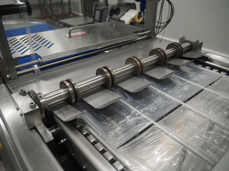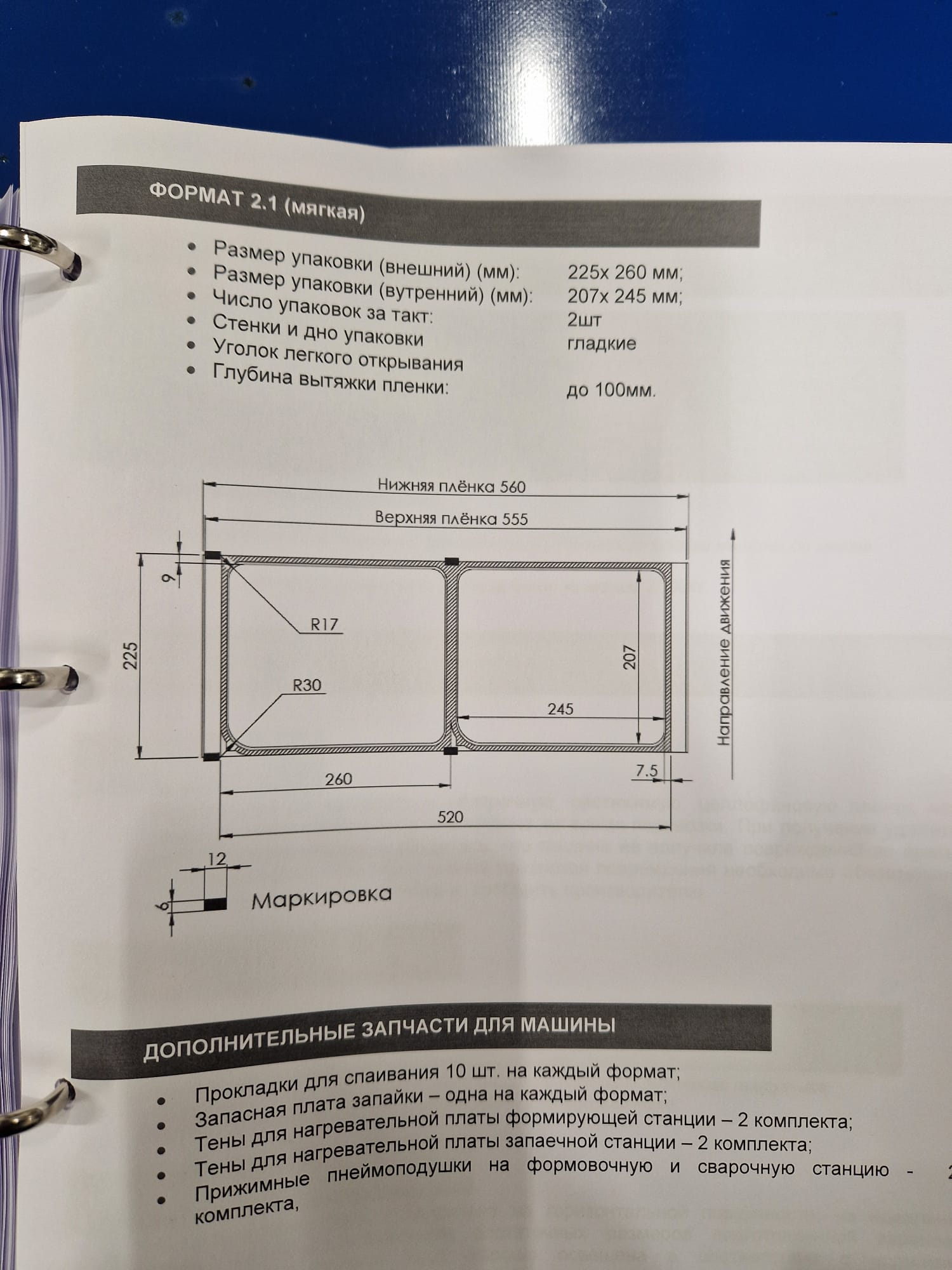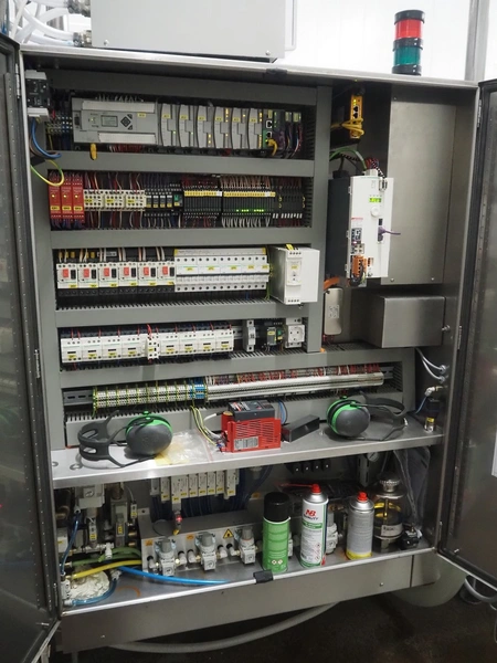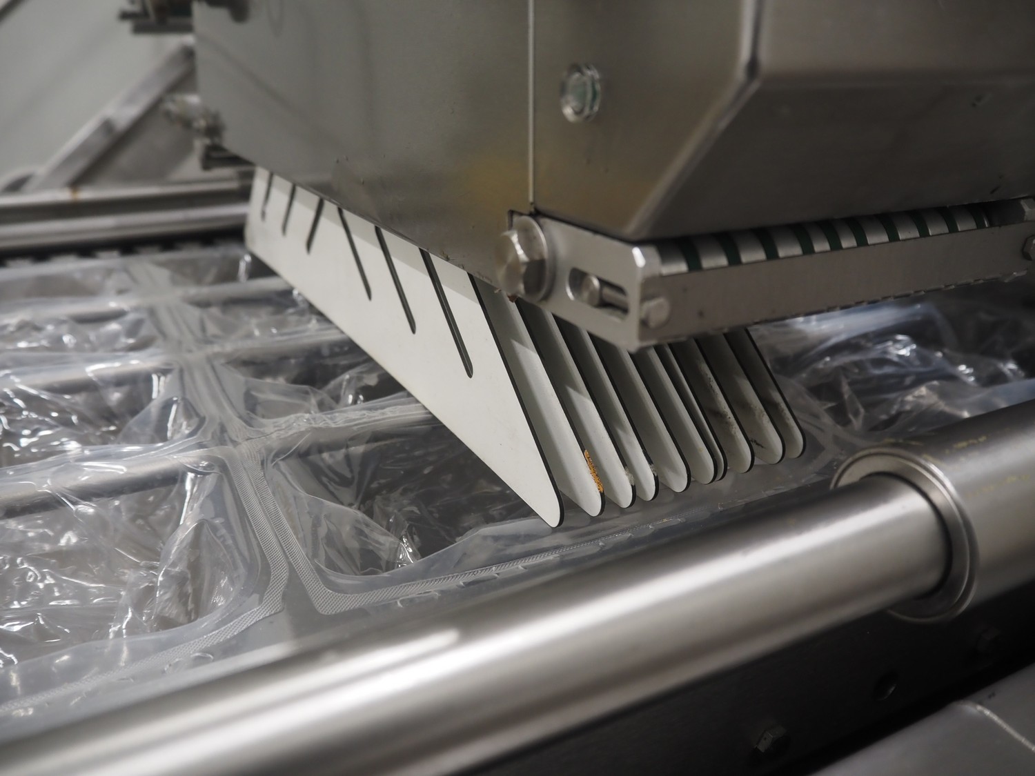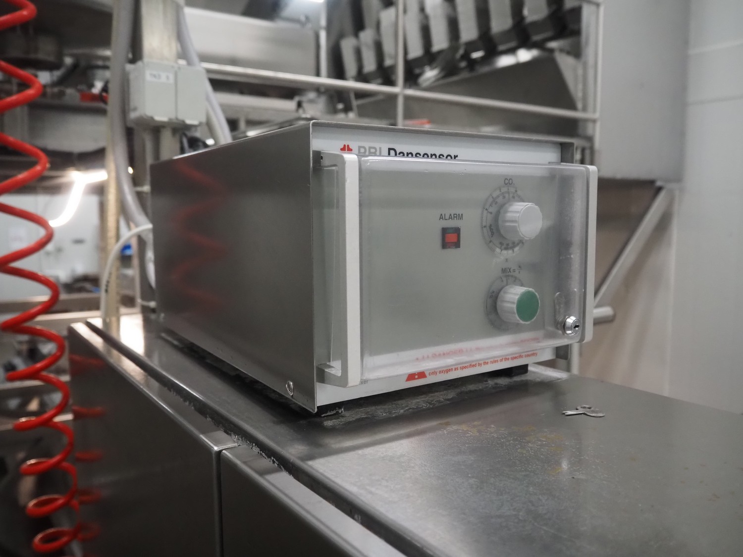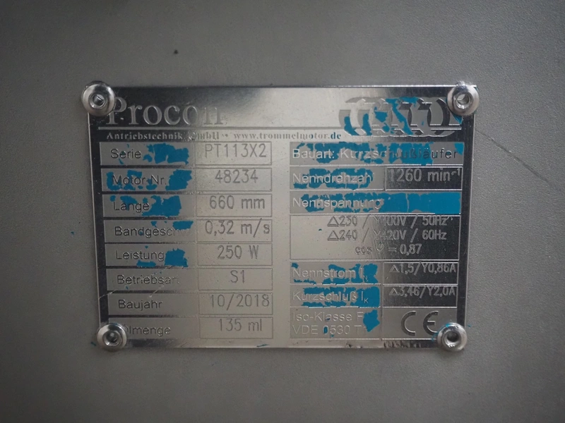 Scandivac thermoformer, type: APM8000, machine number: 19 S0077, year of construction: 2019, 400 V, 3 Ph, 50 Hz, 12-16 kW, 32 A, bottom film width: 560 mm, film width top film: 555 mm, dye: (4x) 198 mm x 106 mm, total dimensions thermoformer: 8700 mm x 1200 mm x 1900 mm, including Procon film unwinder, dimensions: 1300 mm x 2000 mm x 700 mm, ELS-European Labelling Systems GmbH & Co. KG labeller, PBI gas mixer, s/s gas flush tank, dimensions: Ø 400 mm x 1100 mm, s/s rack with various spare parts, dimensions: 1150 mm x 400 mm x 1700 mm, ERS GmbH chiller, dimensions: 760 mm x 460 mm x 680 mm. Without main vacuum pump, vacuum was centrally regulated.