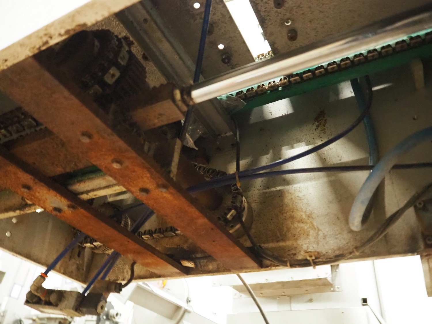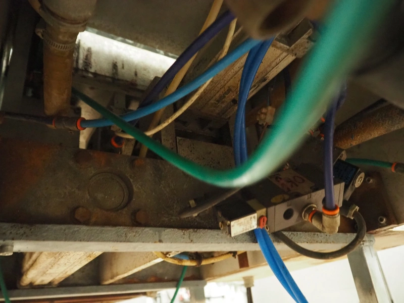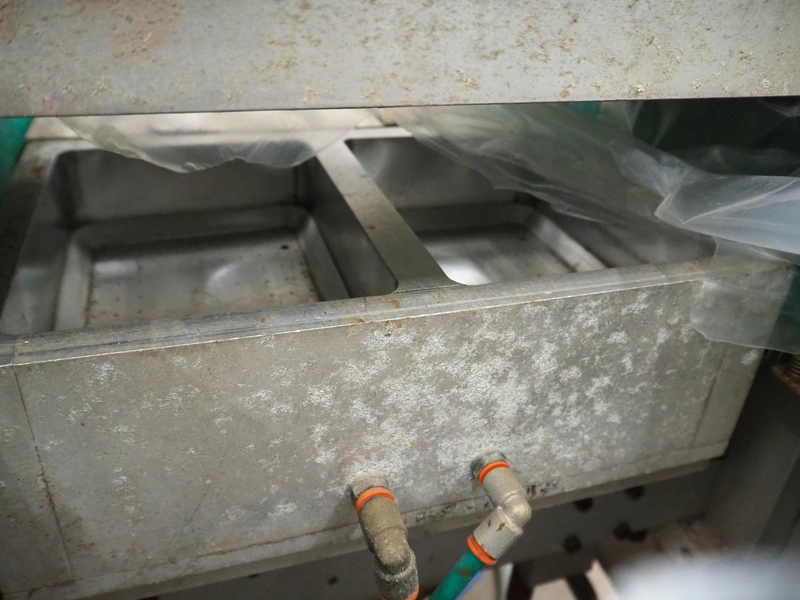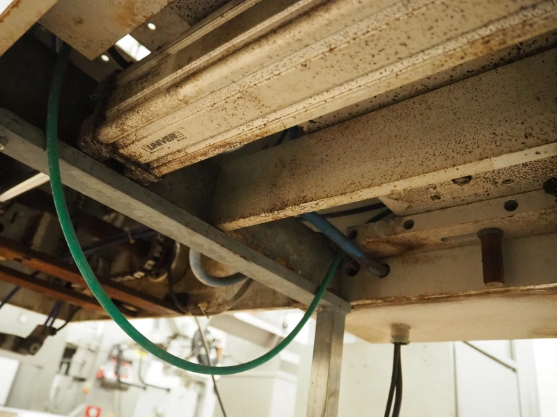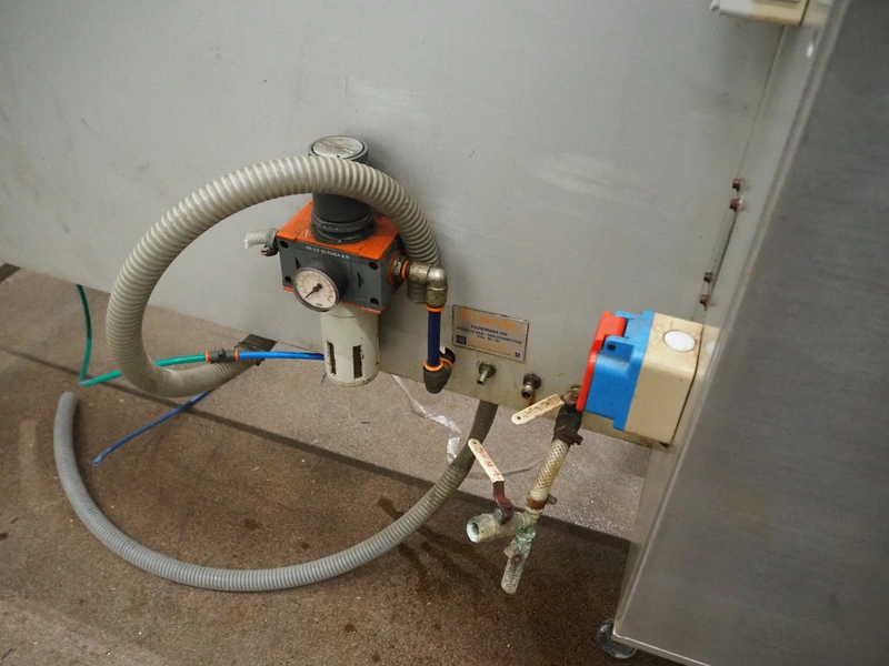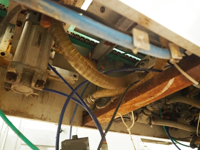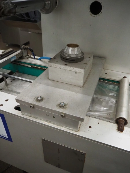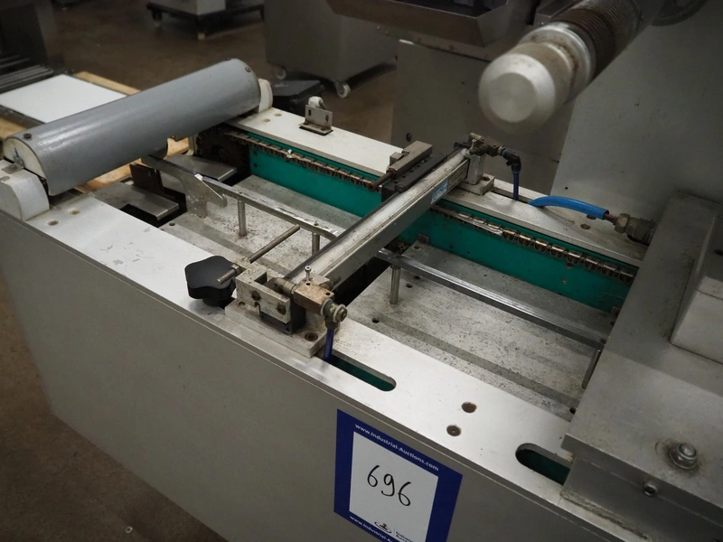 Colimatic thermoformer, type: THEMA 90, serial number: 991, year of construction: 1989, 380 V, 3 Ph, 50 Hz, film width: 320 mm, dye: (2x) 175 mm x 130 mm, total dimensions: 3300 mm x 780 mm x 1740 mm. Without main vacuum pump.