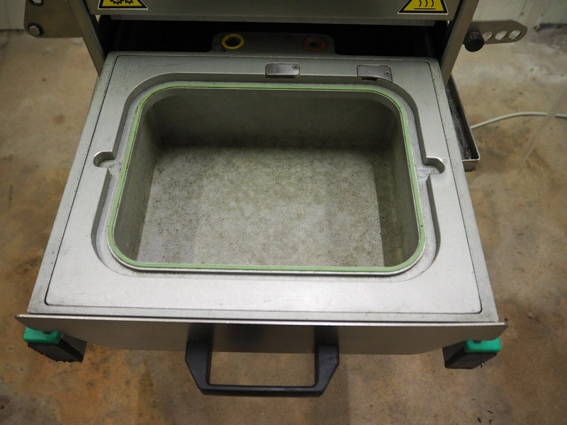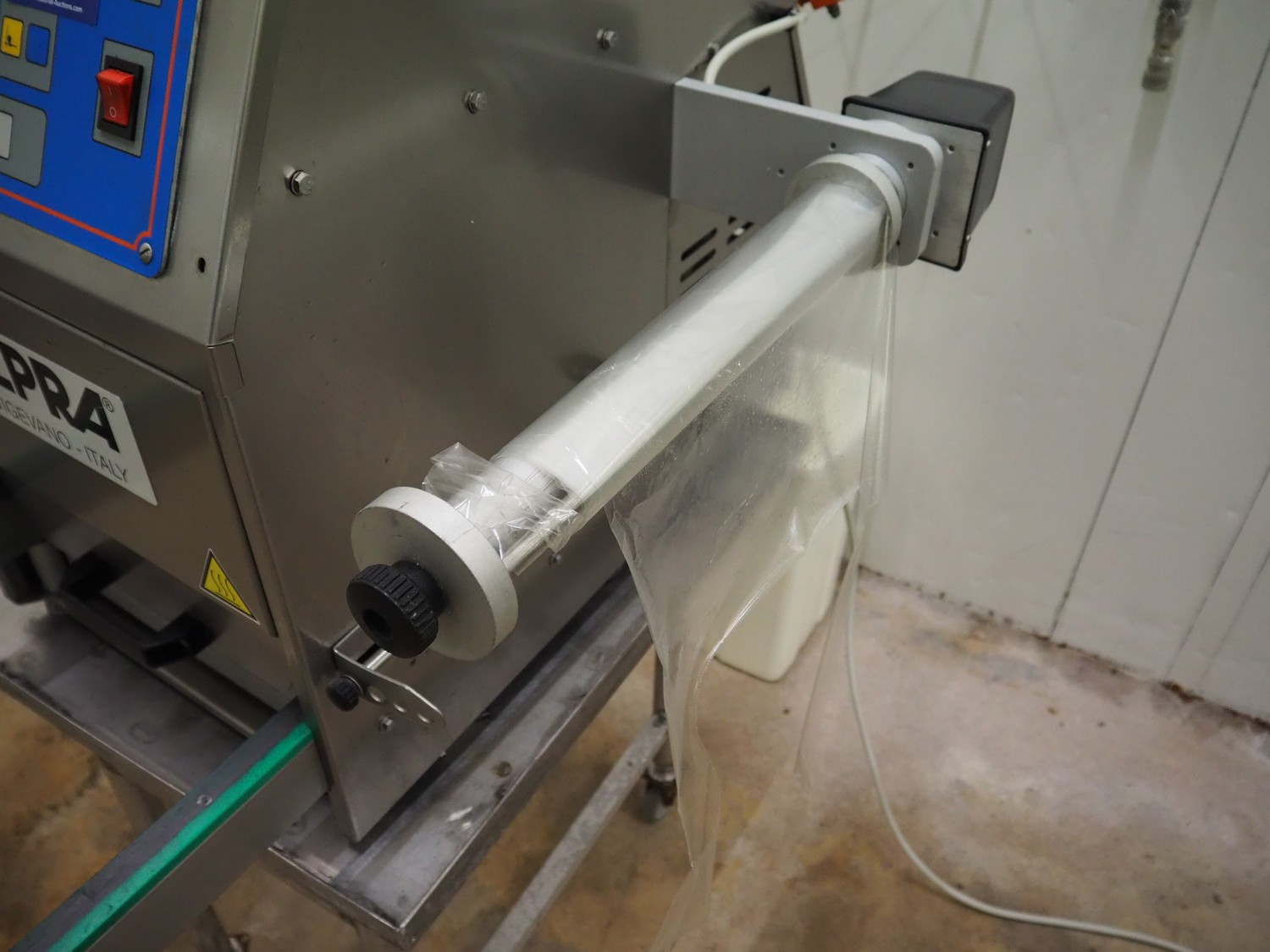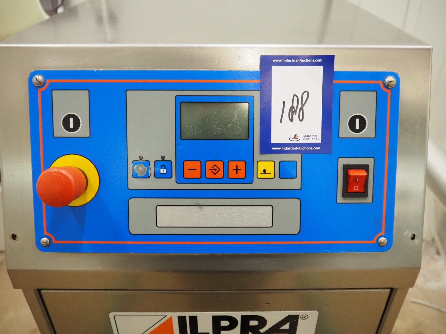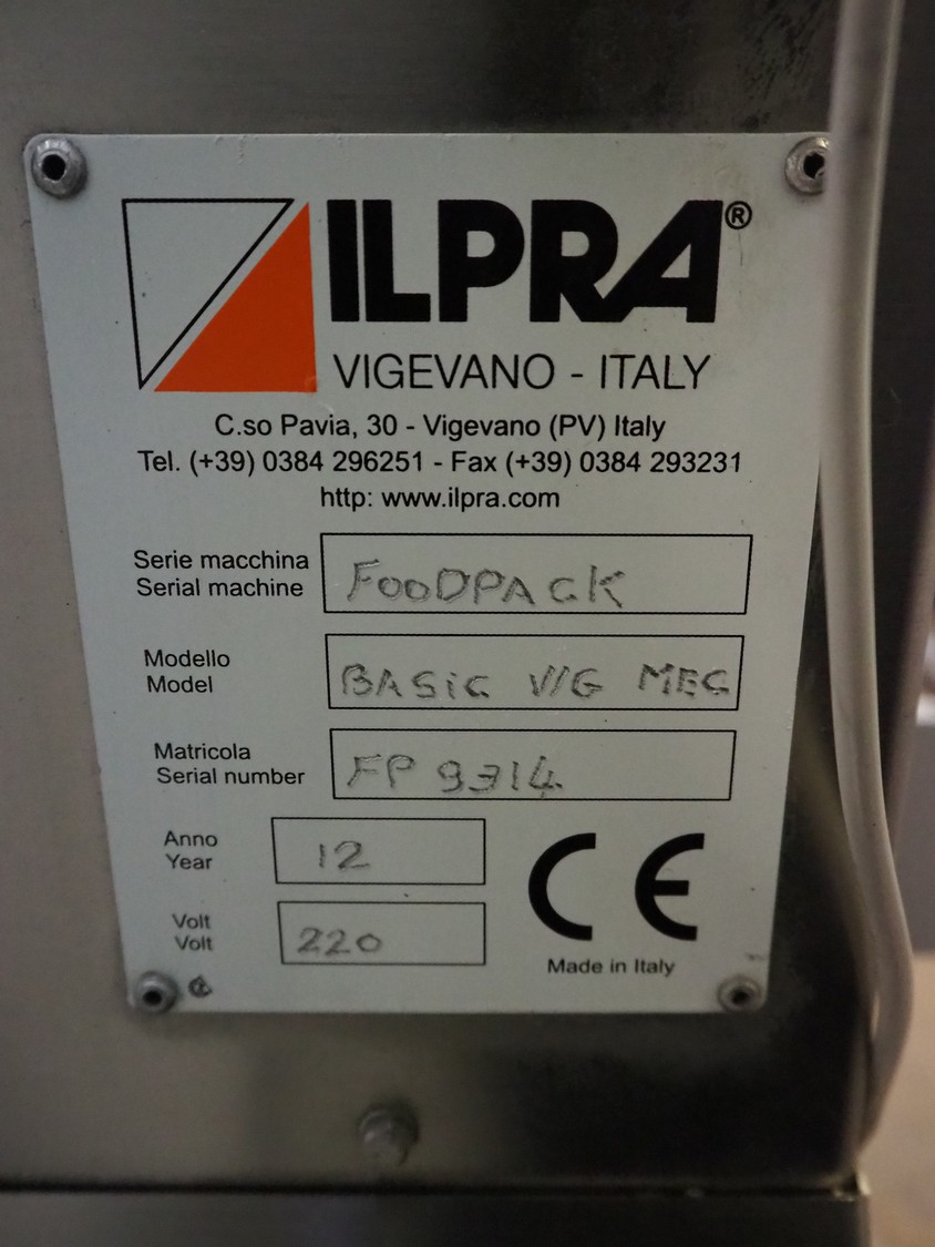 Ilpra traysealer, serie: FOODPACK, model: BASIC V/G MEC, serial number: FP9314, year of construction: 2012, 220 V, dimensions dye: 295 mm x 230 mm, total dimensions: 1030 mm x 920 mm x 680 mm. Including mobile s/s table, dimensions table: 680 mm x 600 mm x 740 mm.